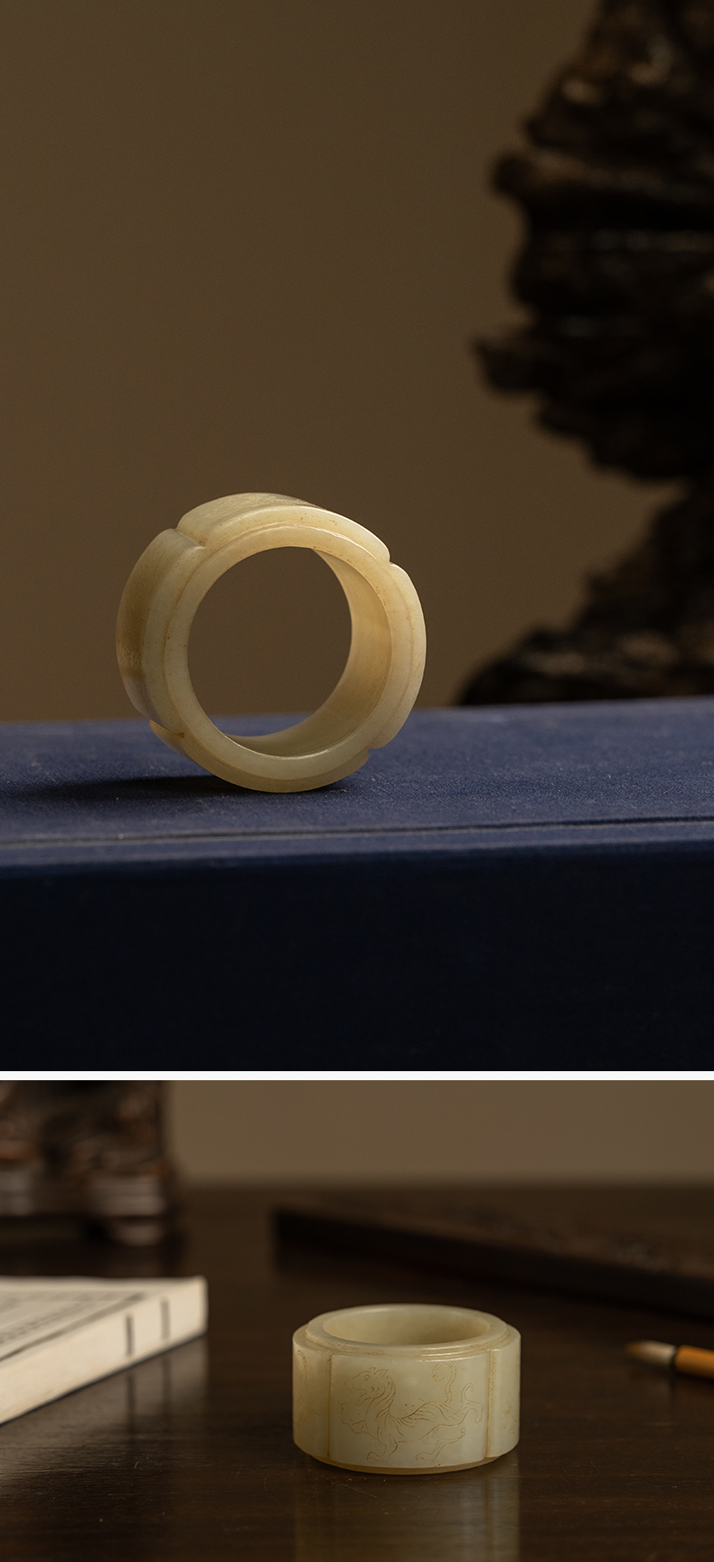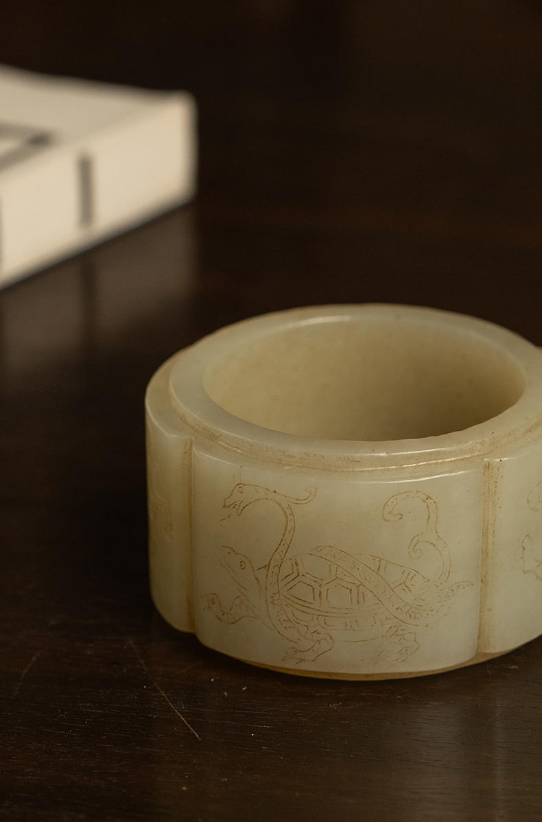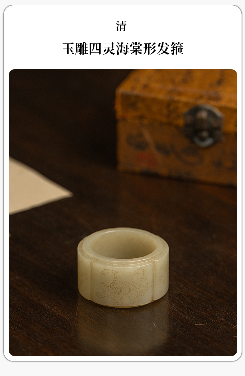 清 玉雕四灵海棠形发箍