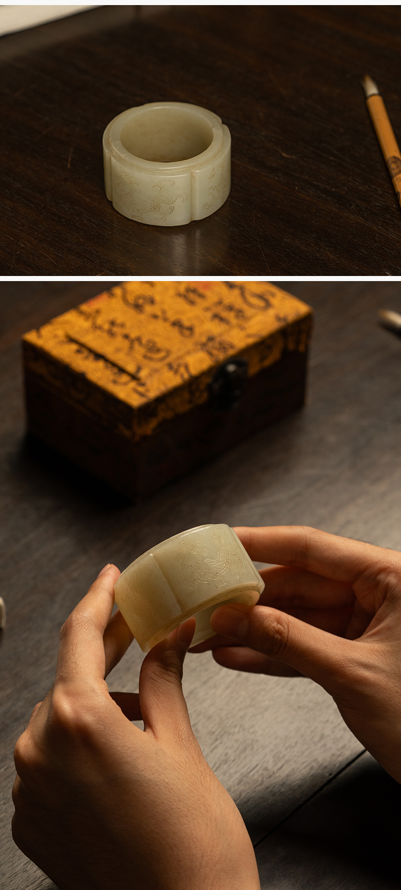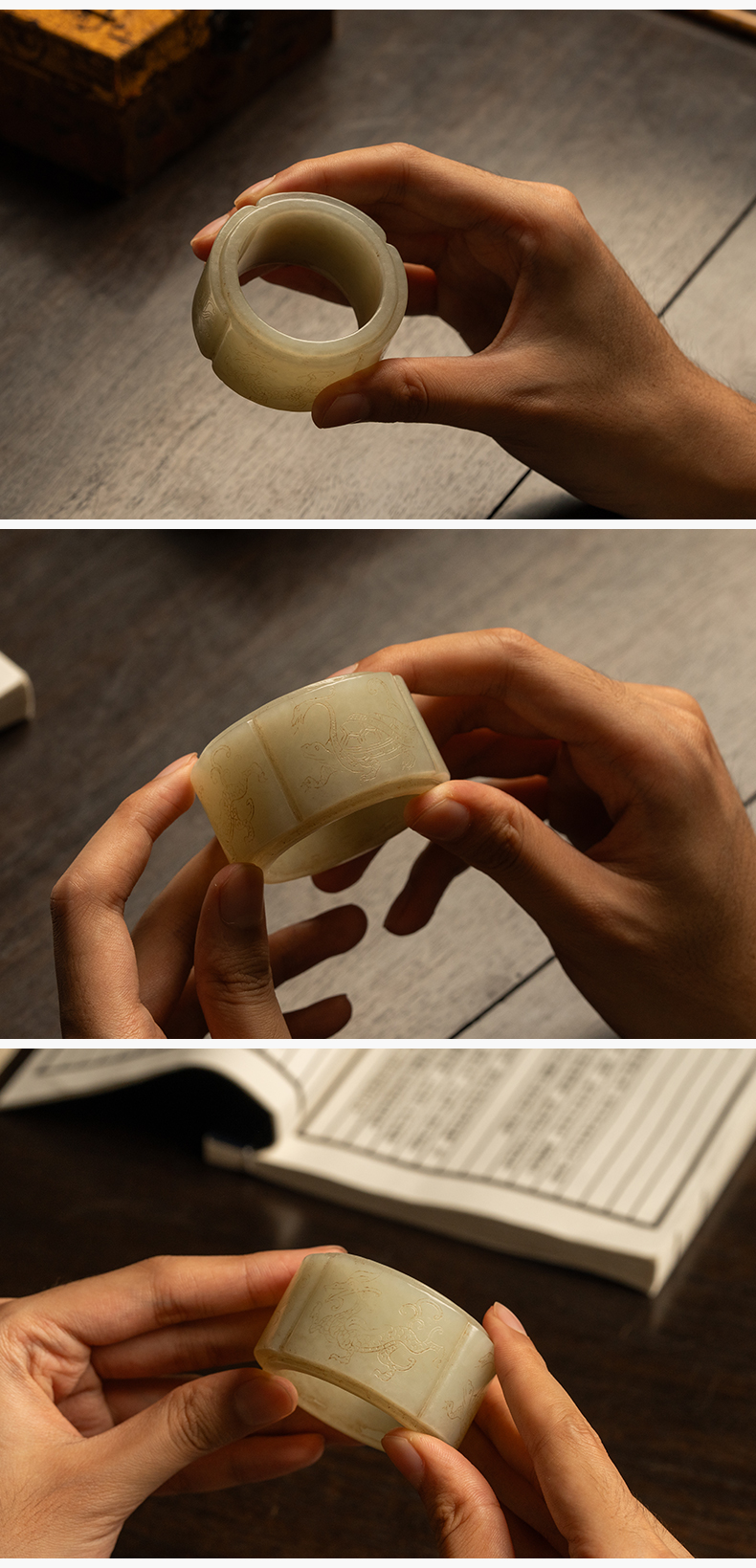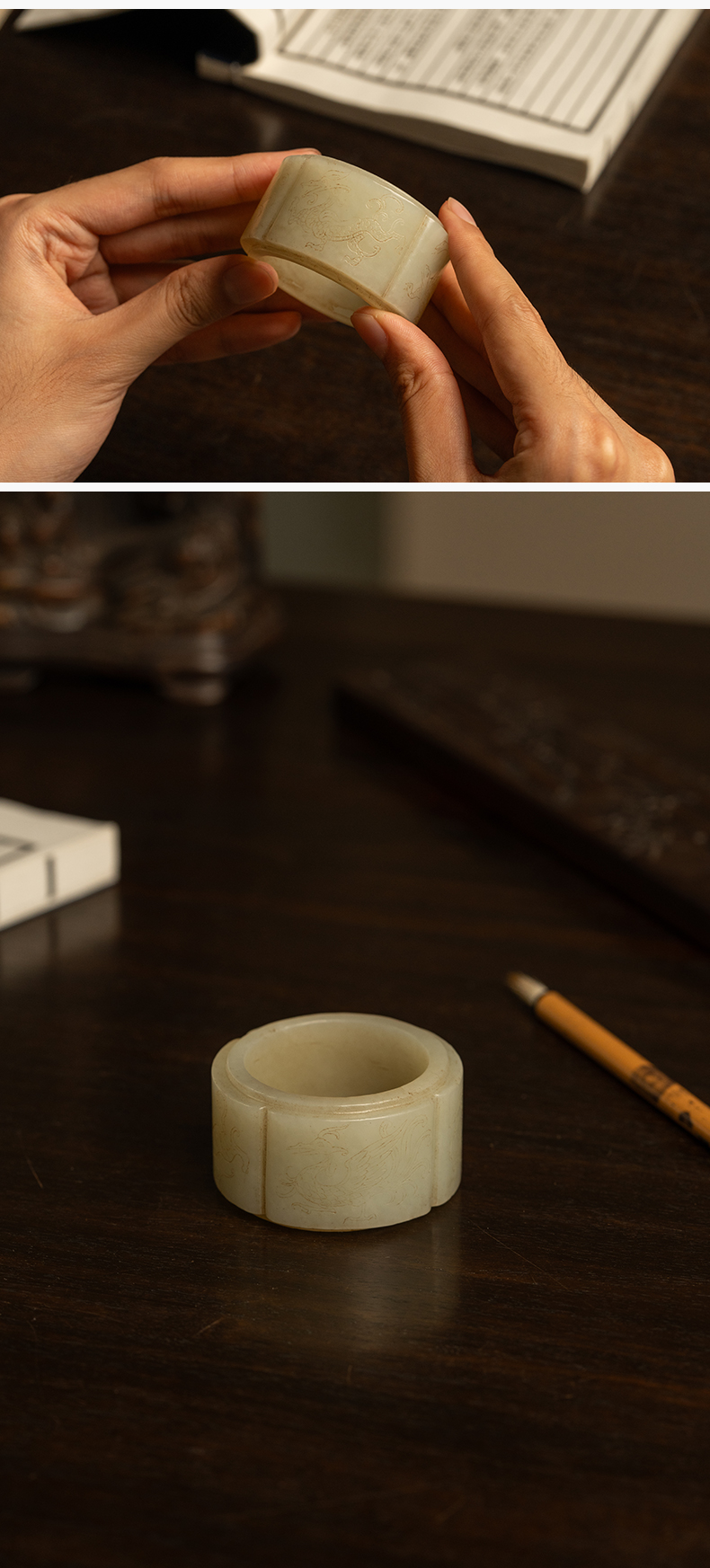 清 玉雕四灵海棠形发箍