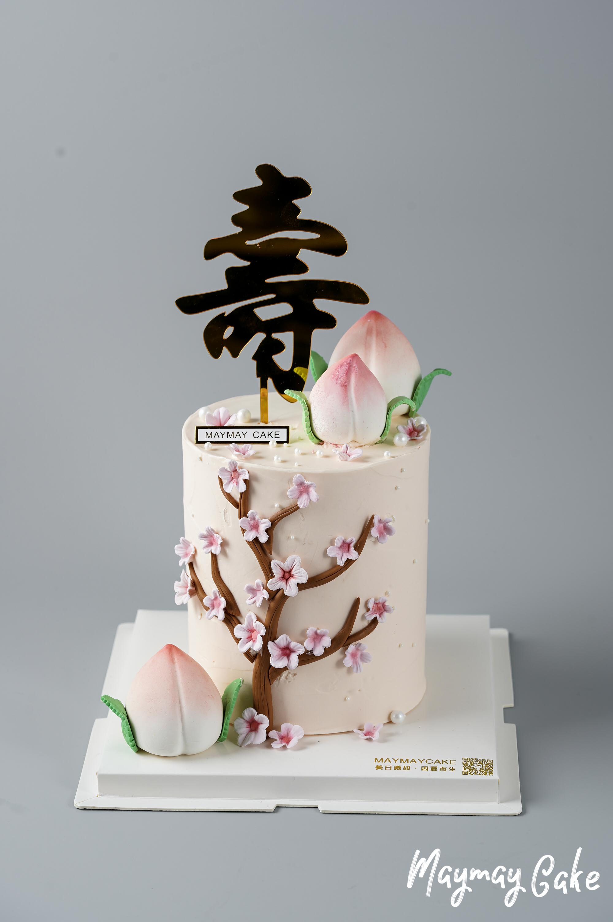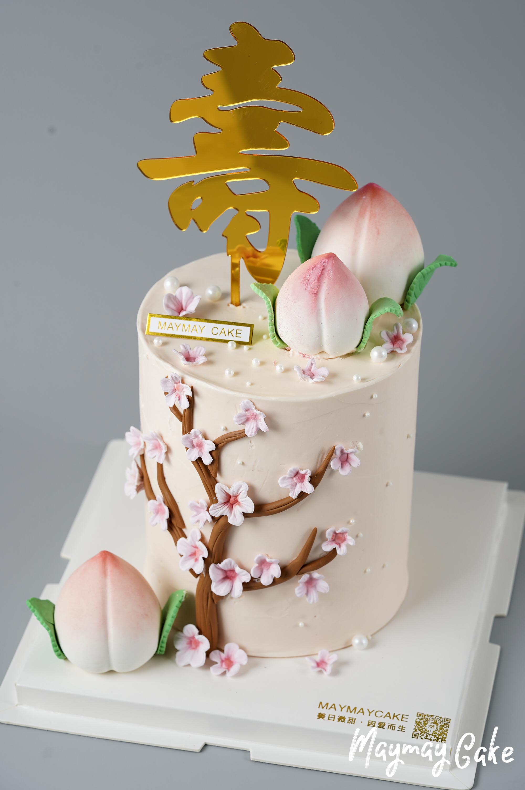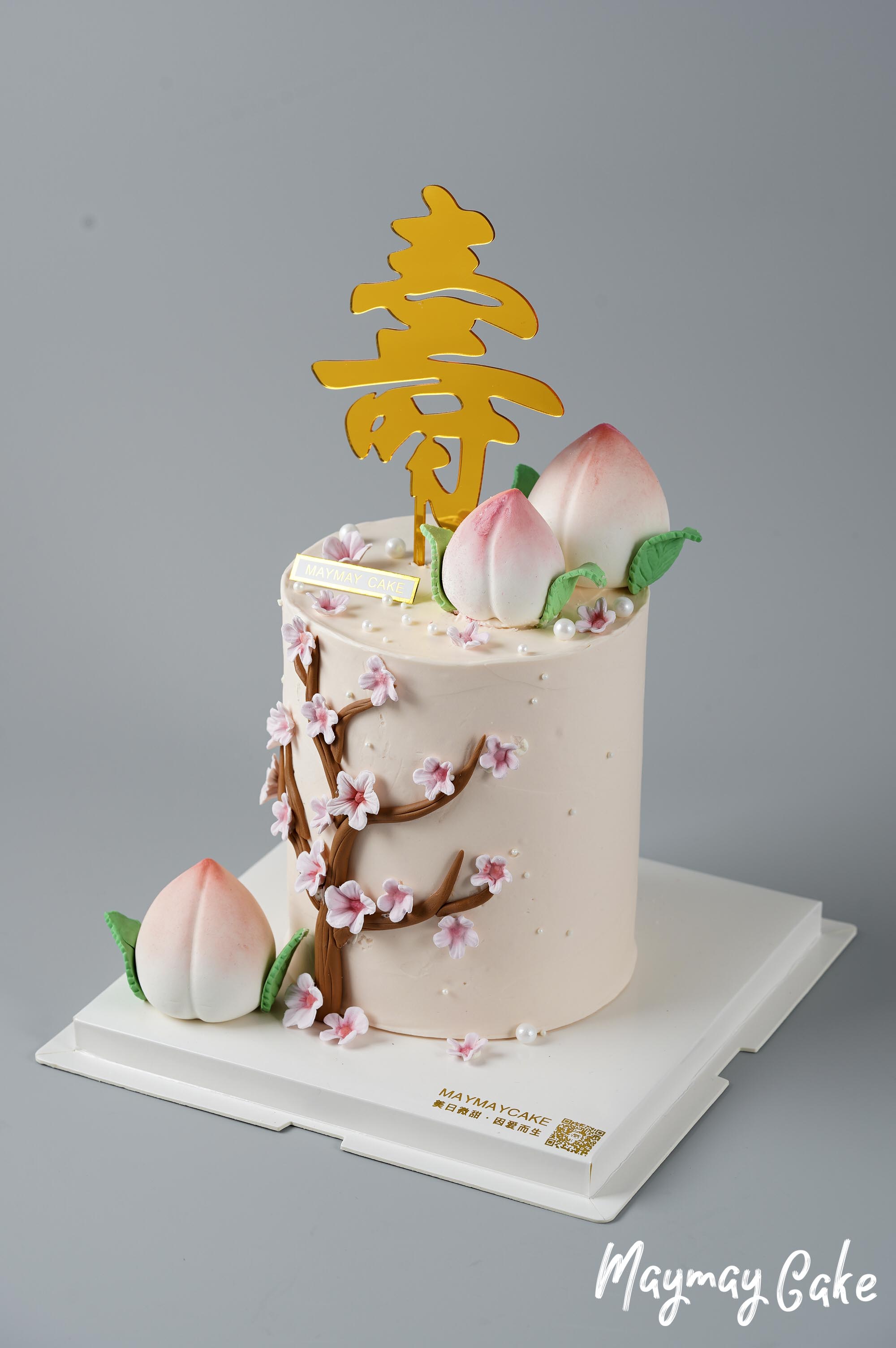 【3960】翻糖粉色桃花·祝寿寿桃蛋糕