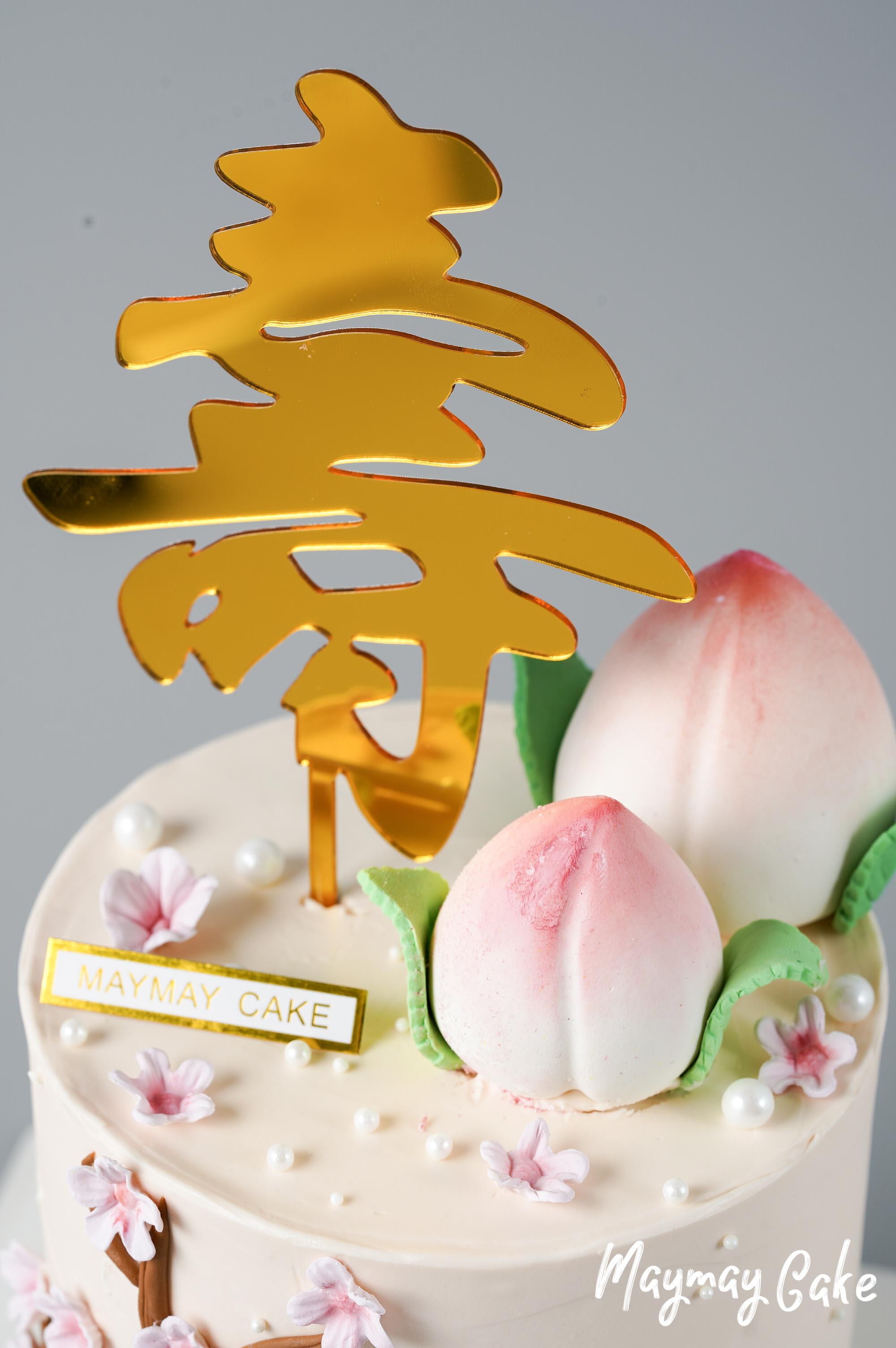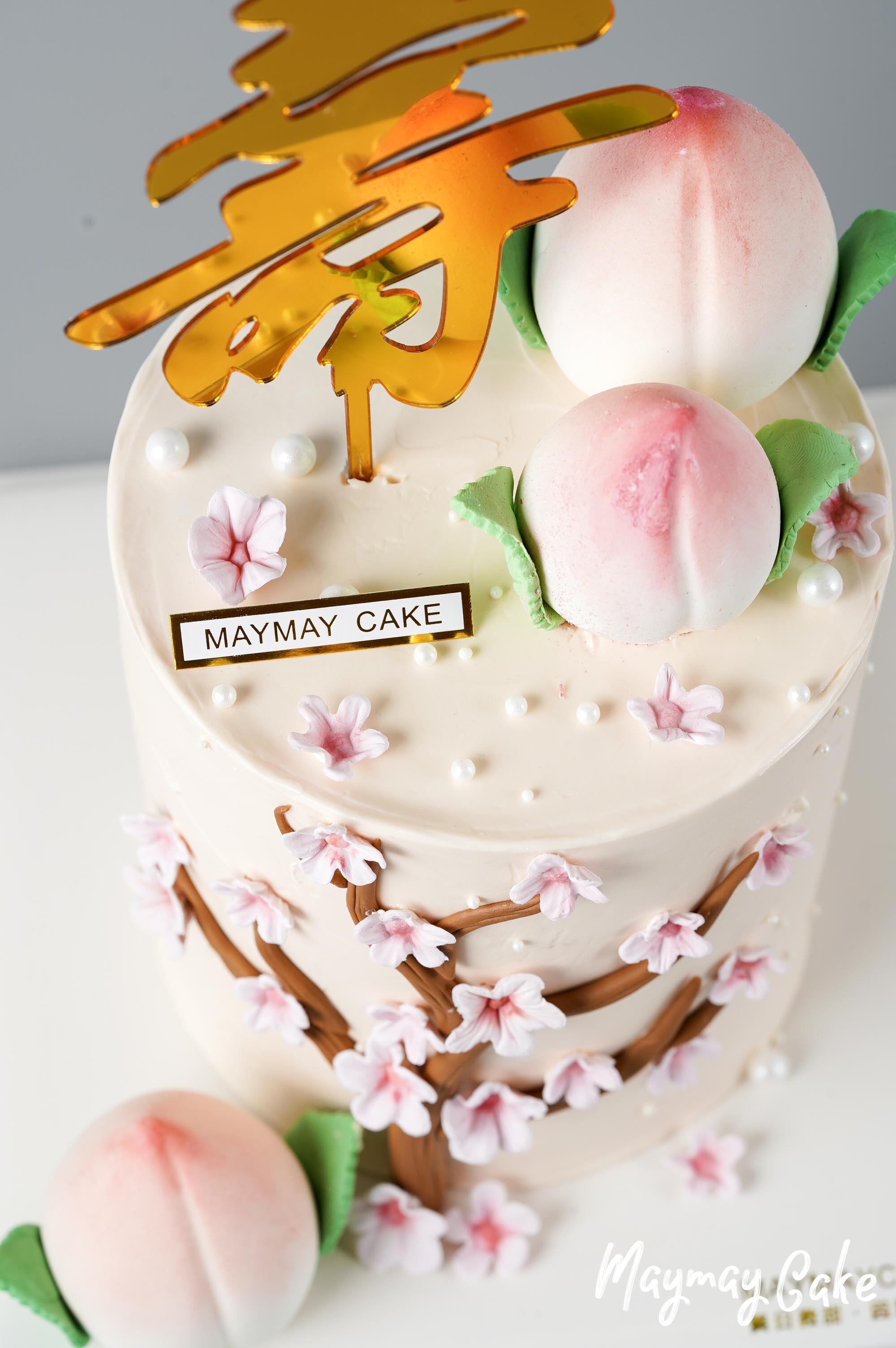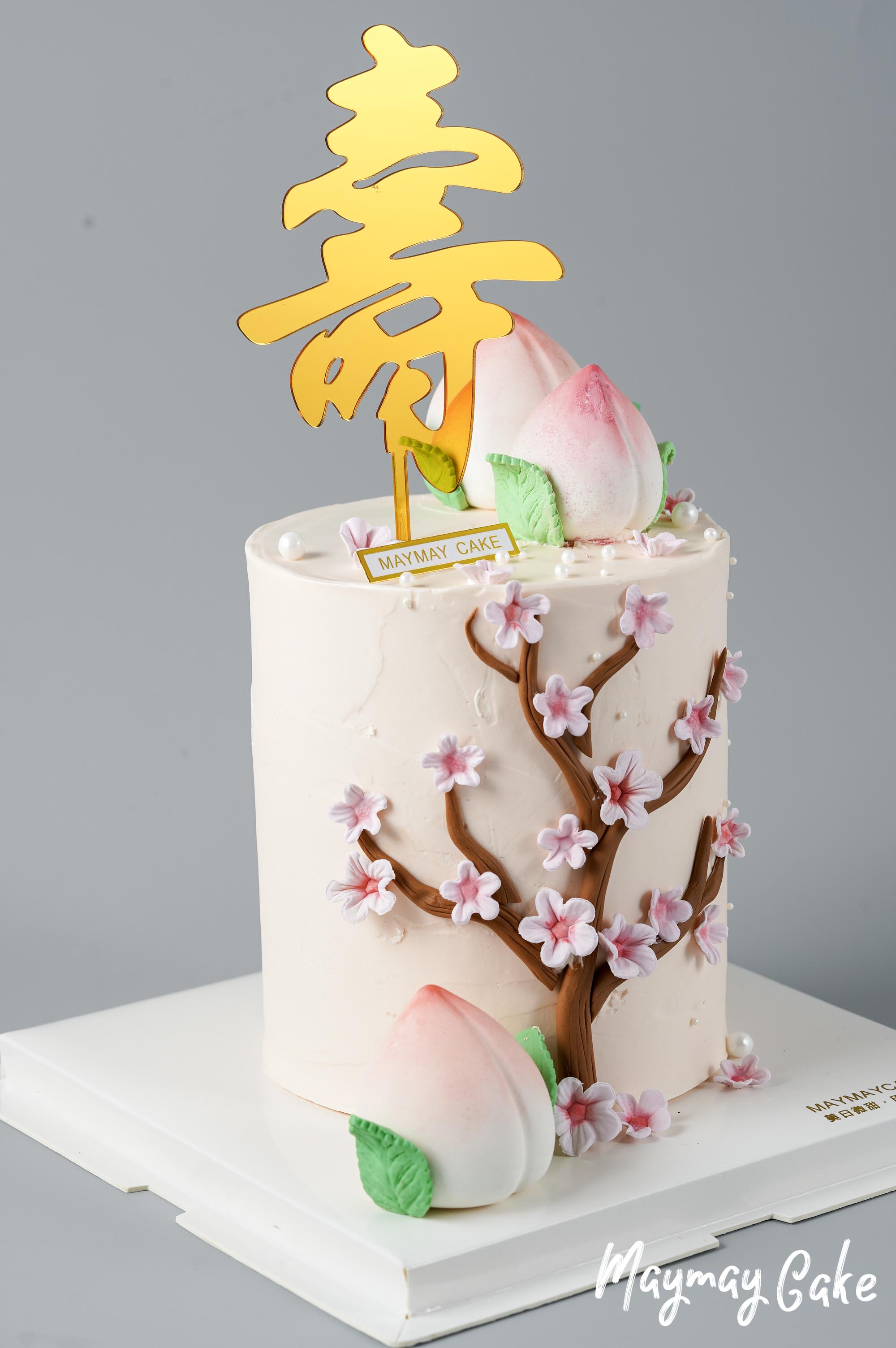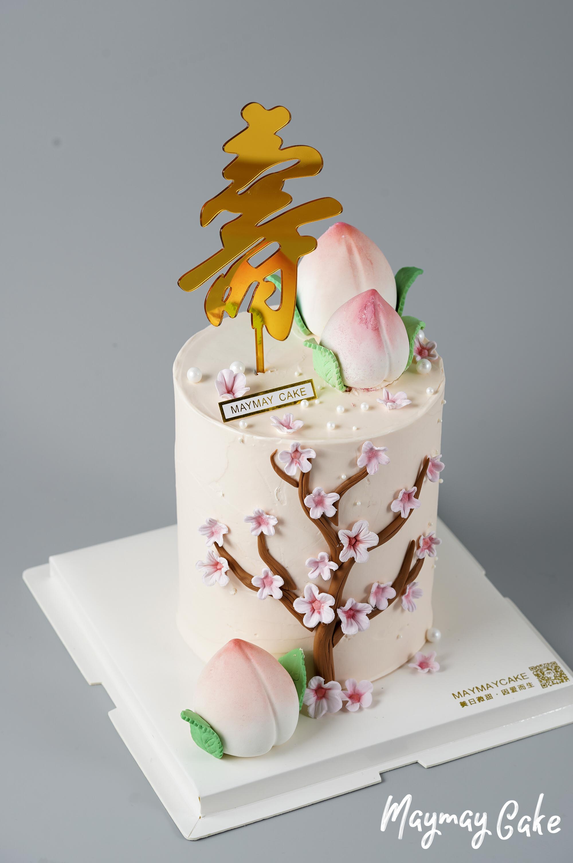 【3960】翻糖粉色桃花·祝寿寿桃蛋糕