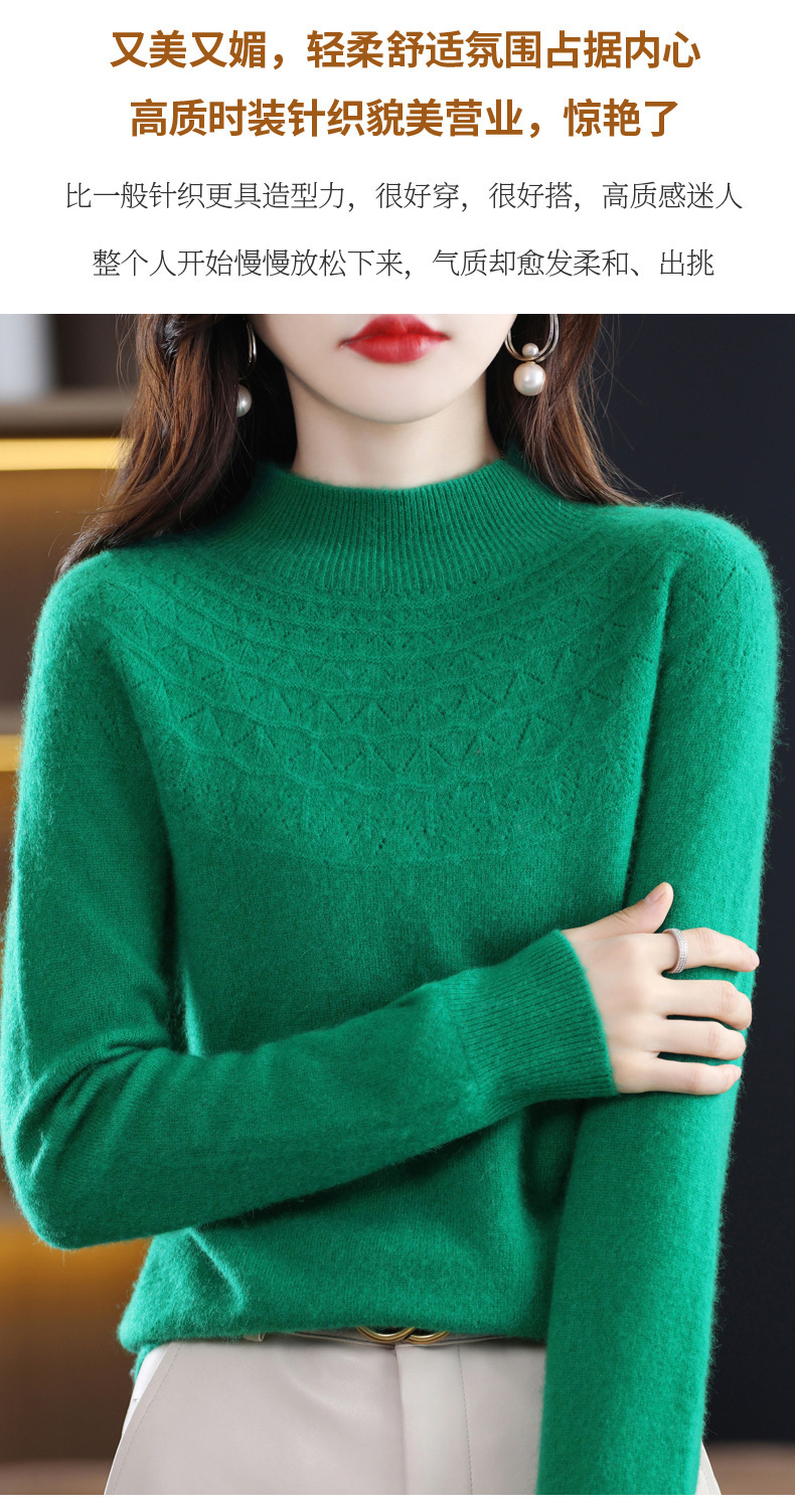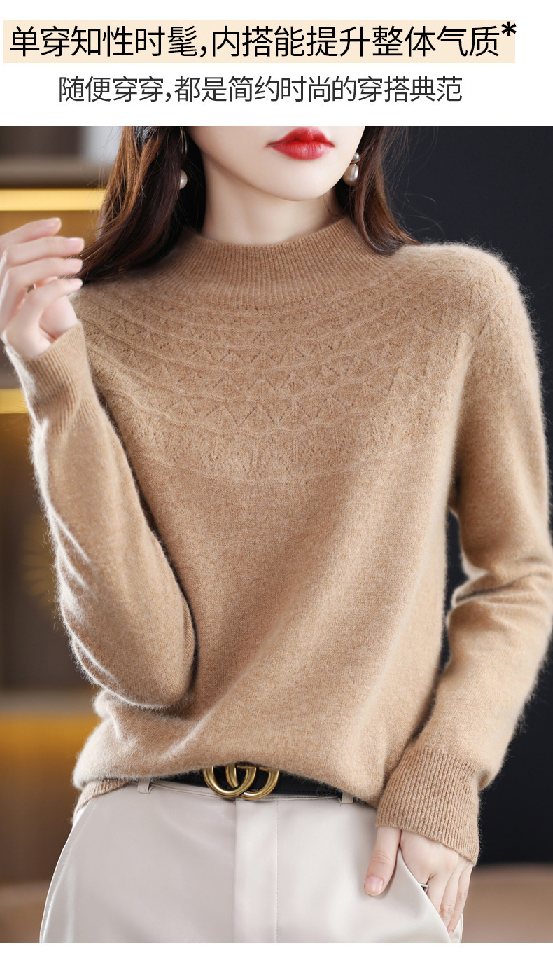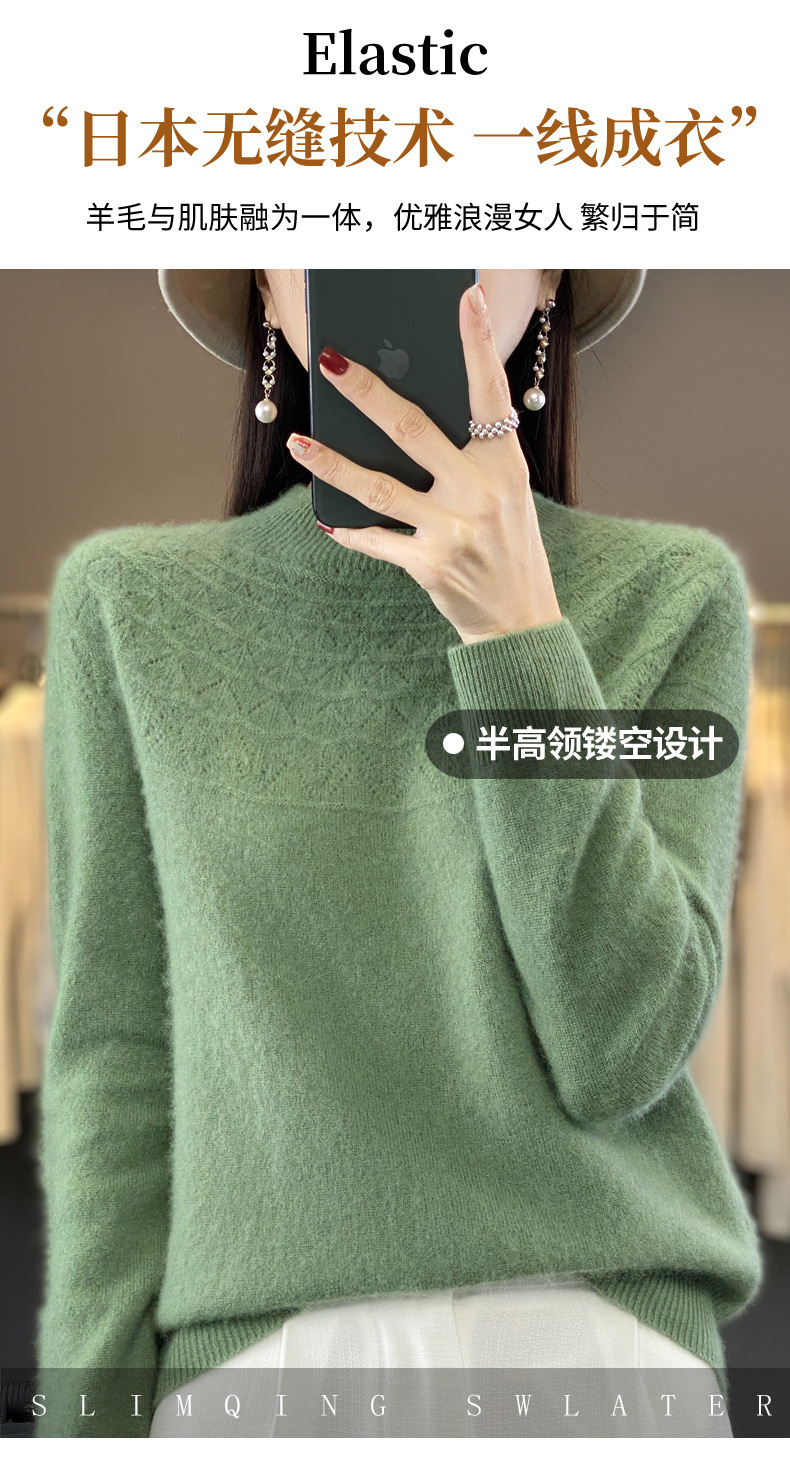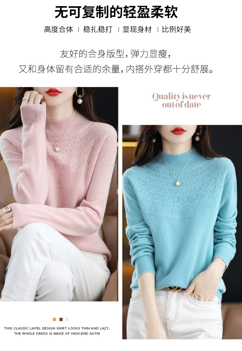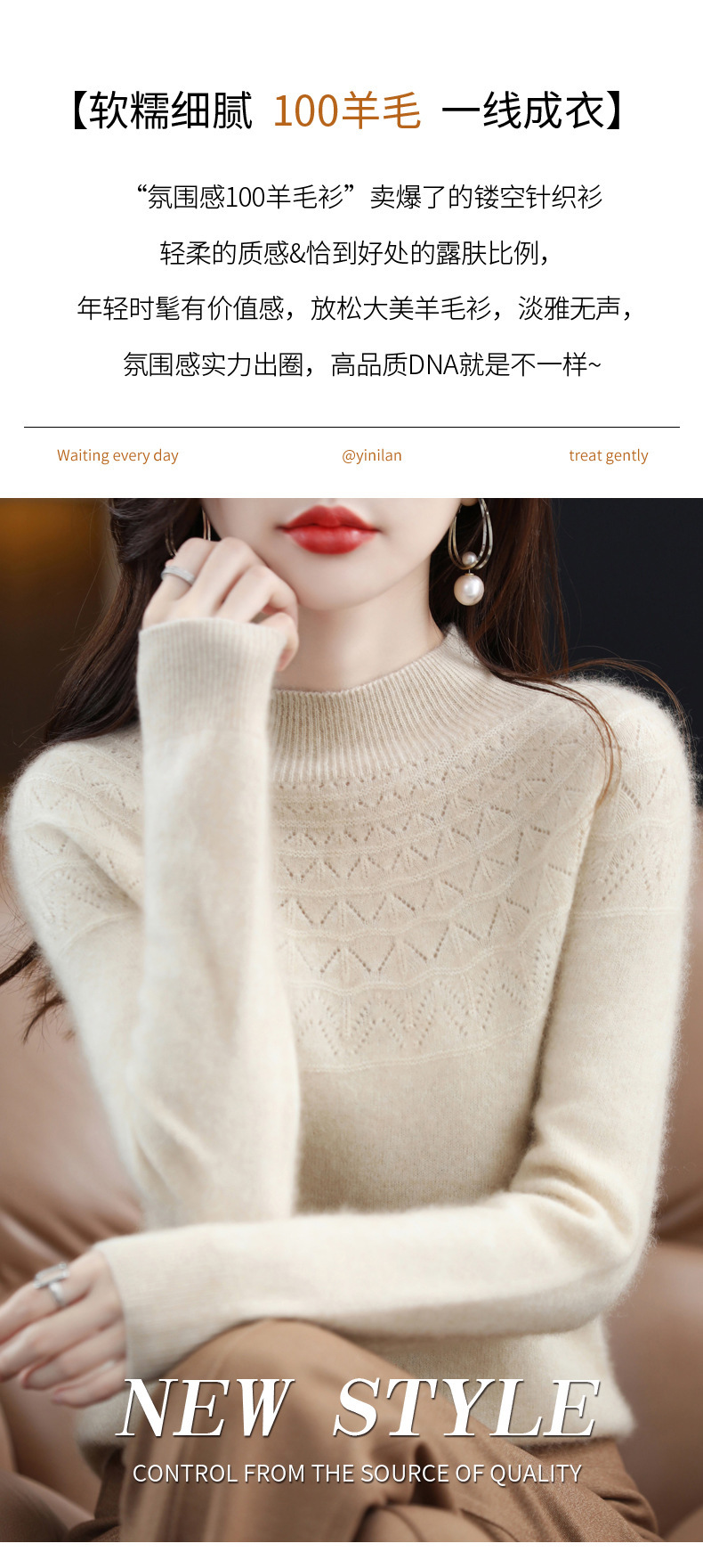 QH-D003一线成衣半高领镂空羊毛衫女秋冬宽松显瘦长袖打底羊毛毛衣