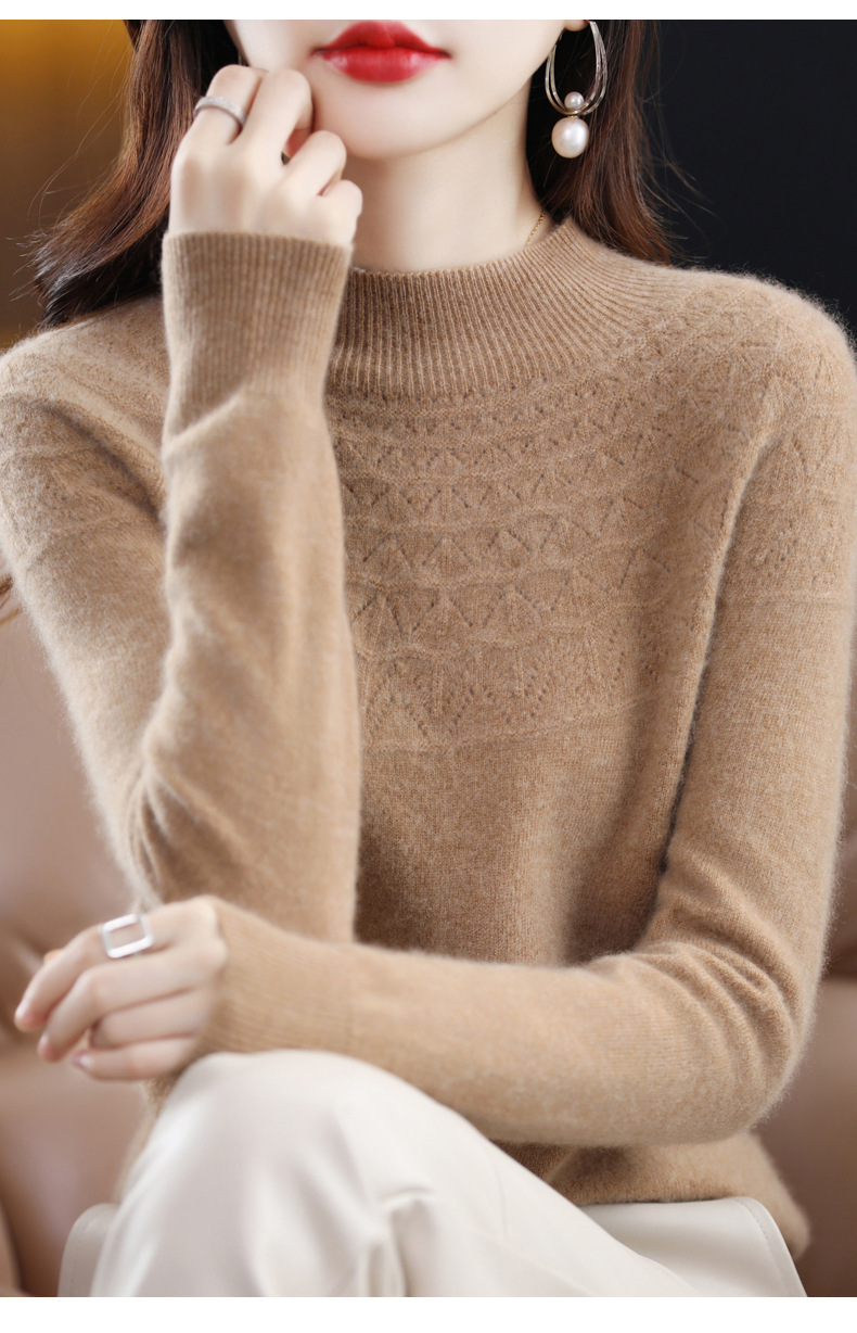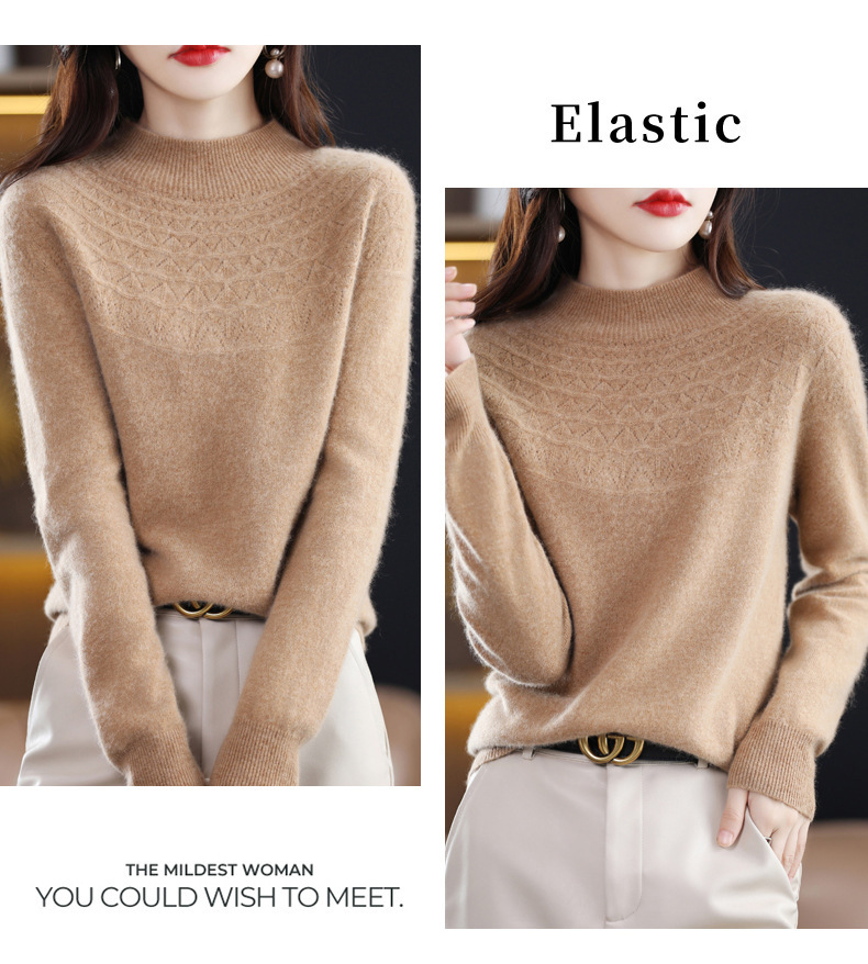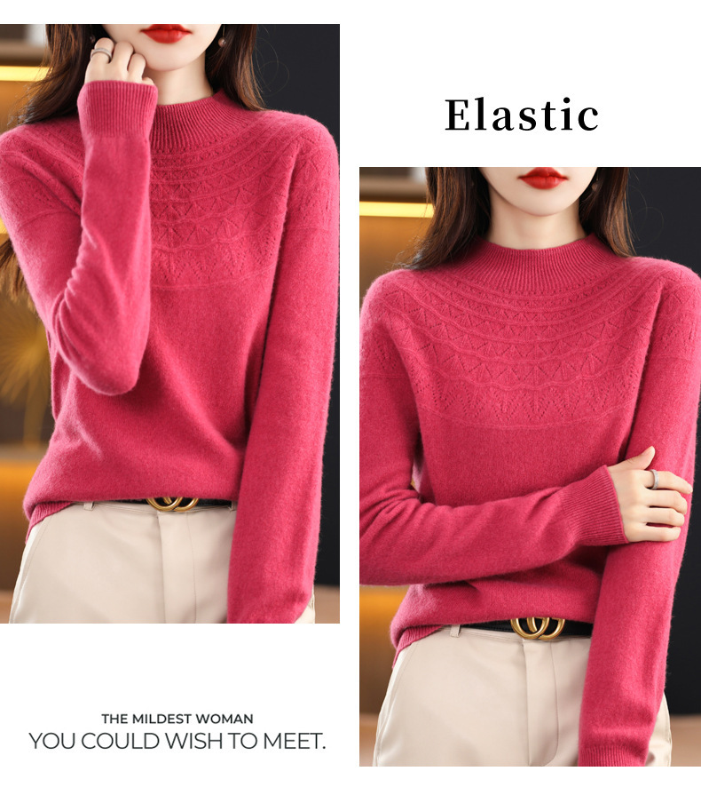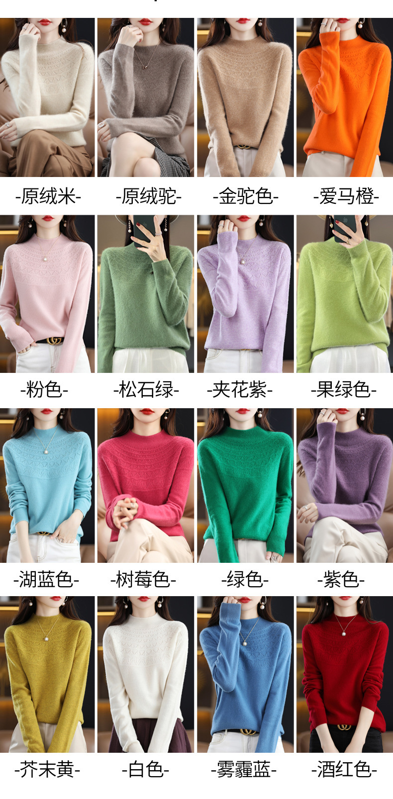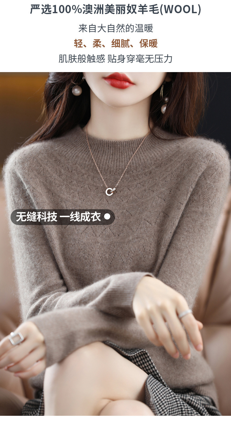 QH-D003一线成衣半高领镂空羊毛衫女秋冬宽松显瘦长袖打底羊毛毛衣