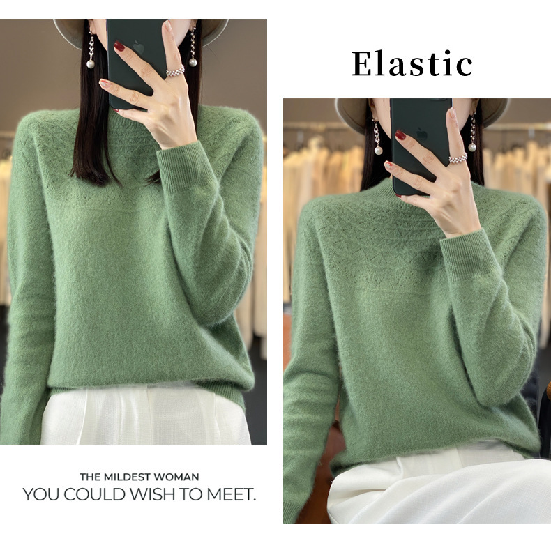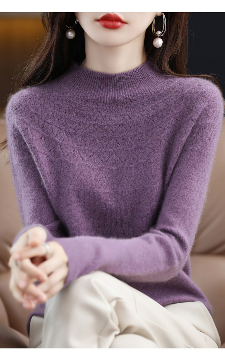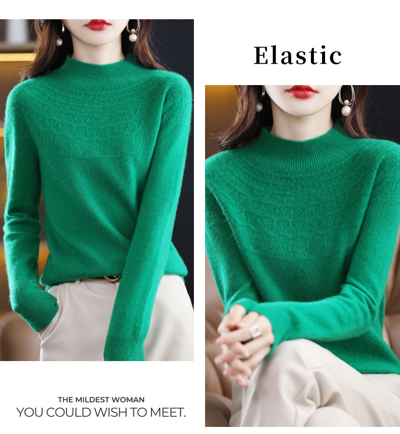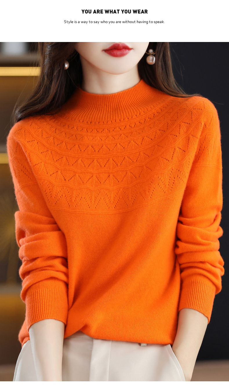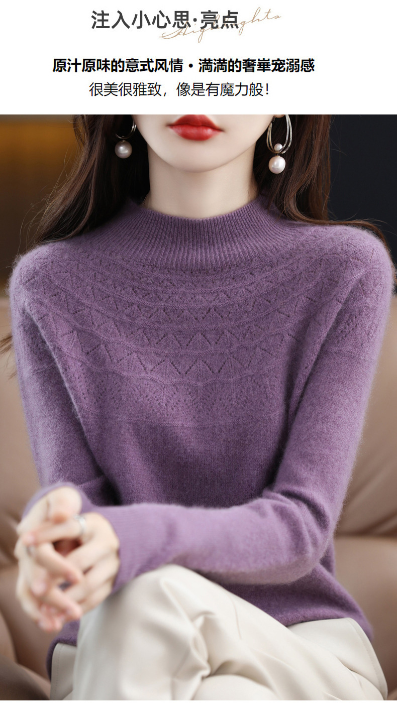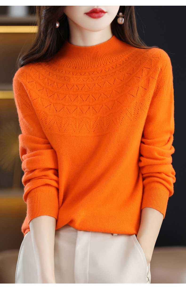 QH-D003一线成衣半高领镂空羊毛衫女秋冬宽松显瘦长袖打底羊毛毛衣