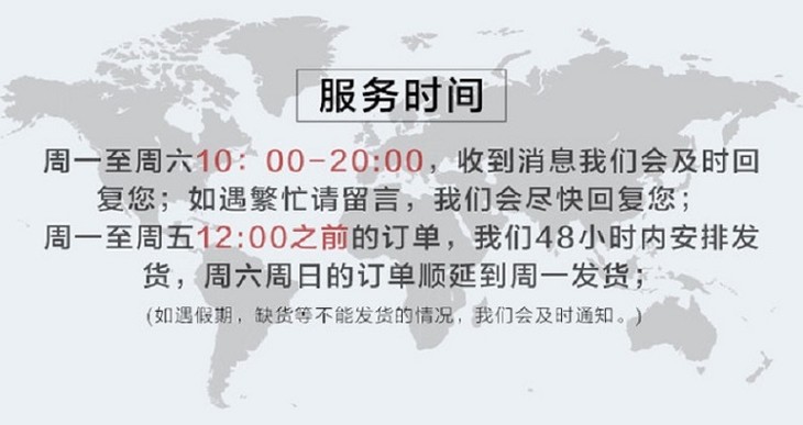 3 关于退换:为了保障亲的权益,如果您不喜欢这个东东,请不要试用TA或者损坏原包装哦;一旦试用过或者影响二次销售,将不支持退换货。感谢亲的理解啦~