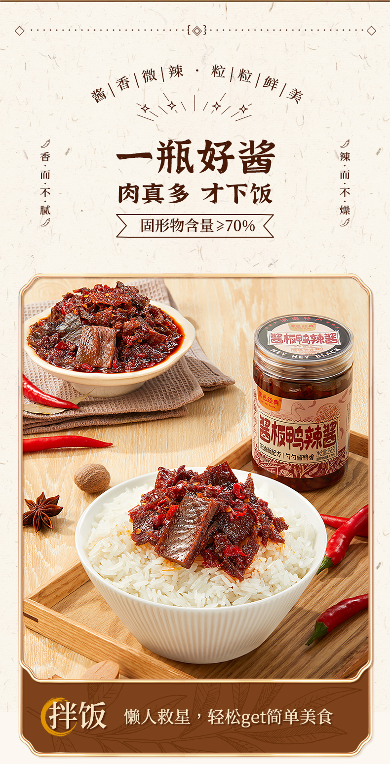 【57.6元任选3件】黑色经典酱板鸭辣酱258g/瓶 茶油新配方 勺勺酱鸭香