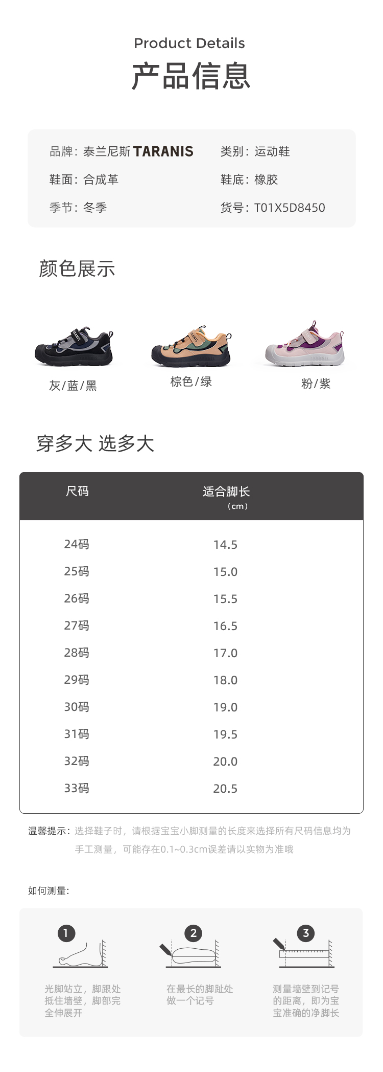 【新品】泰兰尼斯小童段冬款加绒全包头防踢运动鞋T01X5D8450