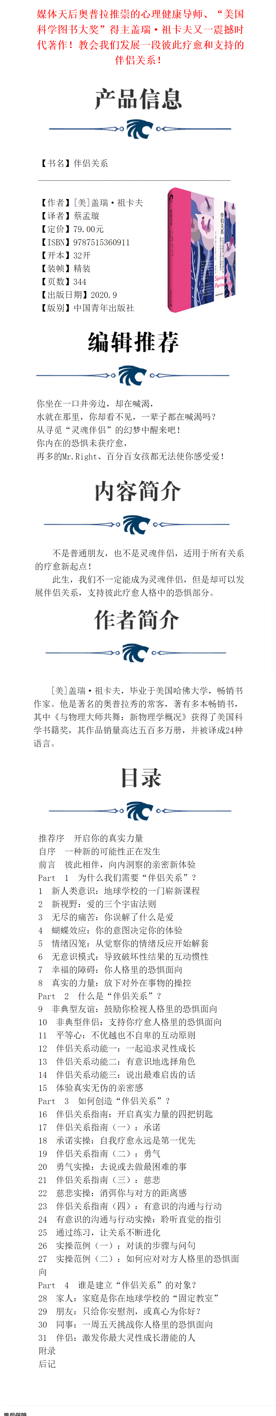 伴侣关系[美] 盖瑞·祖卡夫 蔡孟璇译 中国青年出版社