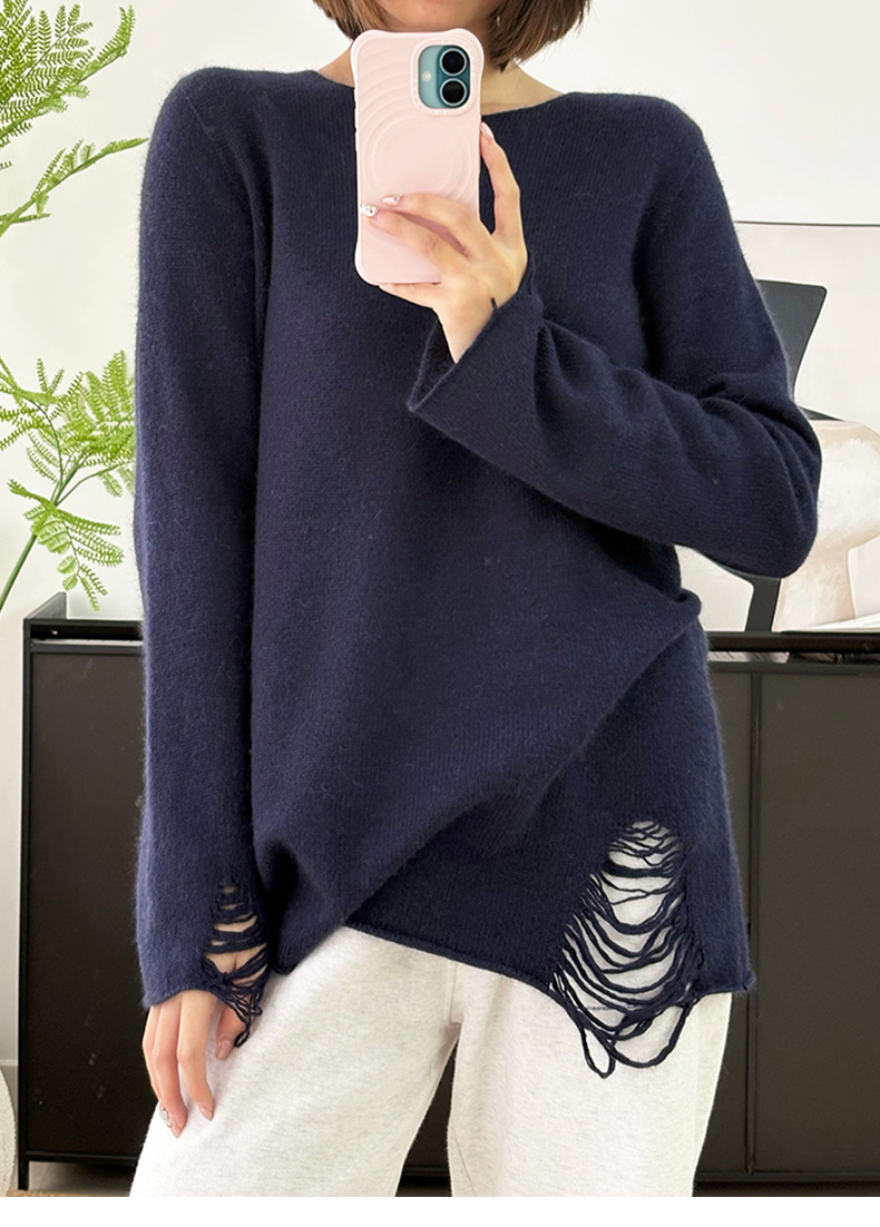 会员福利【兔毛/绵羊毛+镂空钩边】拉夏贝尔/La Chapelle舒适亲肤不扎~高品质羊毛衫!时髦圆领毛衣
