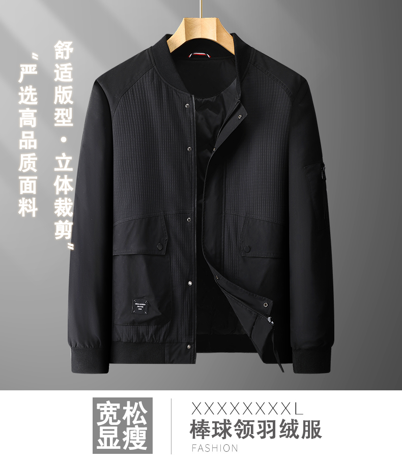 【特大码】【新款DPX】大依优型大码潮款棒球服领工装羽绒服鸭绒外套休闲胖子大码男休闲宽松加肥加大上衣