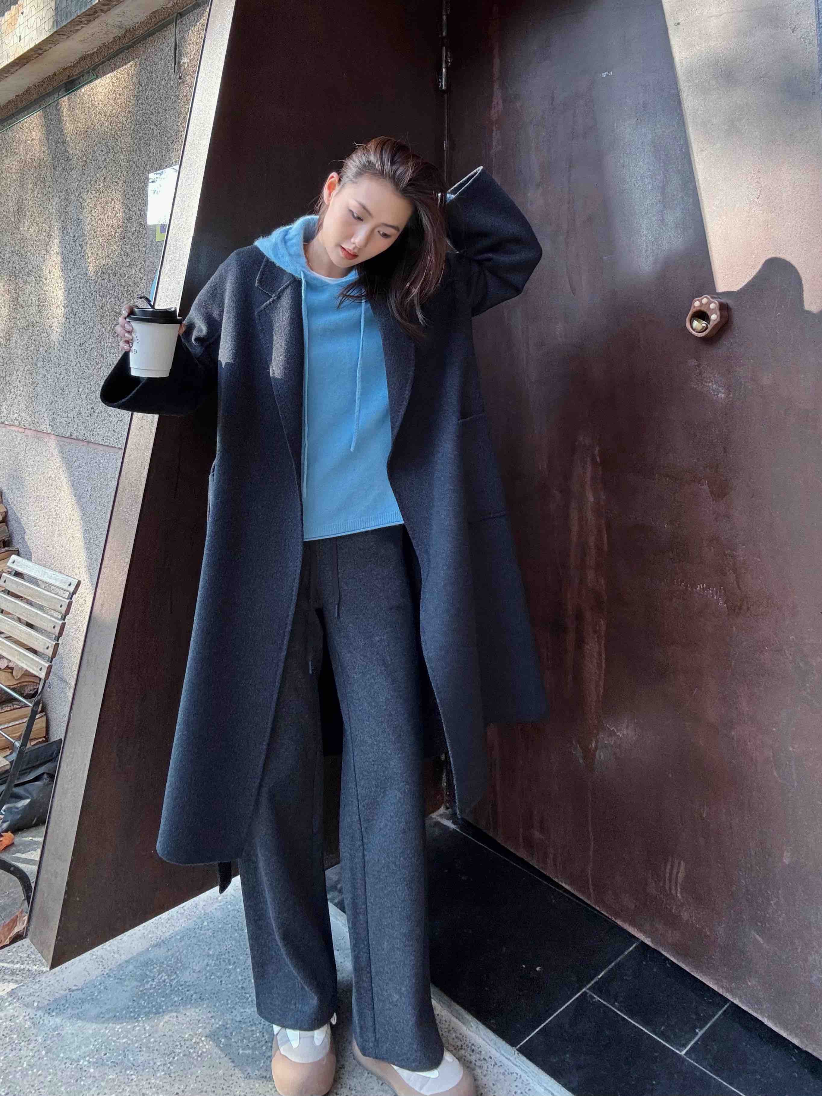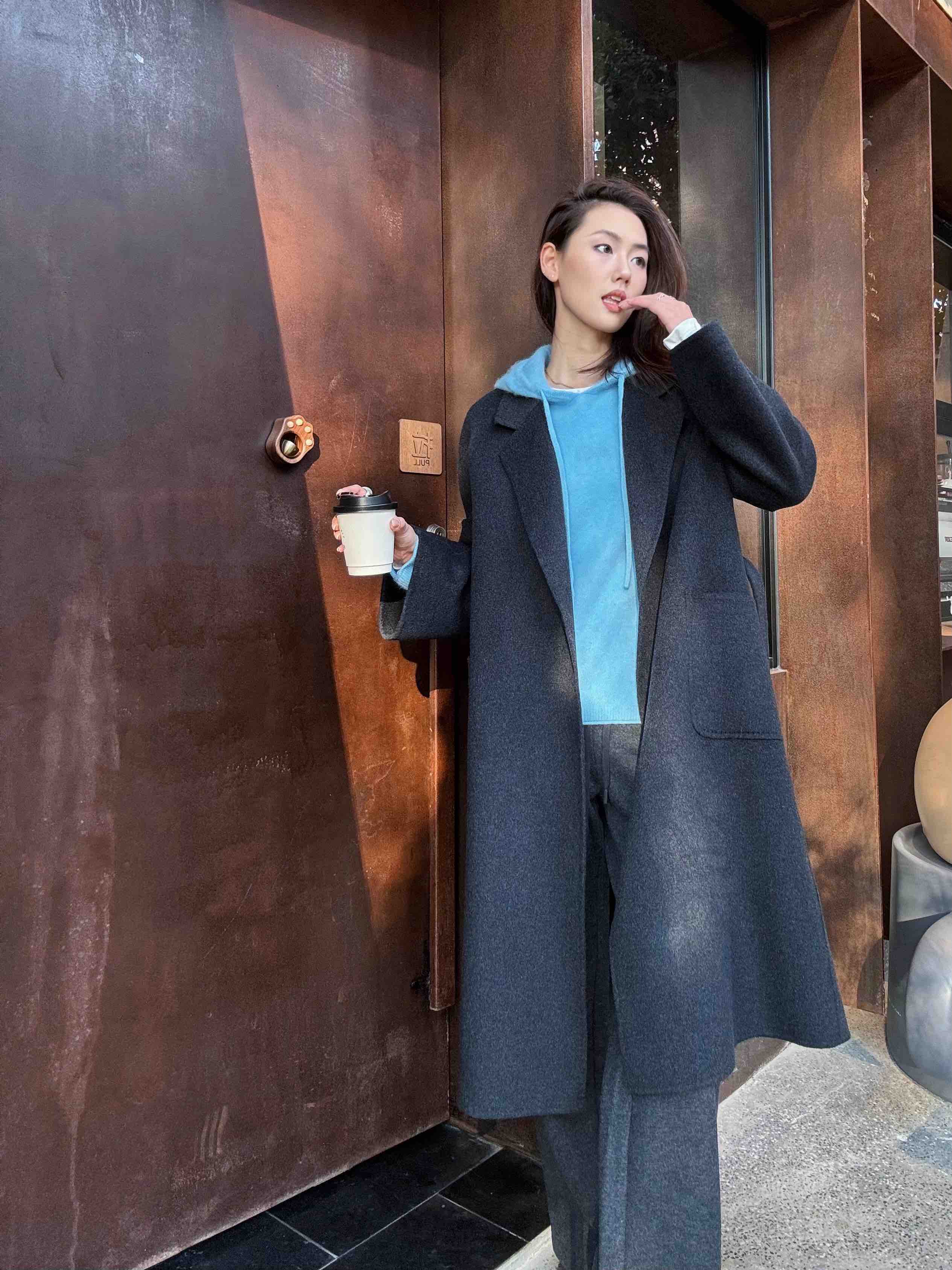 谁懂啊!这种微清灰的色调真的太高级了!10%羊绒的混纺面料简直是神平衡!既有羊绒的软糯感,又保持了版型的挺括度,关键性价比绝了!