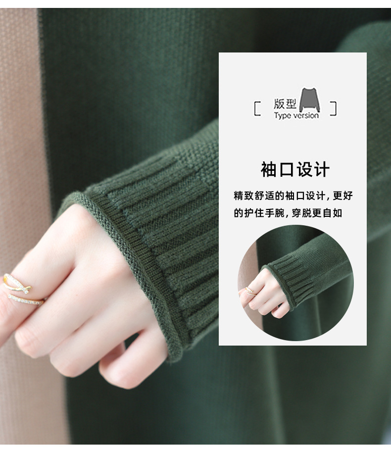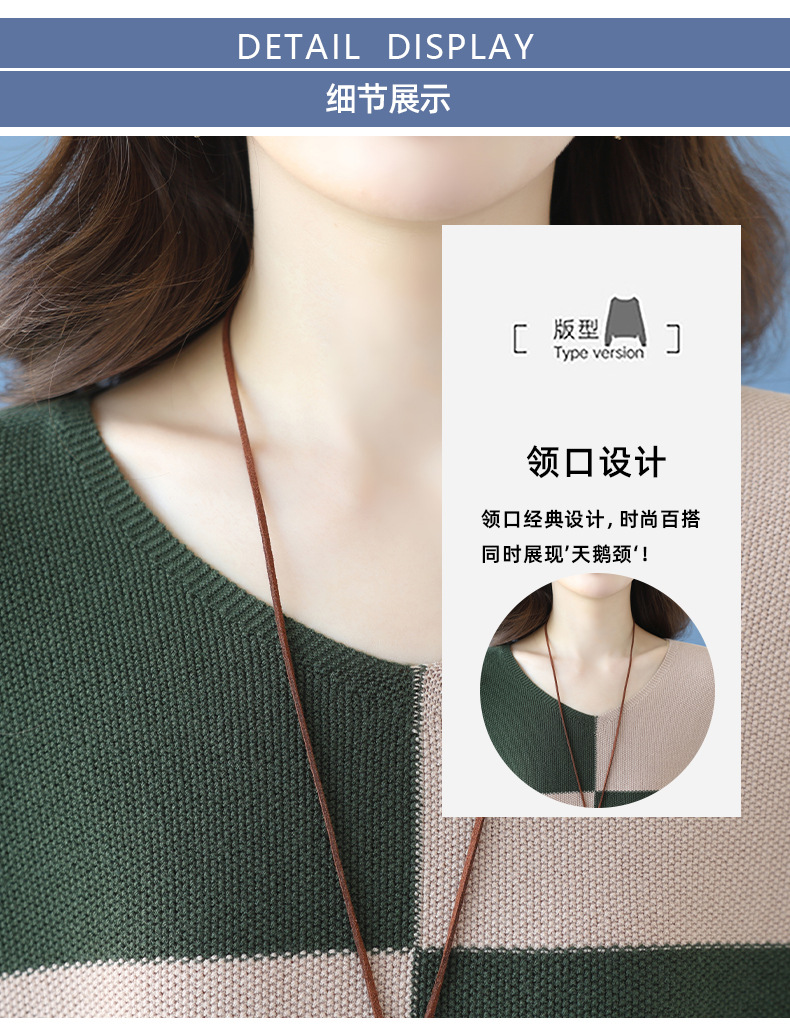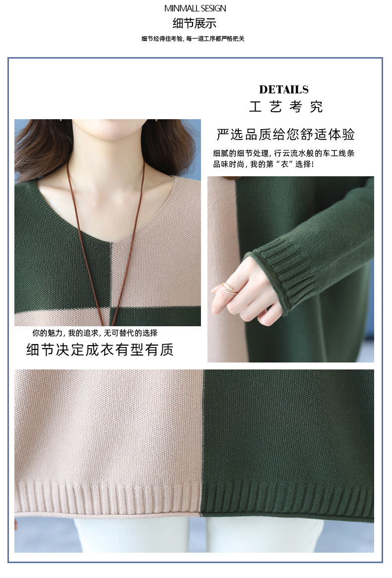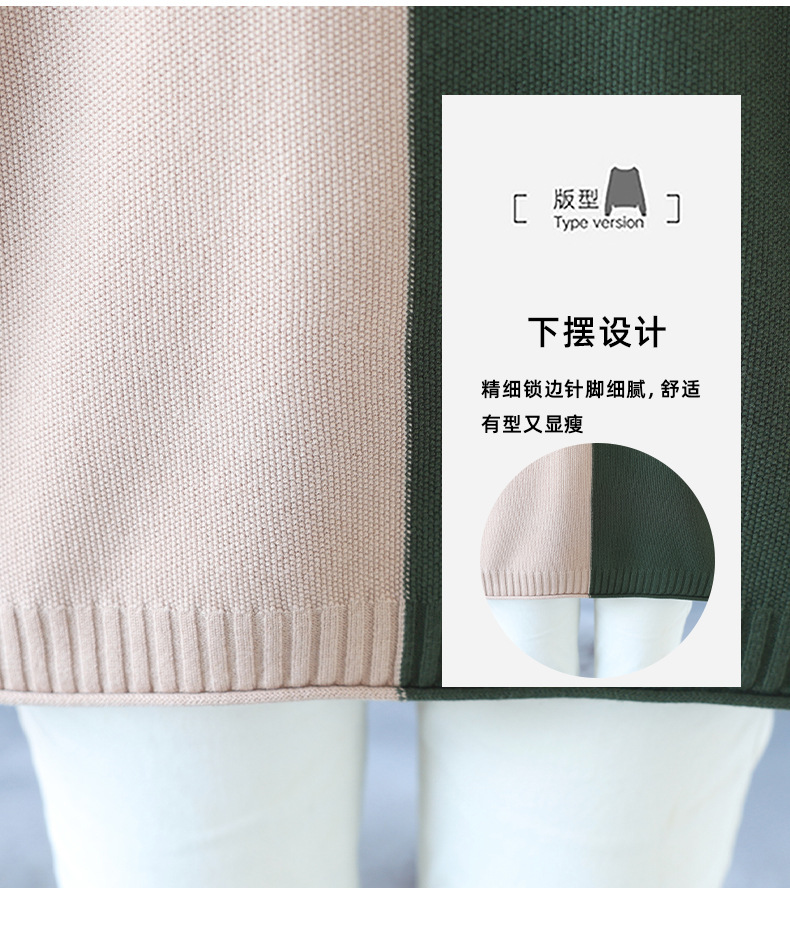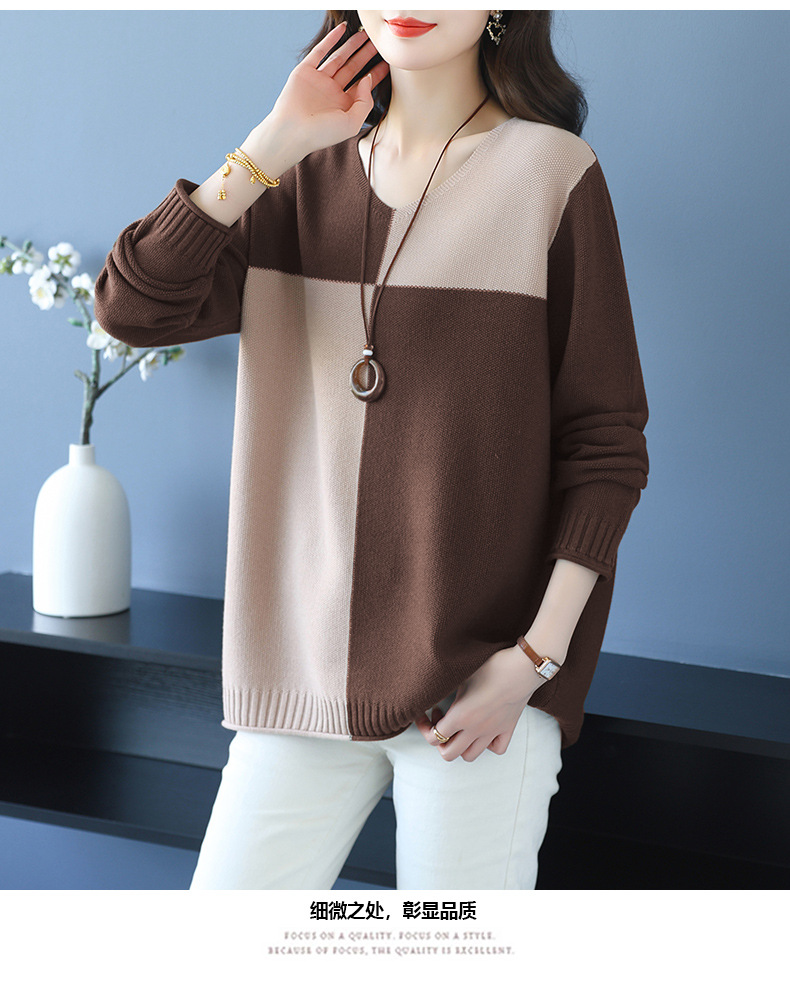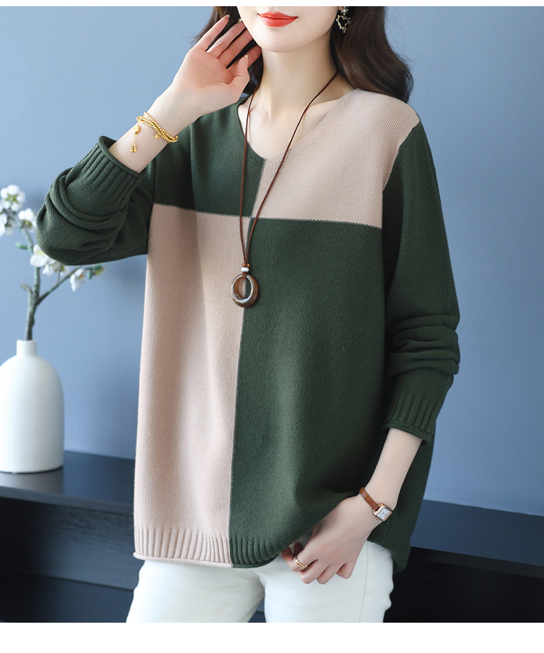 CC 37-3130拼色V领长袖针织衫气质宽松大码