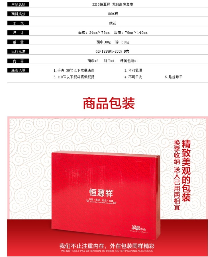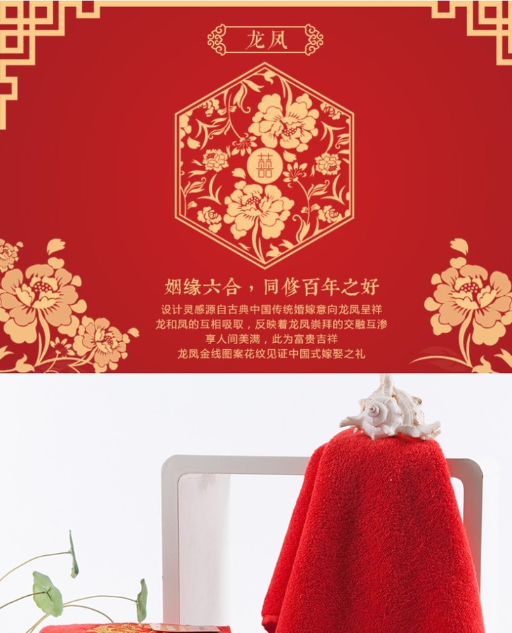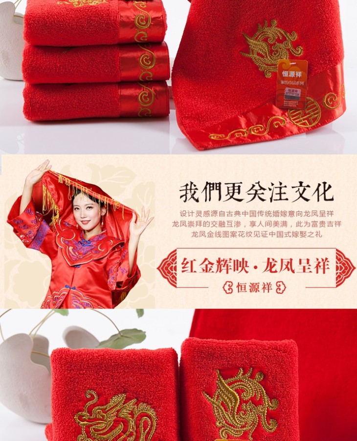 恒源祥龙凤喜庆面巾2条装2GT2213