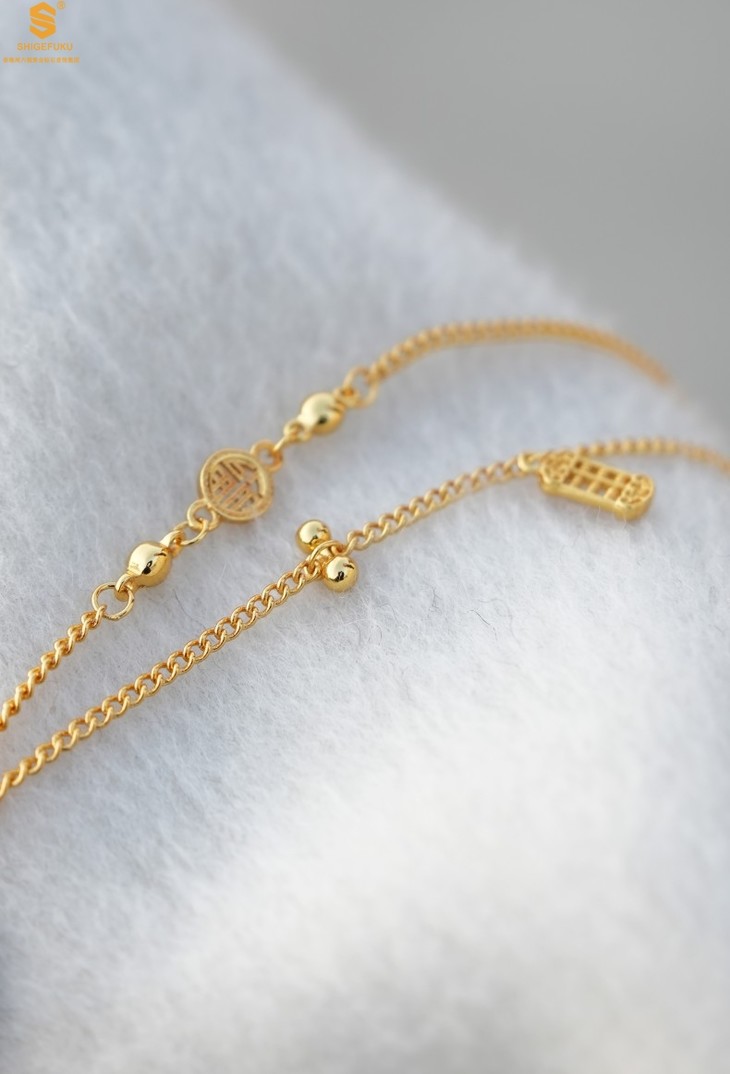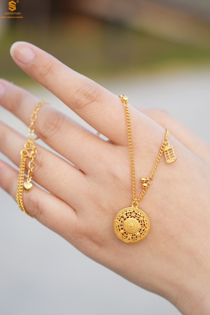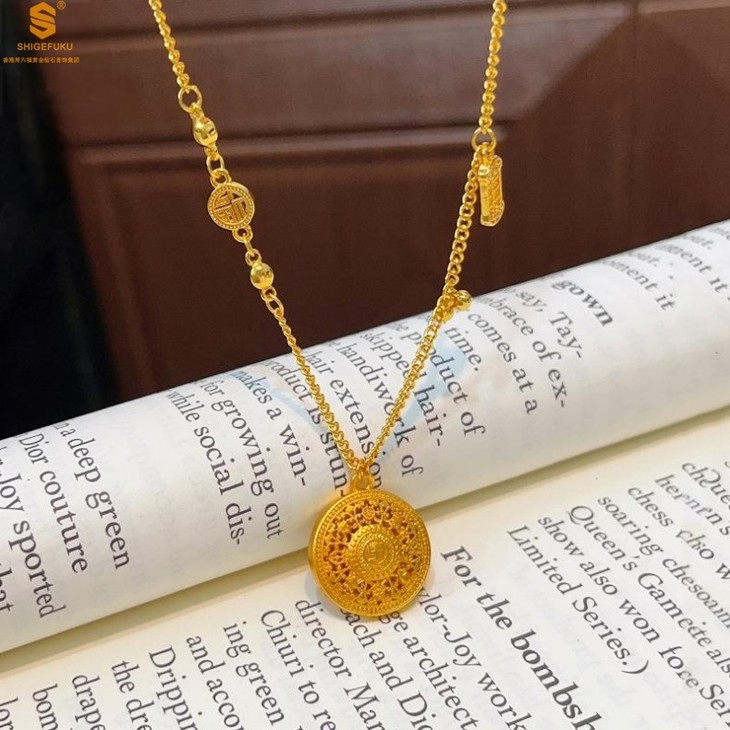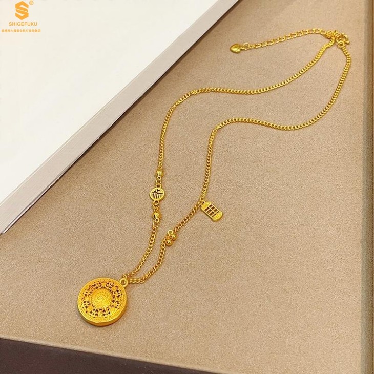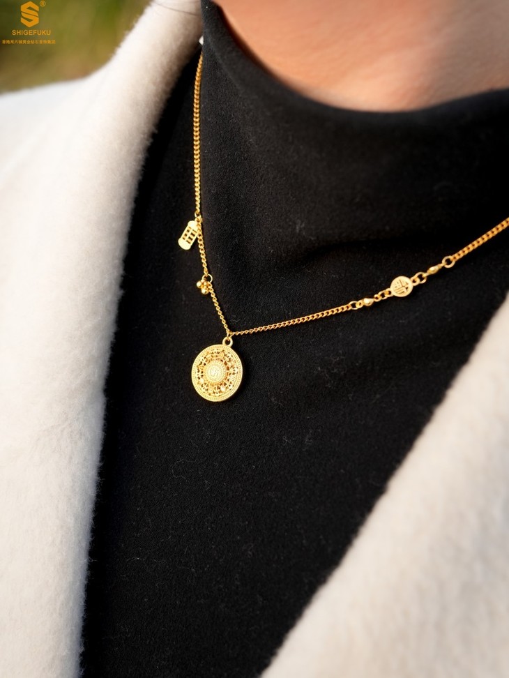 【香港周六福 幸福美满祥瑞」中式古法镂空八宝罗盘K金项链