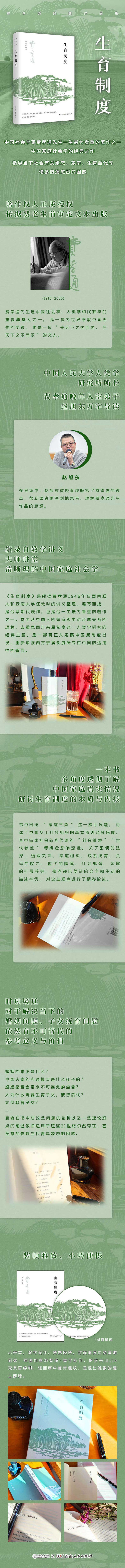 《生育制度》是费孝通1946年根据他在西南联大和云南大学任教时的讲义整理、编写而成,是他早期代表作,也是他一生为看重的著作之一。书中围绕“家庭三角”这一核心议题,论述了中国乡土社会组织的基本原则及其拓展,其中描述社会新陈代谢的“社会继替”“世代参差”等概念影响深远。关于婚姻的本质、 家庭中夫妻双方的沟通、婚姻所不可避免的痛苦的特性、父母的权力、世代的隔膜等,费老在书中都有精彩论述,对于解决当下的婚姻问题、子女抚育问题等,依然有不可替代的参考意义与价值。