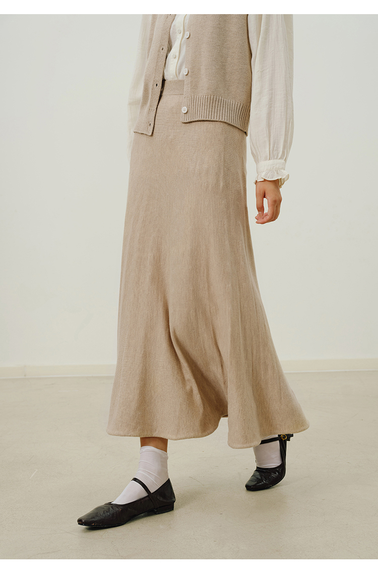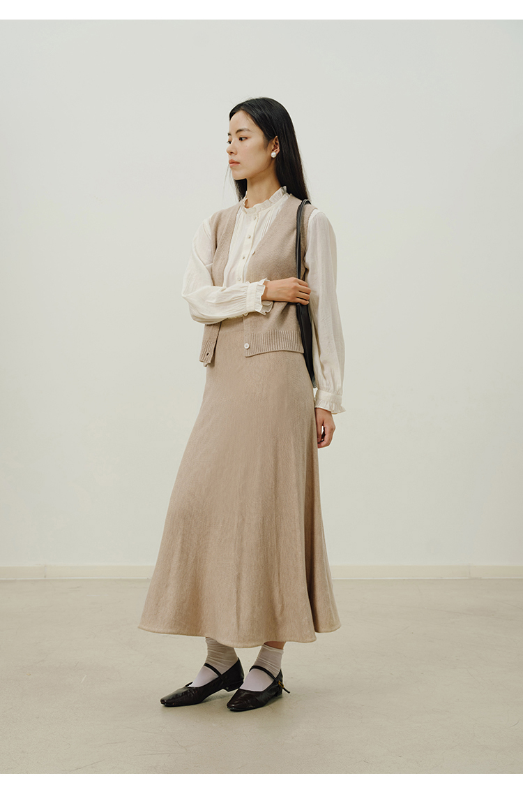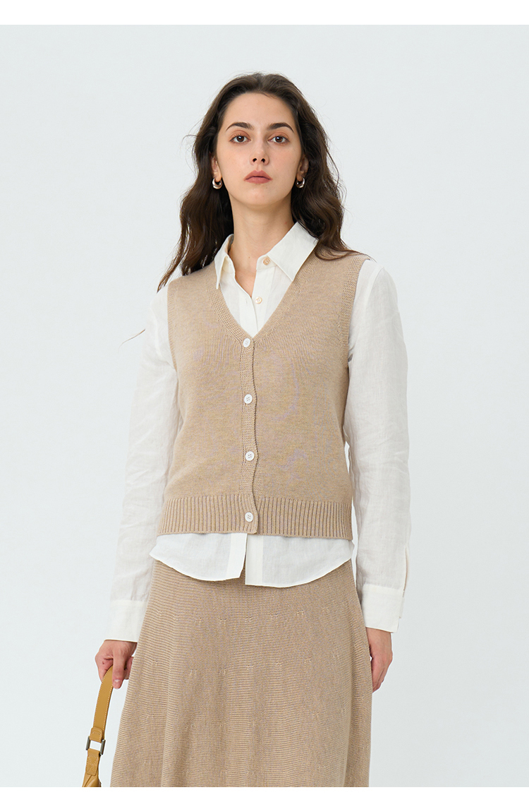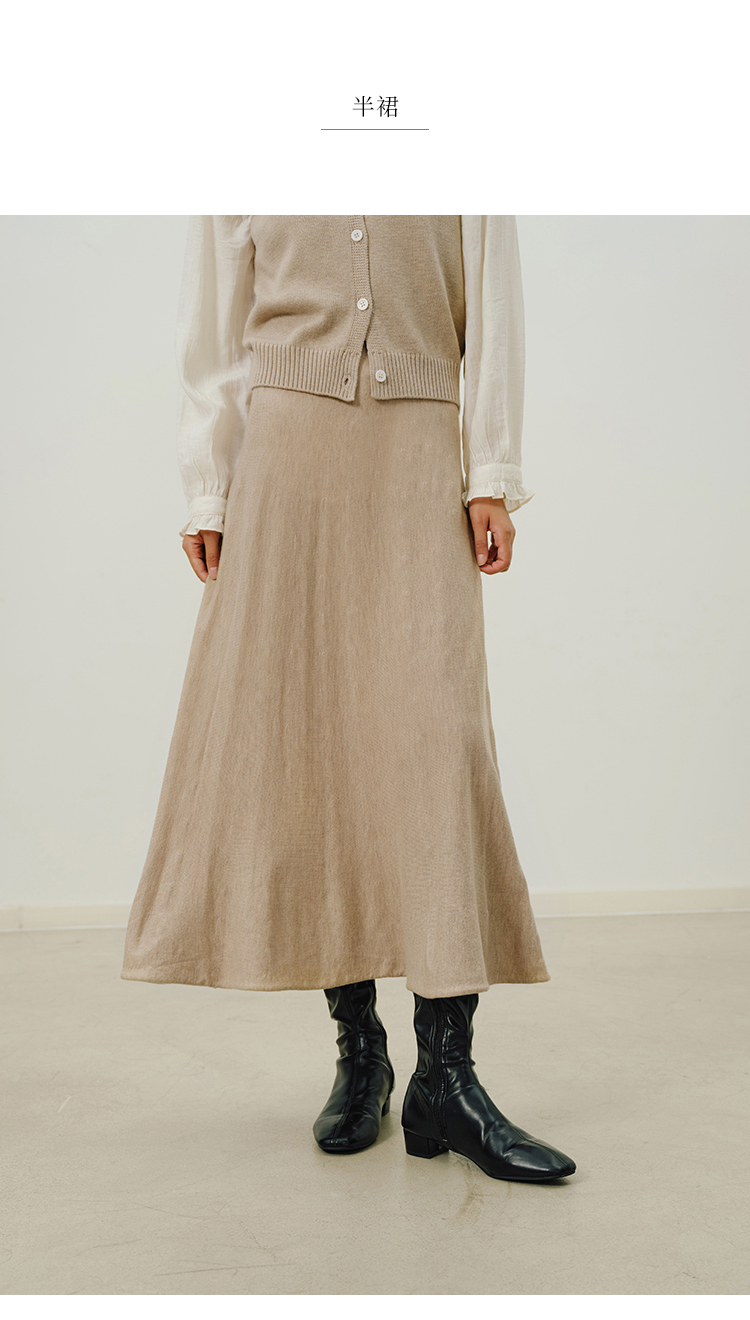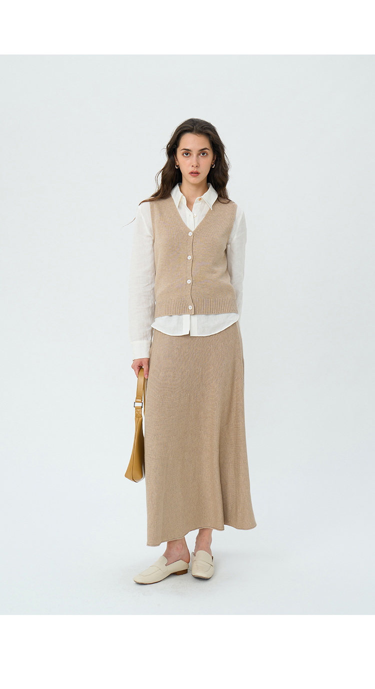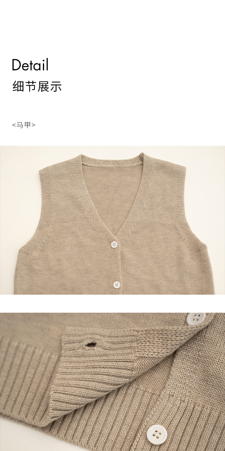 HeyDress针织马甲女秋季v领叠穿卡其色a字气质百搭半身裙时髦套装