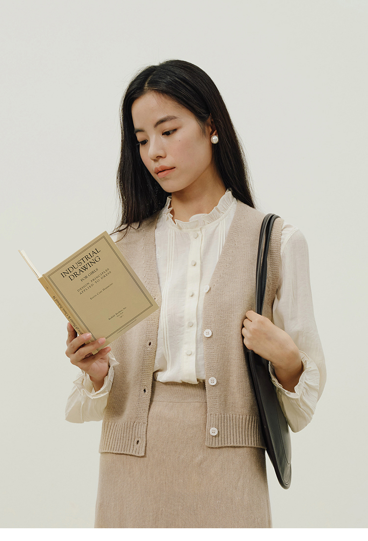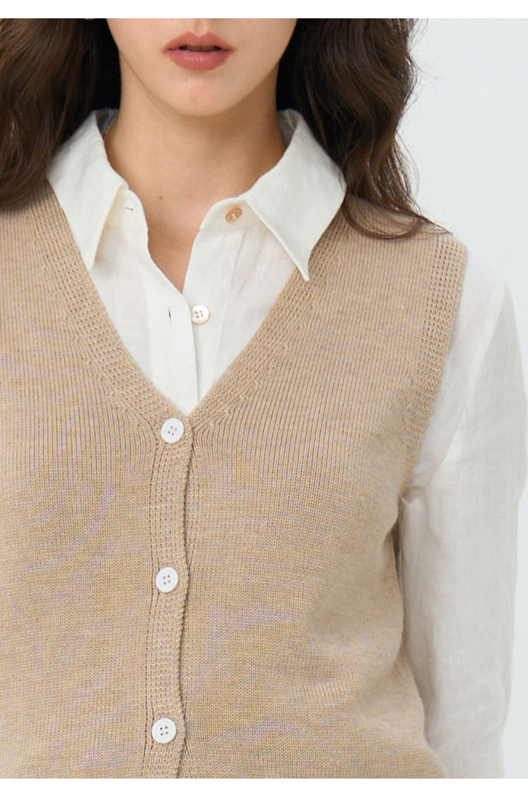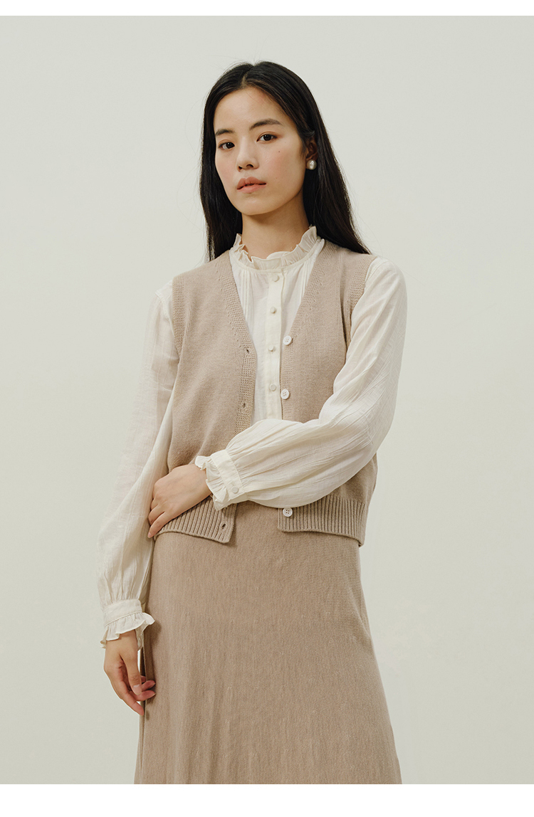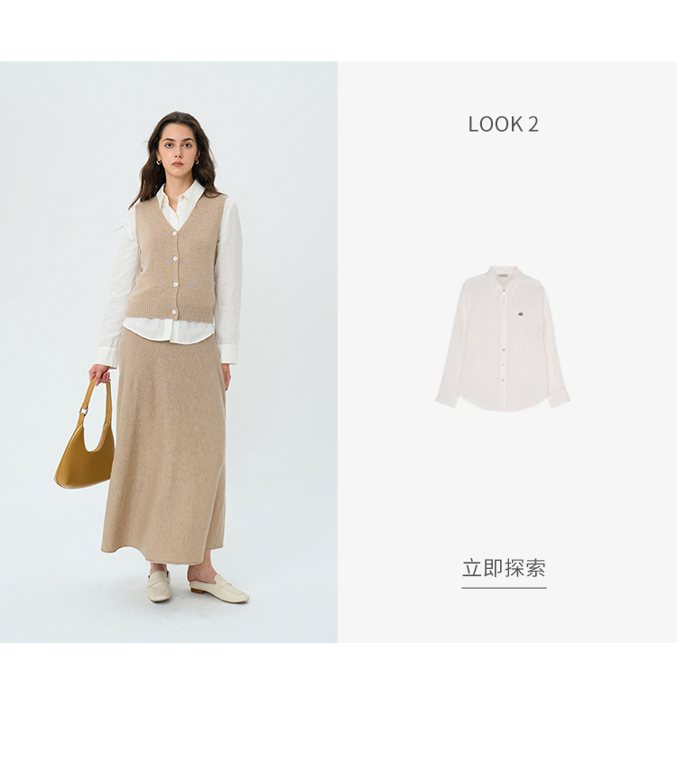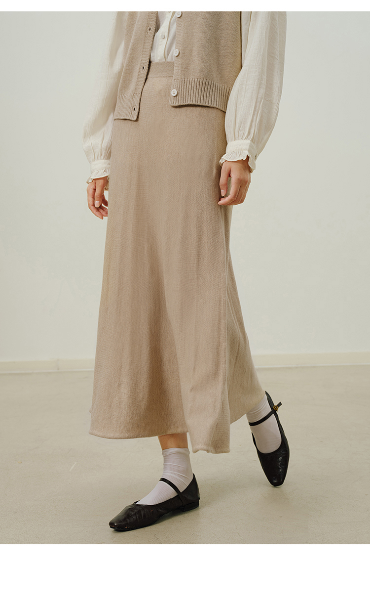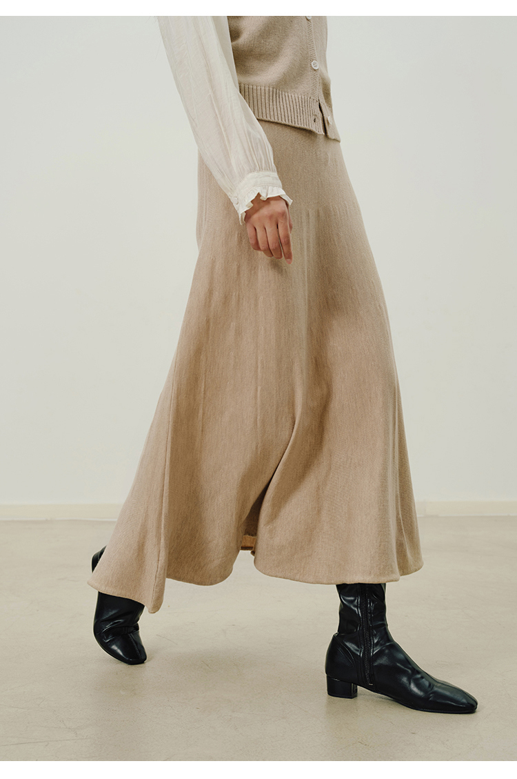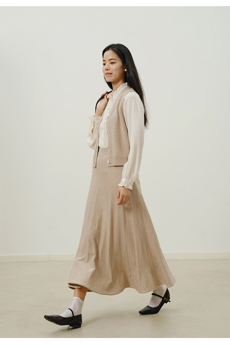HeyDress针织马甲女秋季v领叠穿卡其色a字气质百搭半身裙时髦套装