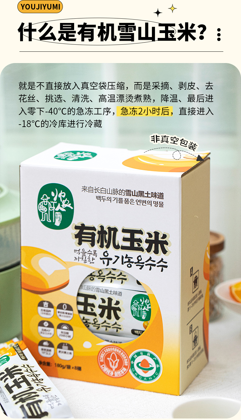 出口级有机速冻雪山玉米# 糯甜玉米味十足,来自长白山黑土地,非真空极速冷冻鲜度高