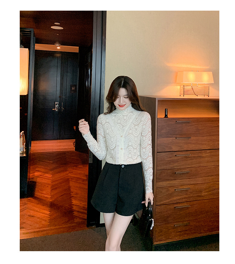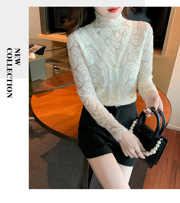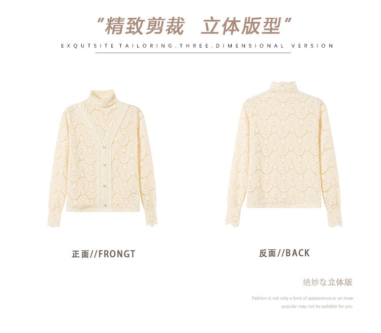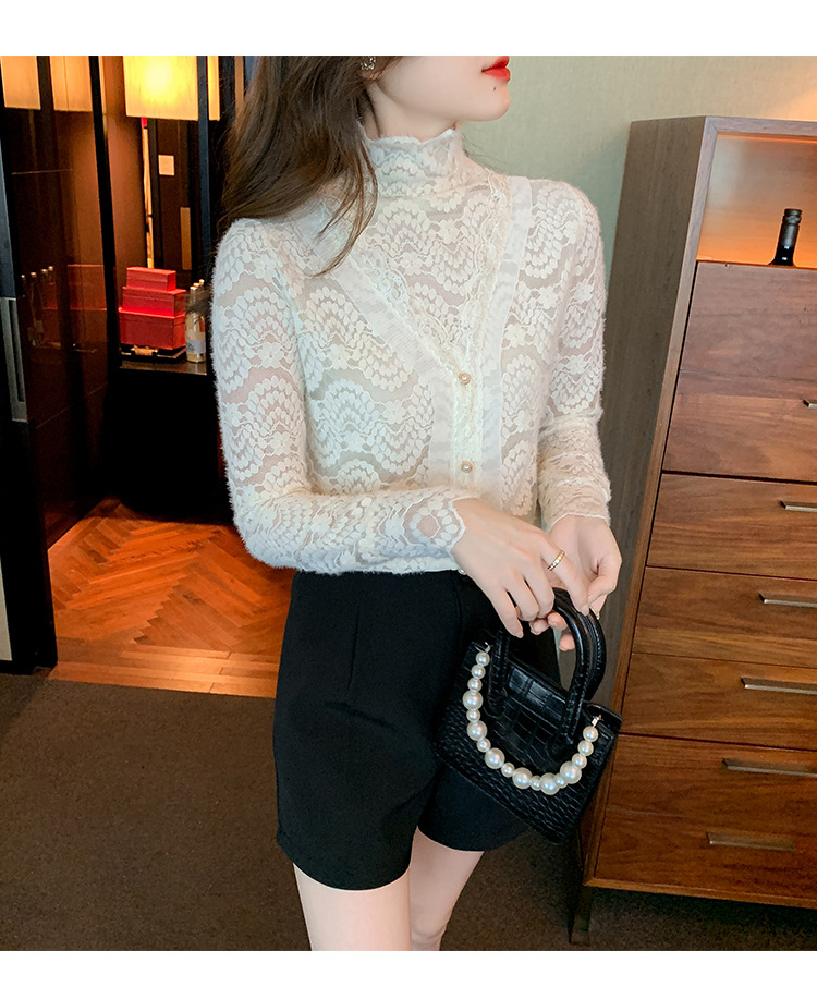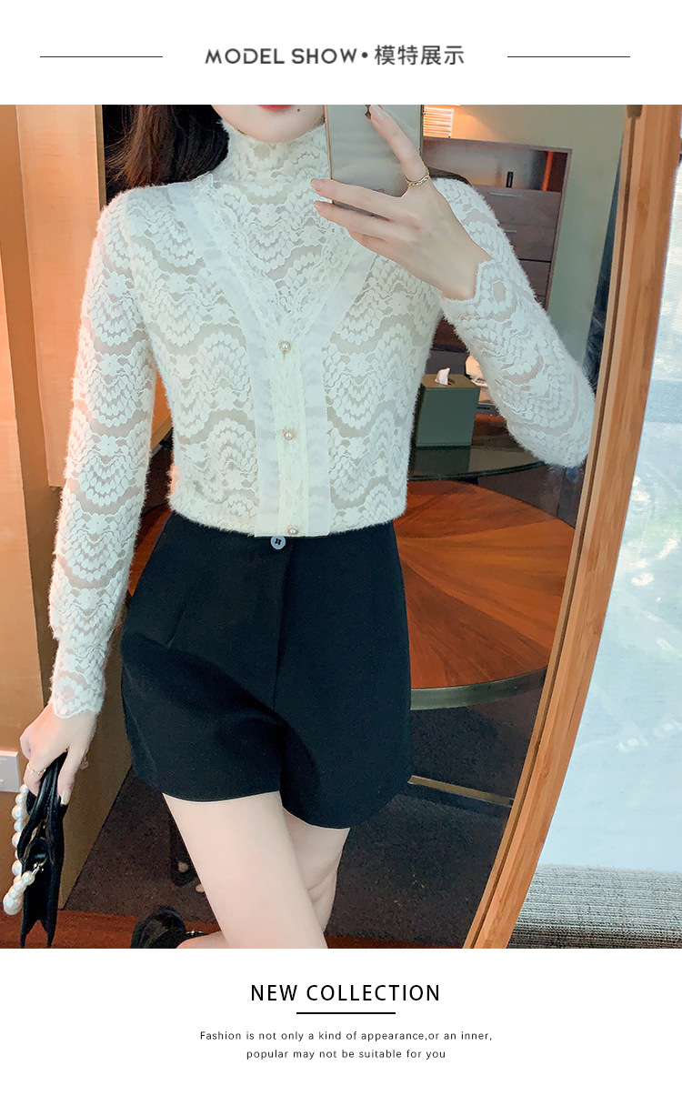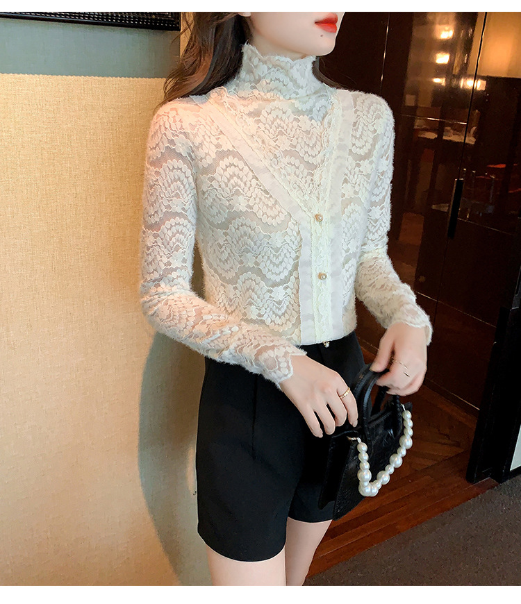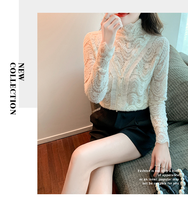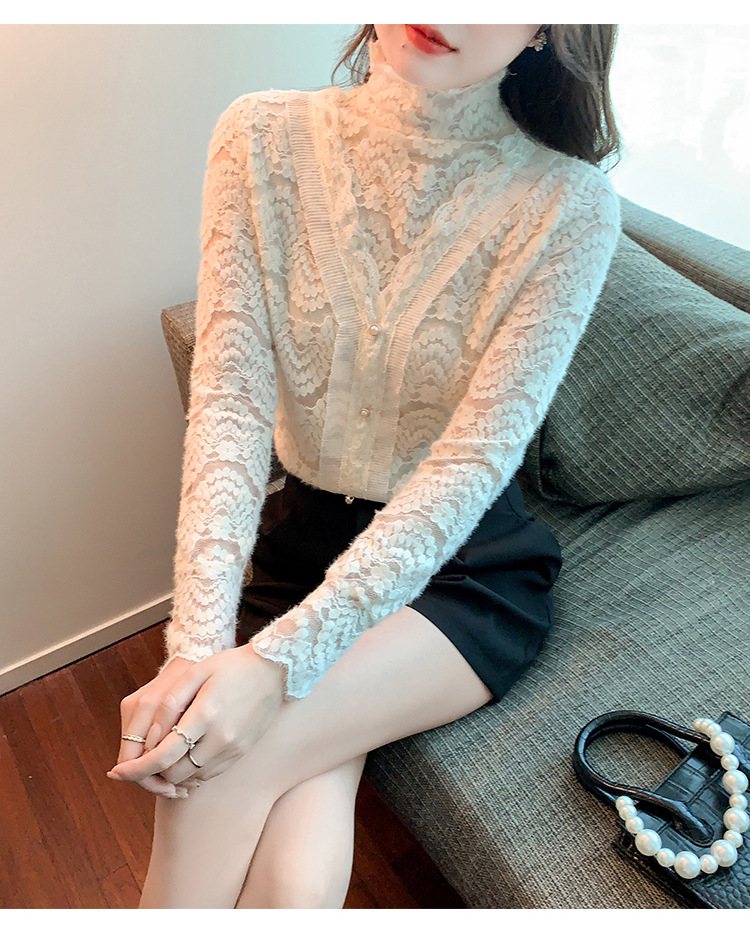 ZY-4194.292638秋冬新款修身显瘦磨毛蕾丝衫百搭半高领打底内搭长袖上衣女