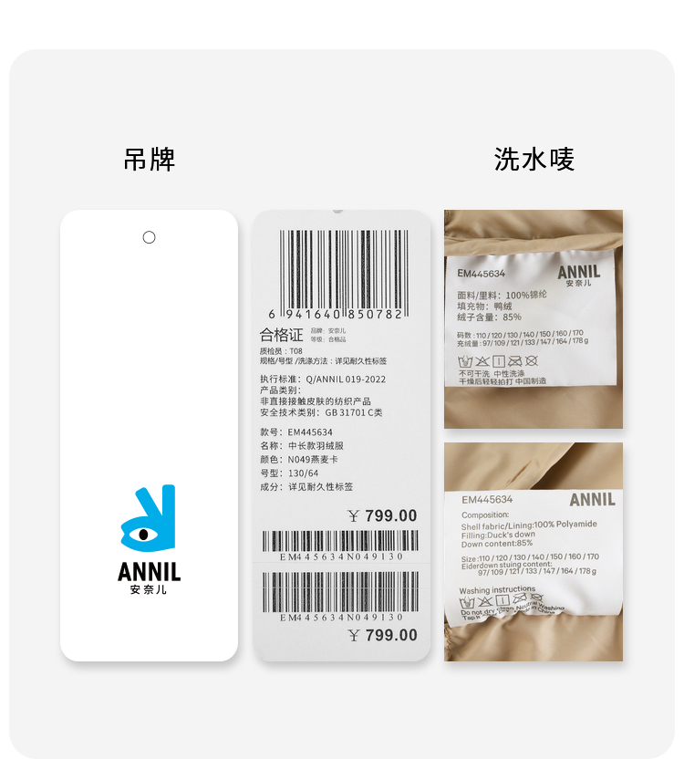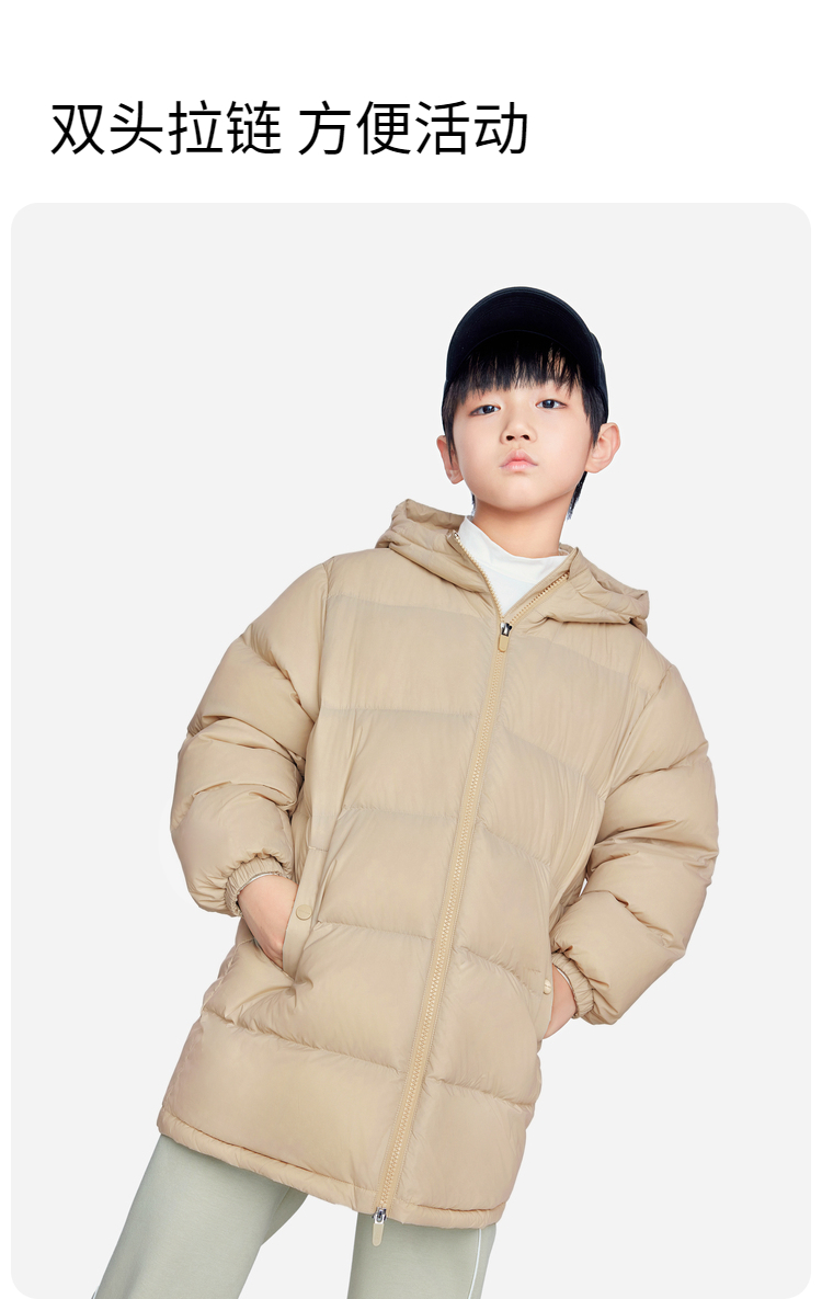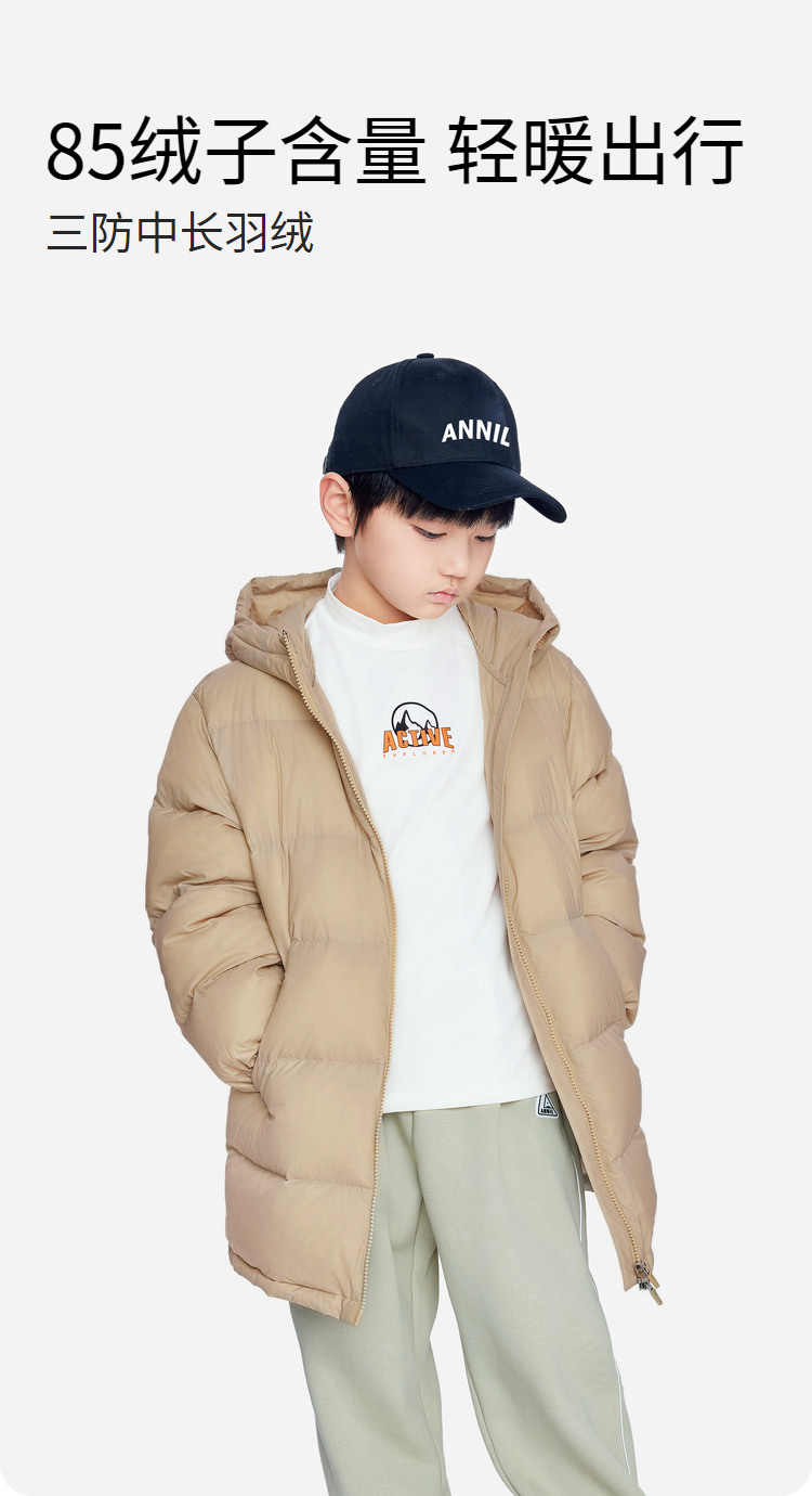 【轻暖0~10℃】男女童三防中长款羽绒服外套冬季新款安奈儿童装EM445634