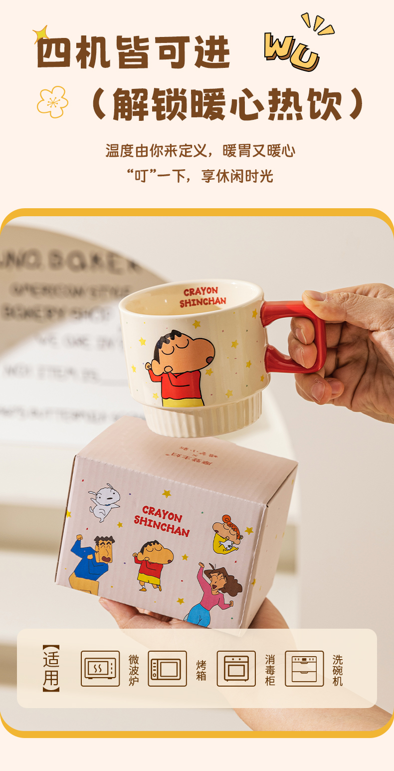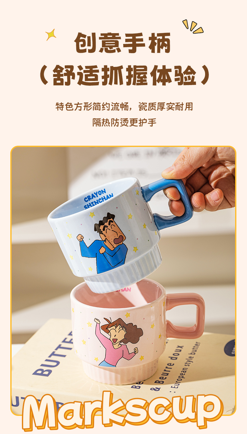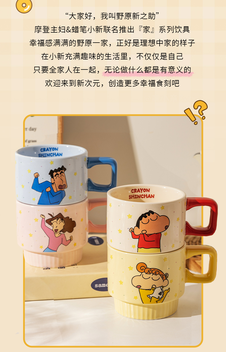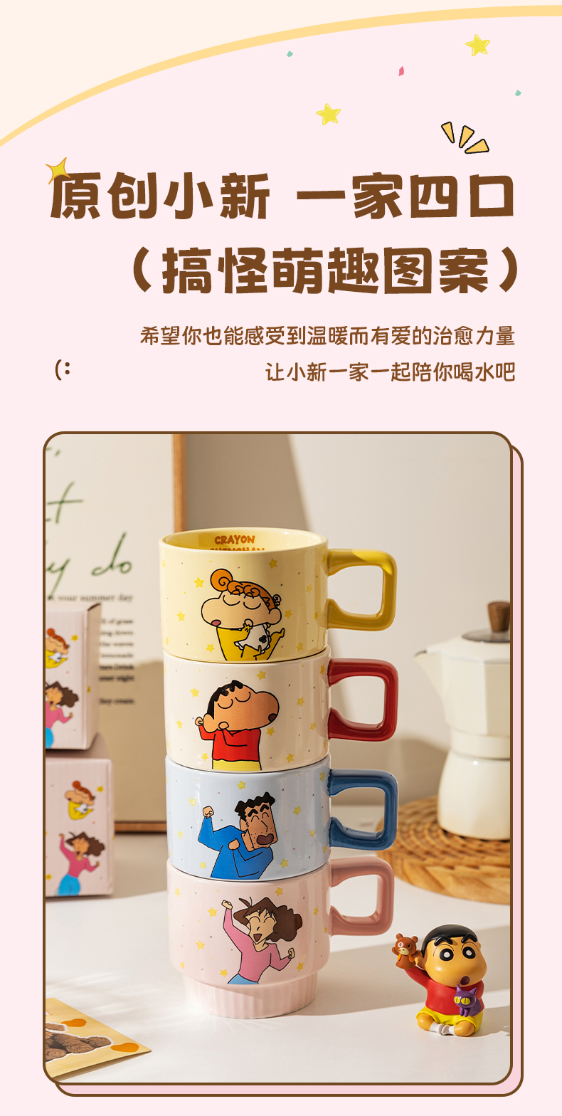摩登主妇&蜡笔小新 一家四口杯子陶瓷马克杯可爱套装家用水杯