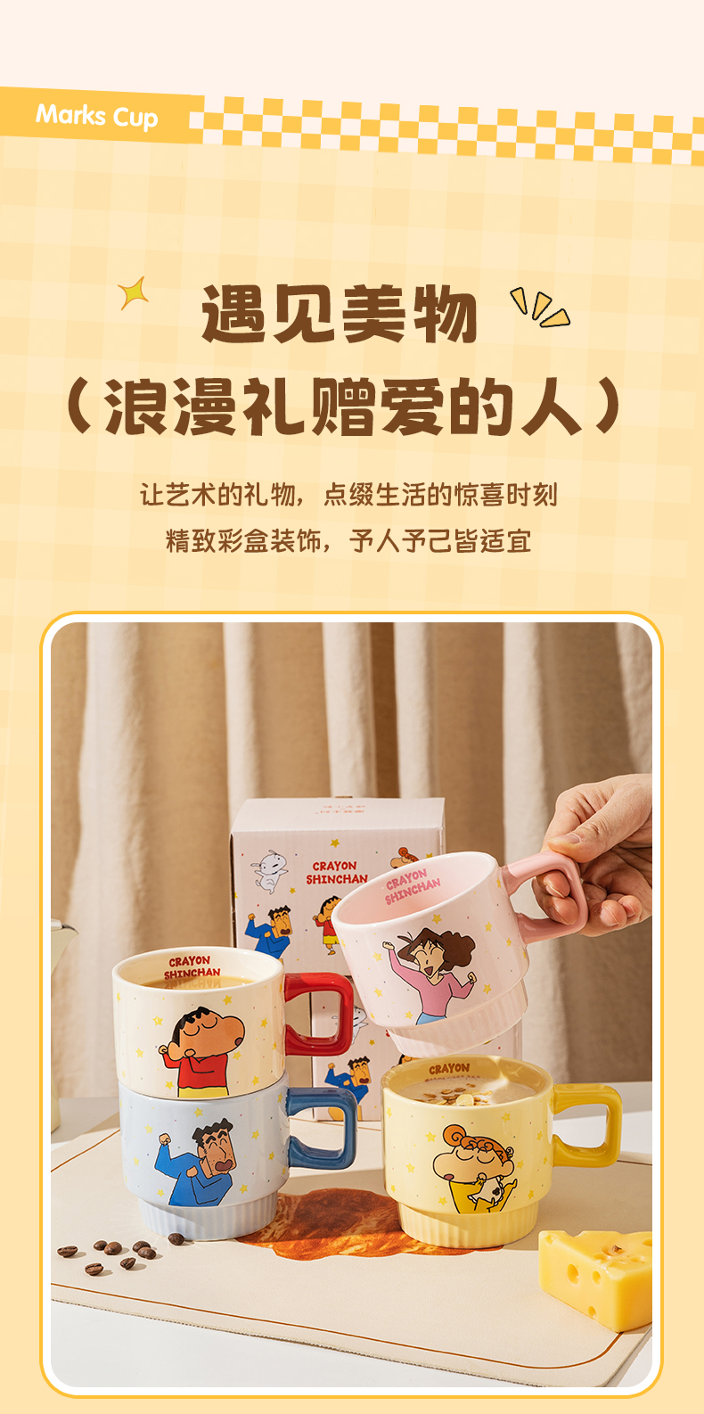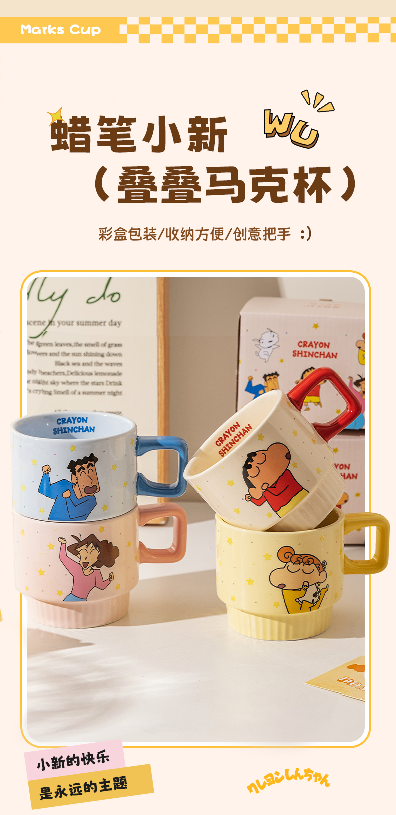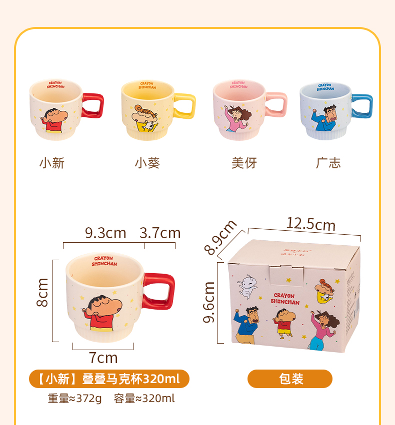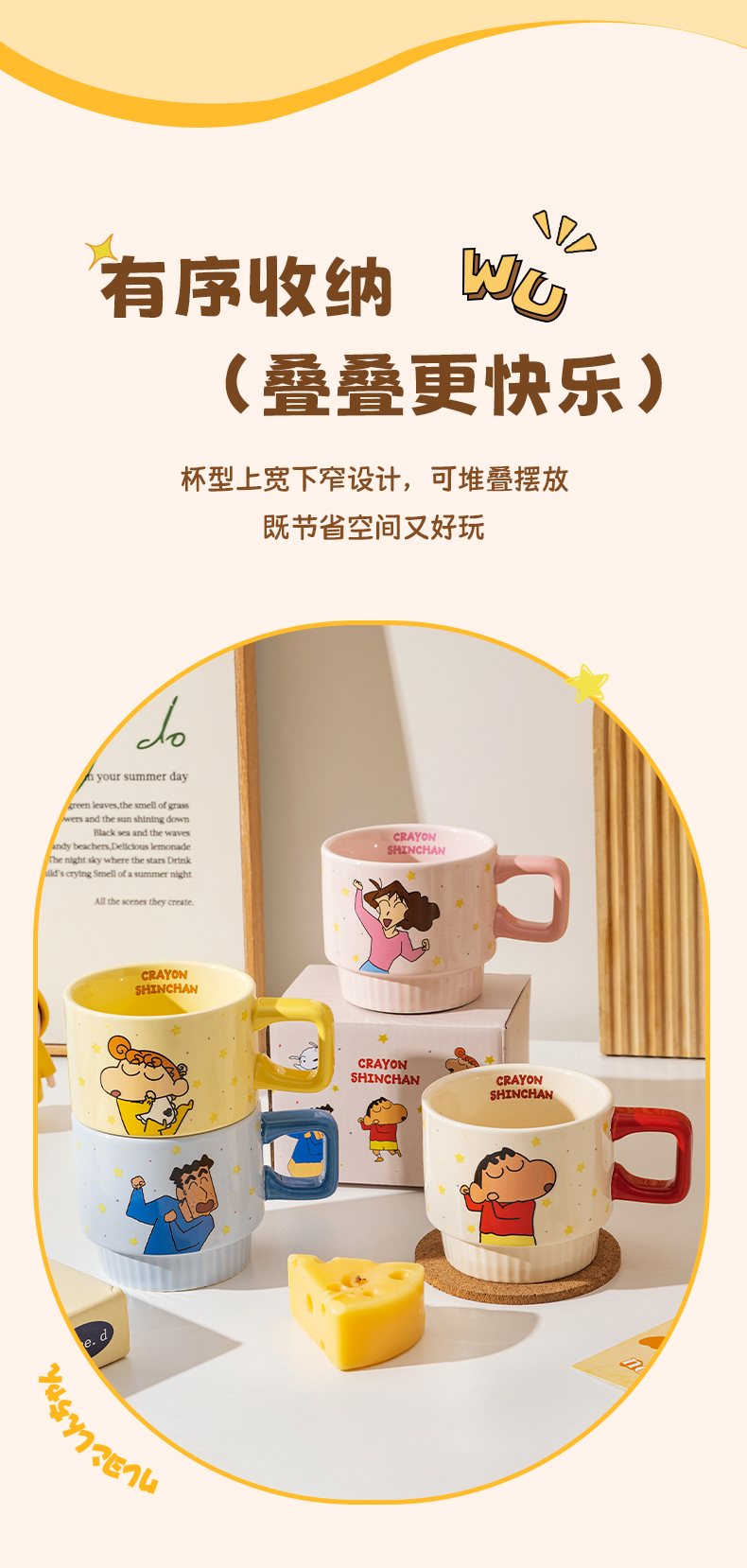 摩登主妇&蜡笔小新 一家四口杯子陶瓷马克杯可爱套装家用水杯