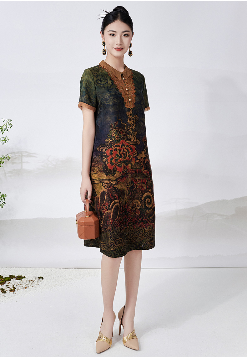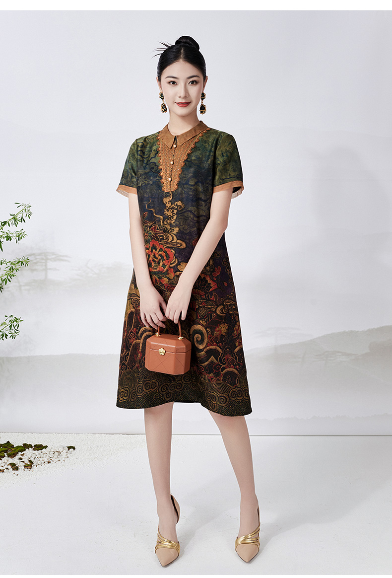 【满庭祥瑞图】【香云纱】乔万尼桑蚕丝连衣裙重磅26mm真丝复古气质高级感ET2E280