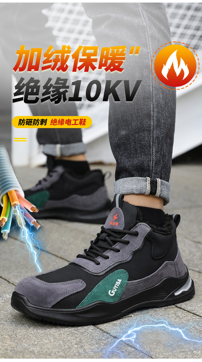 冬季加绒耐磨10KV电绝缘鞋防砸防刺劳保鞋电工用鞋