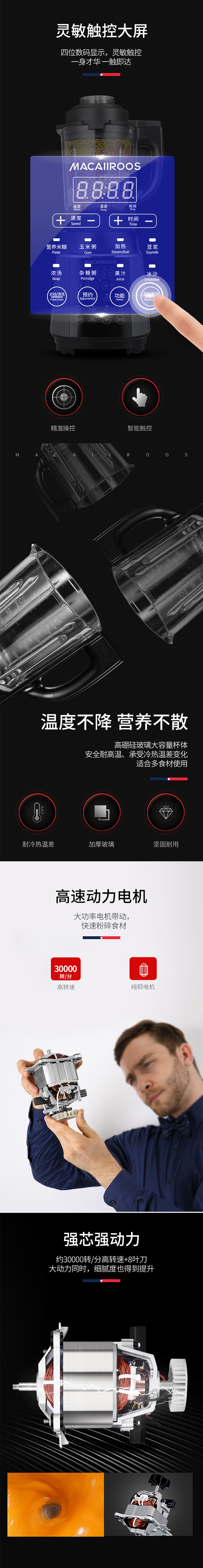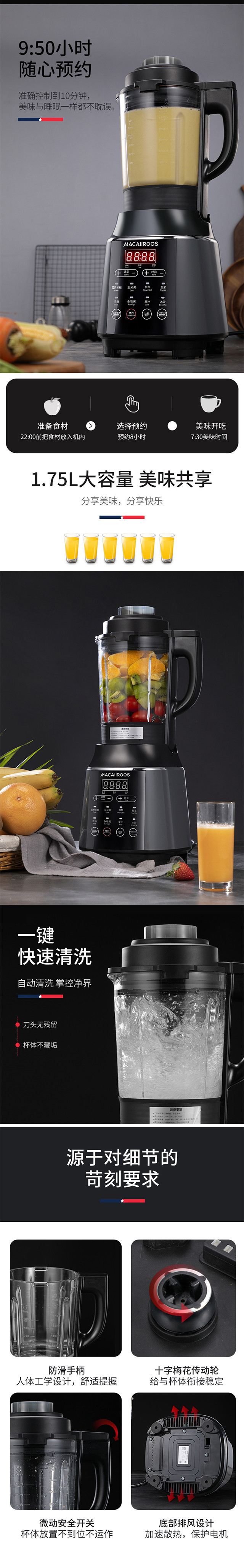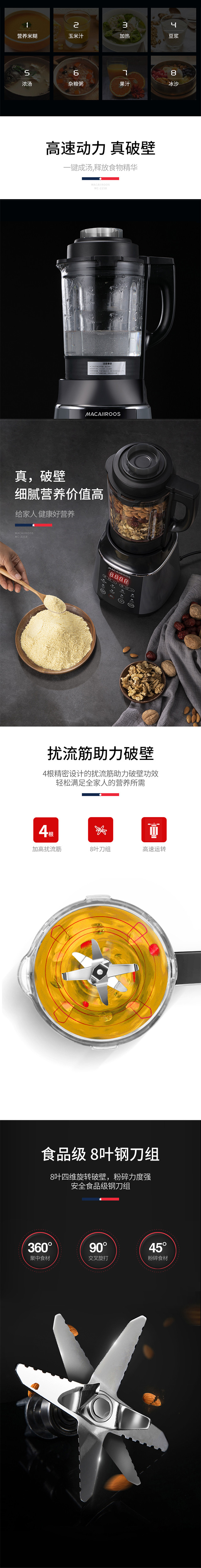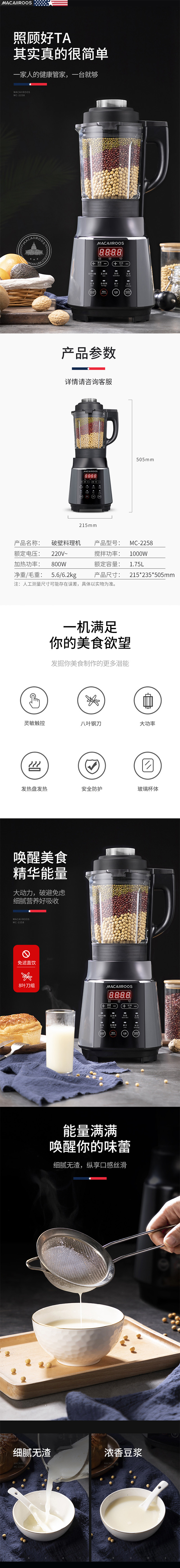 【一年质保迈卡罗破壁机MC2258 食品级 8页钢刀组 高速动力 真破壁 细腻营养价值高