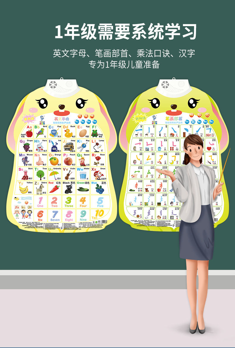 【2张组合】拼音挂图 有声早教发声识字 任人物字母表宝宝启蒙-C仓
