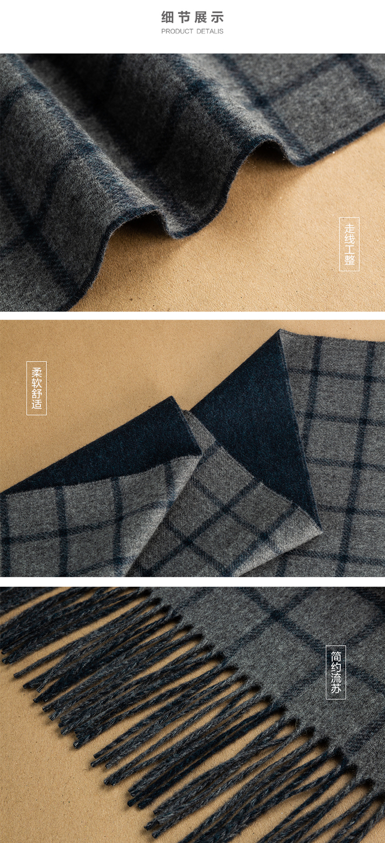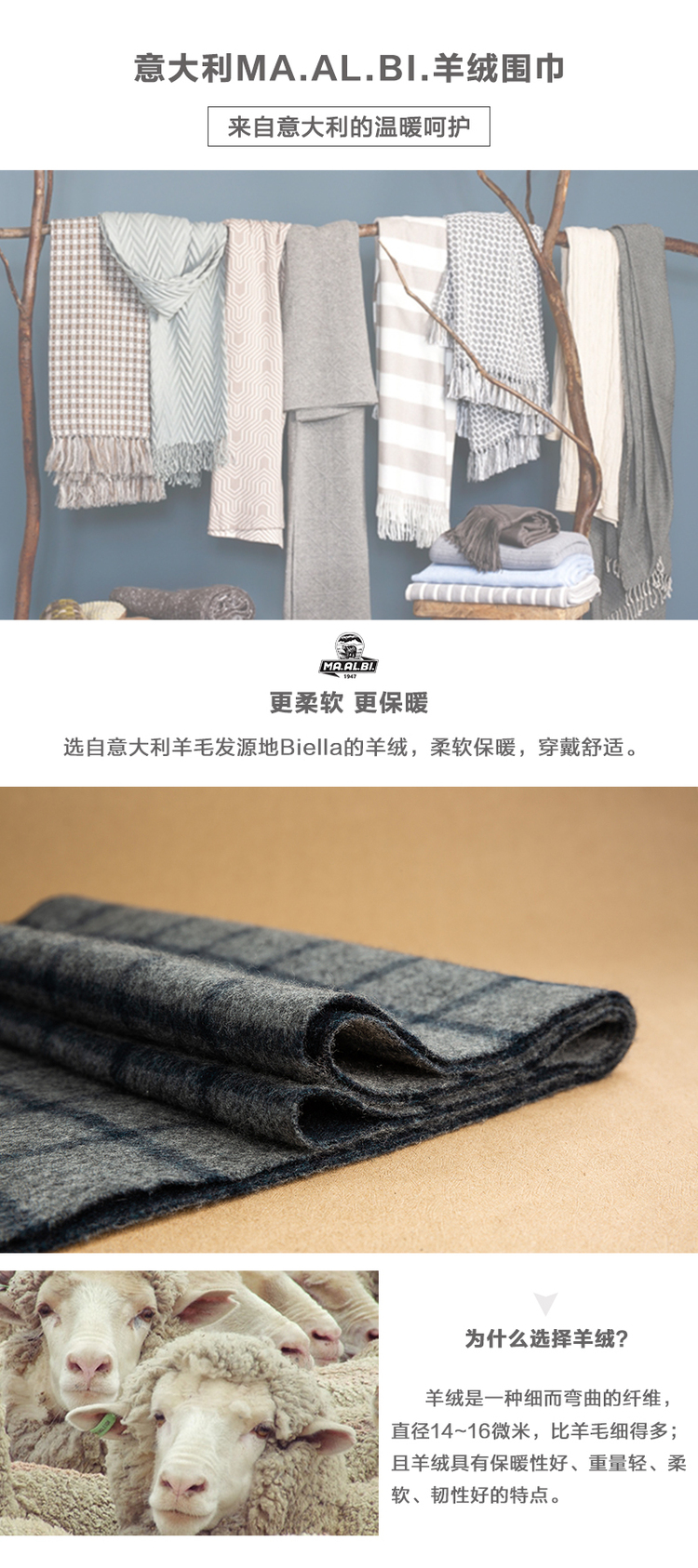 【MA.AL.BI.】意大利原产双层羊绒围巾男士围巾灰色格子