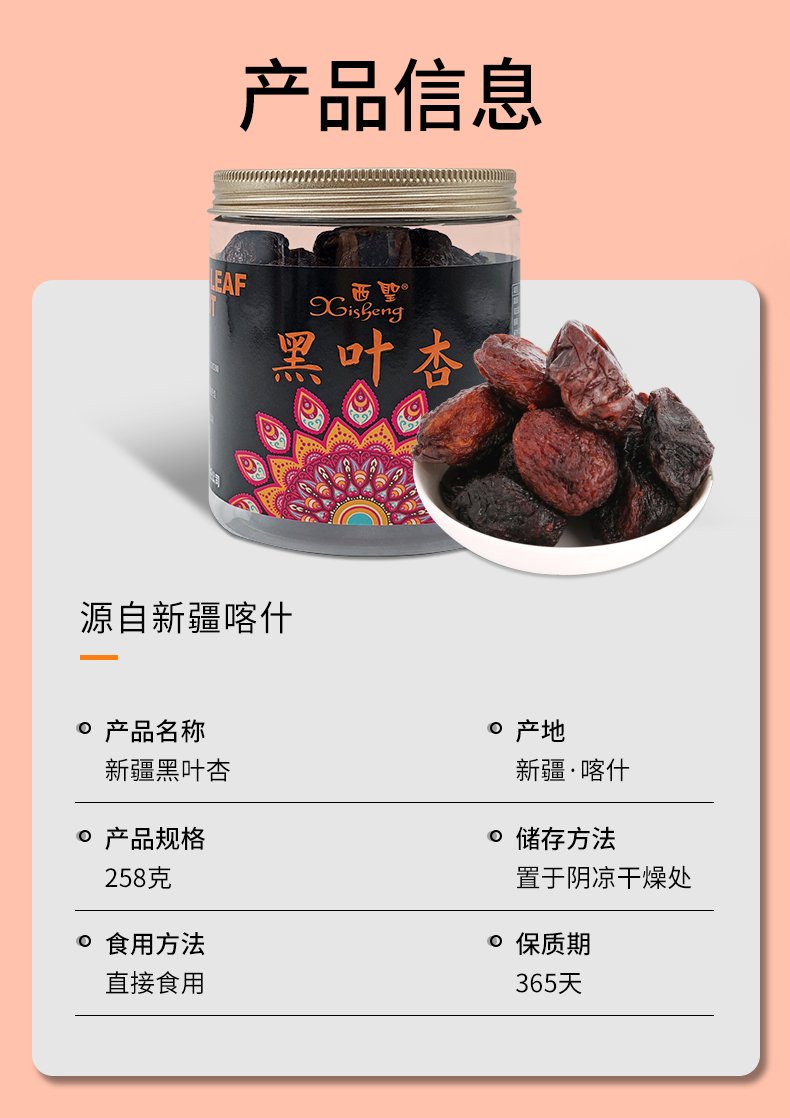 西圣·新疆黑叶杏258g 果肉肥厚 颗粒饱满 口感香甜嫩滑