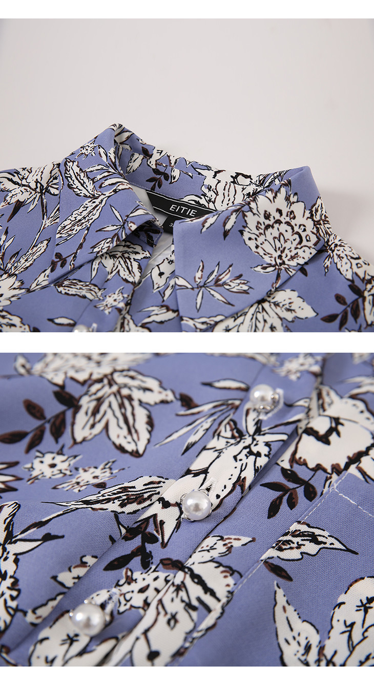 EITIE爱特爱春季新款气质百搭直筒显瘦翻领印花衬衫连衣裙女D2107701