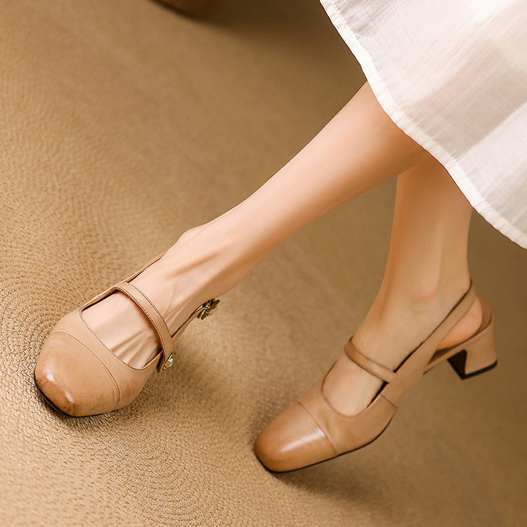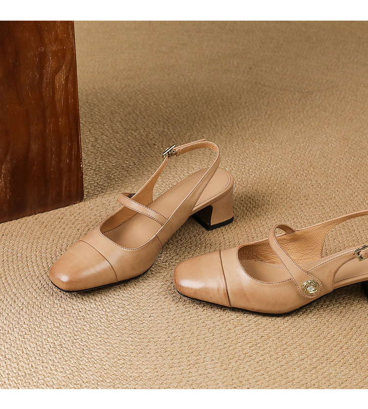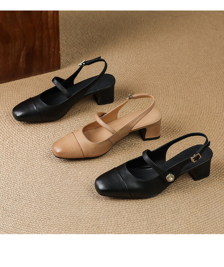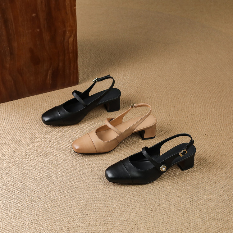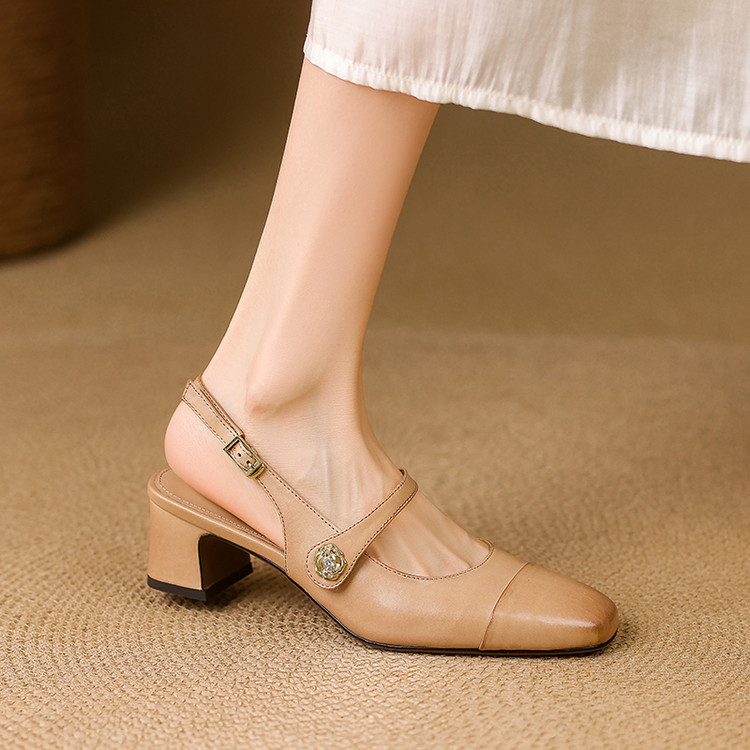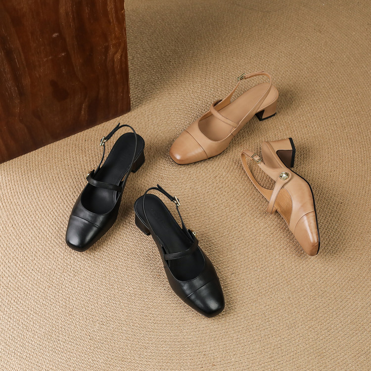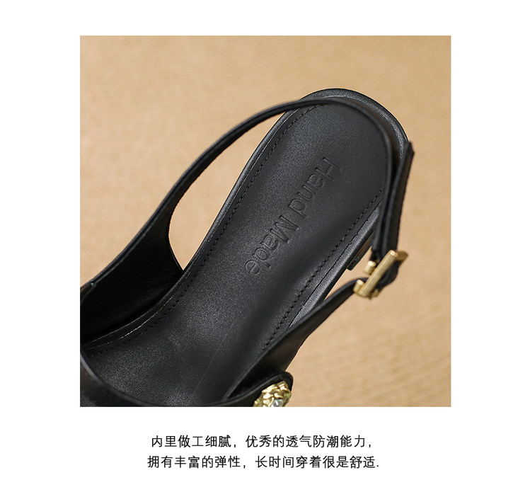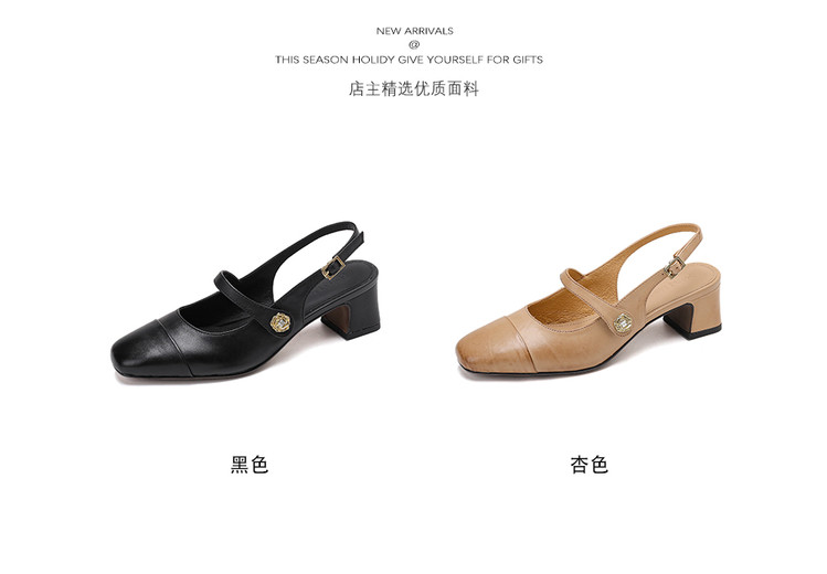 【预售5天】牛皮版~法式时髦高级感圆头粗跟后绊带包头时尚百搭女夏时装凉鞋AA&C262