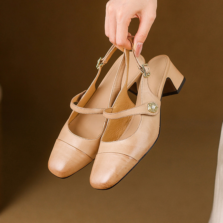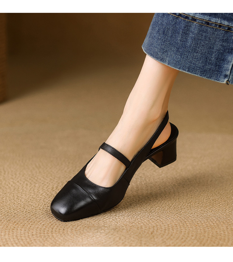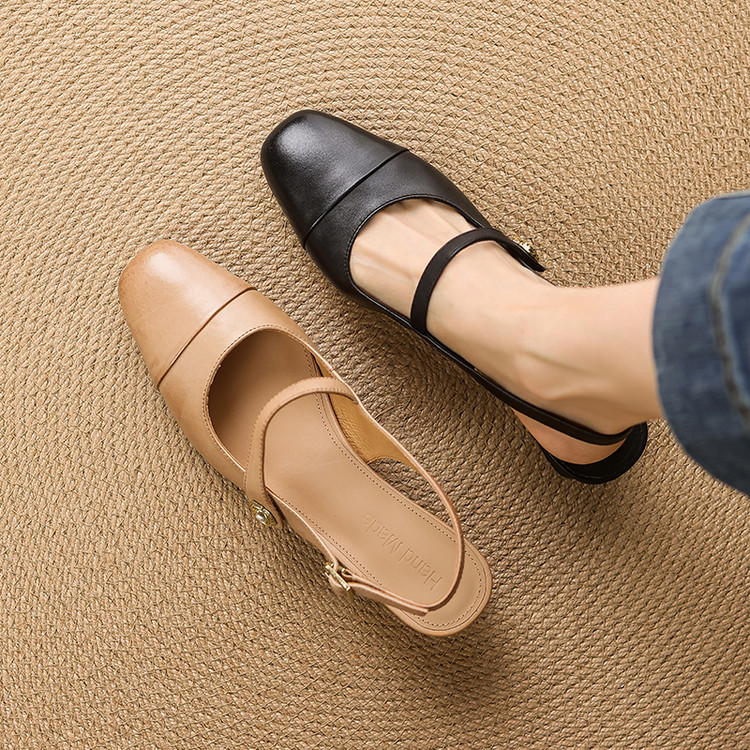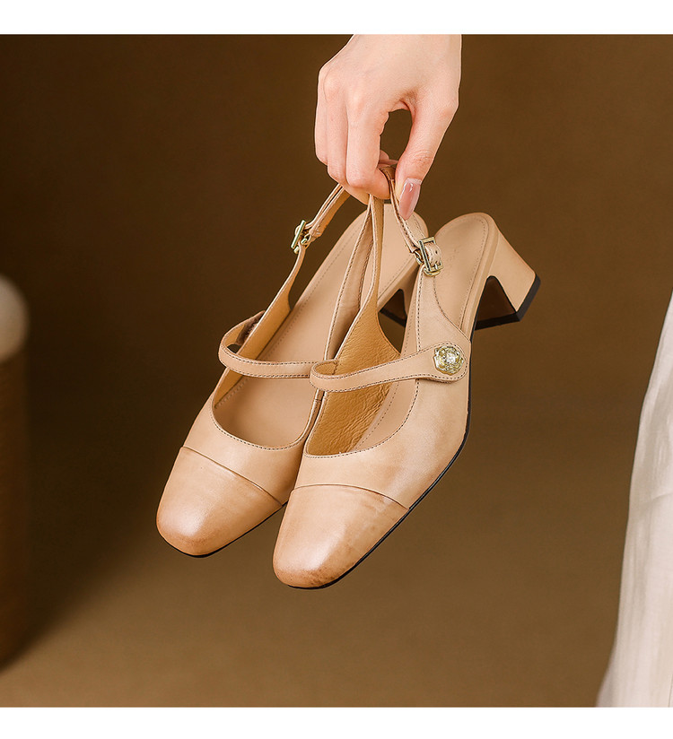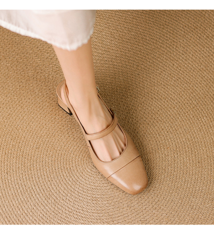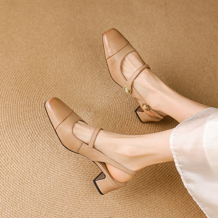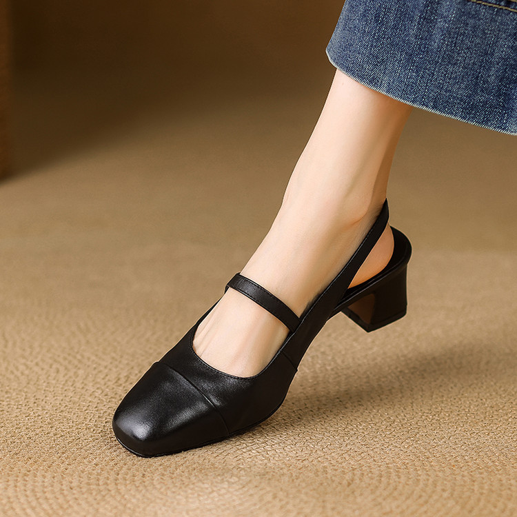 【预售5天】牛皮版~法式时髦高级感圆头粗跟后绊带包头时尚百搭女夏时装凉鞋AA&C262