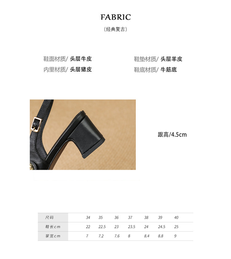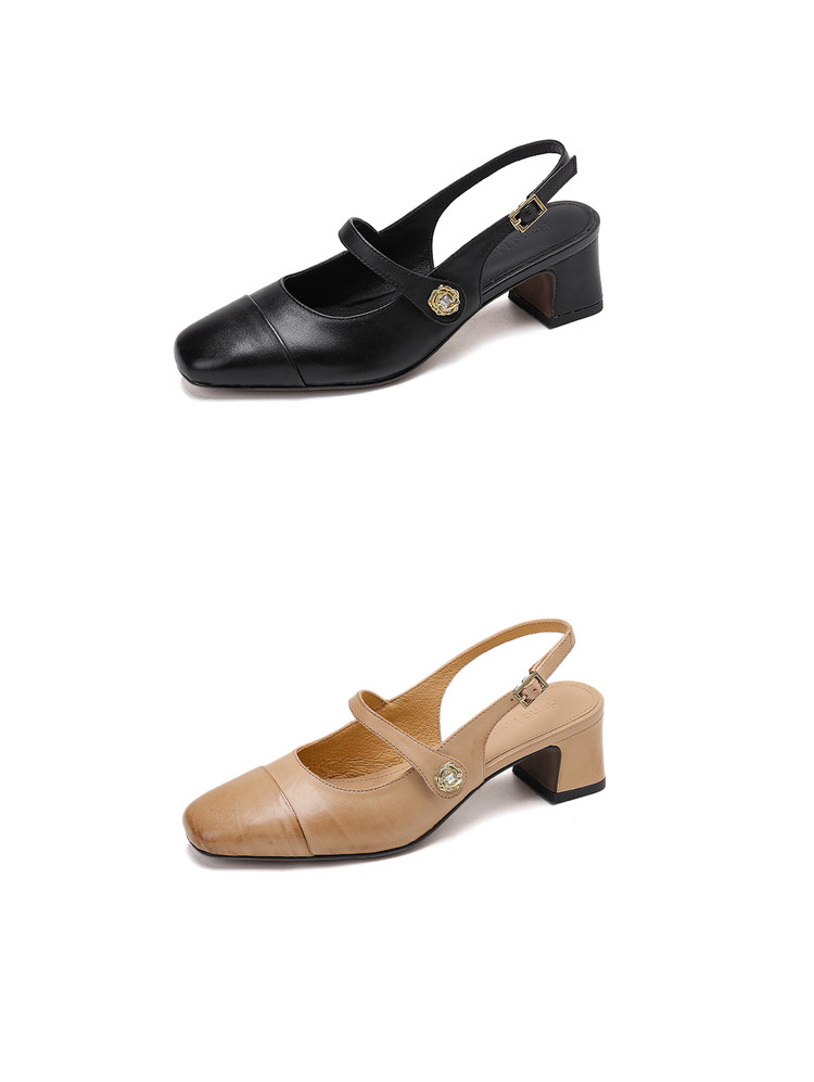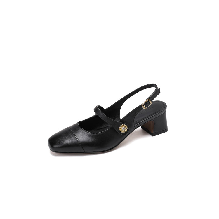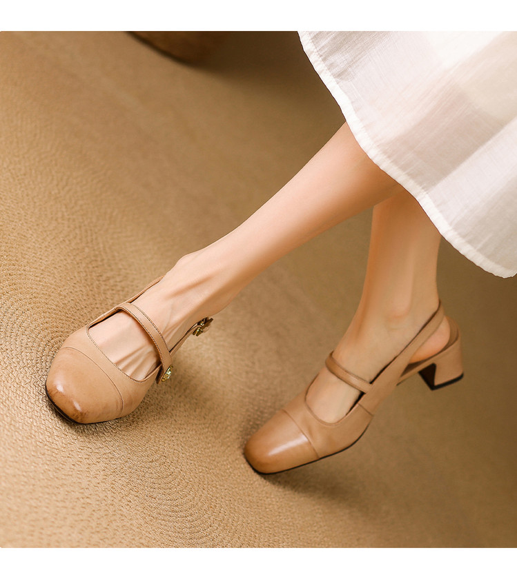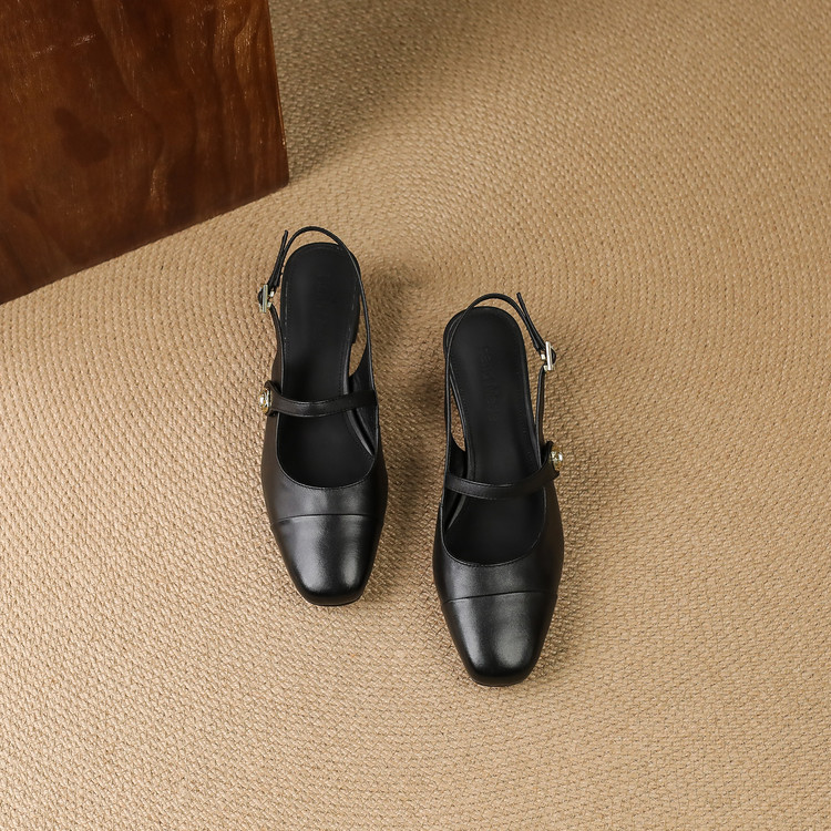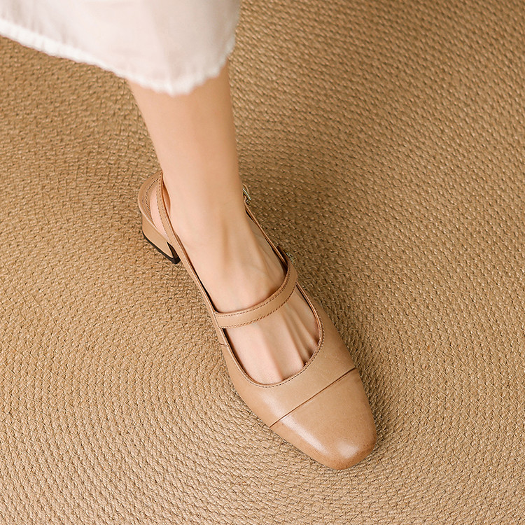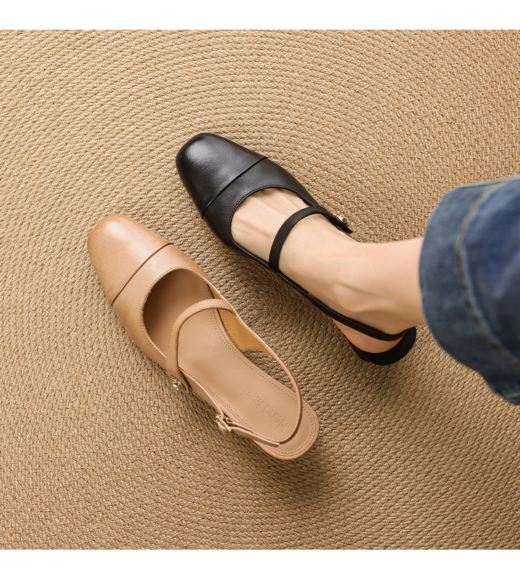 【预售5天】牛皮版~法式时髦高级感圆头粗跟后绊带包头时尚百搭女夏时装凉鞋AA&C262