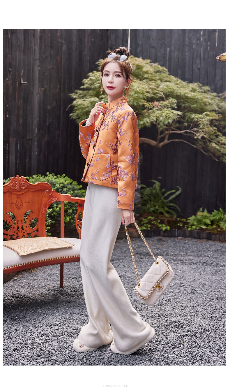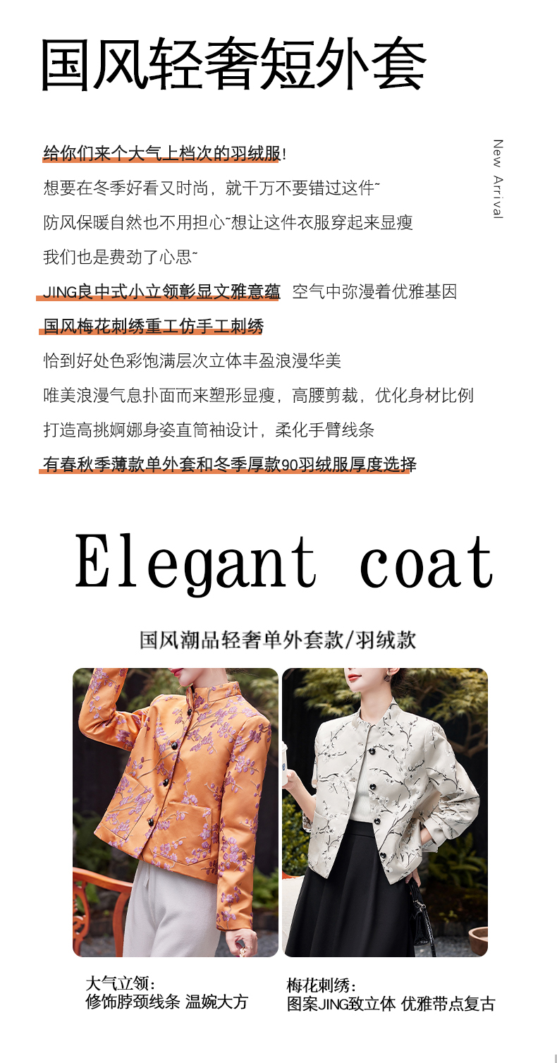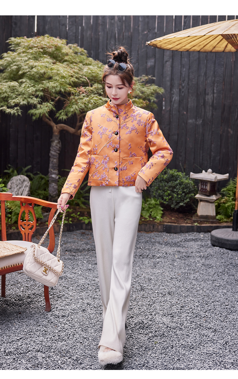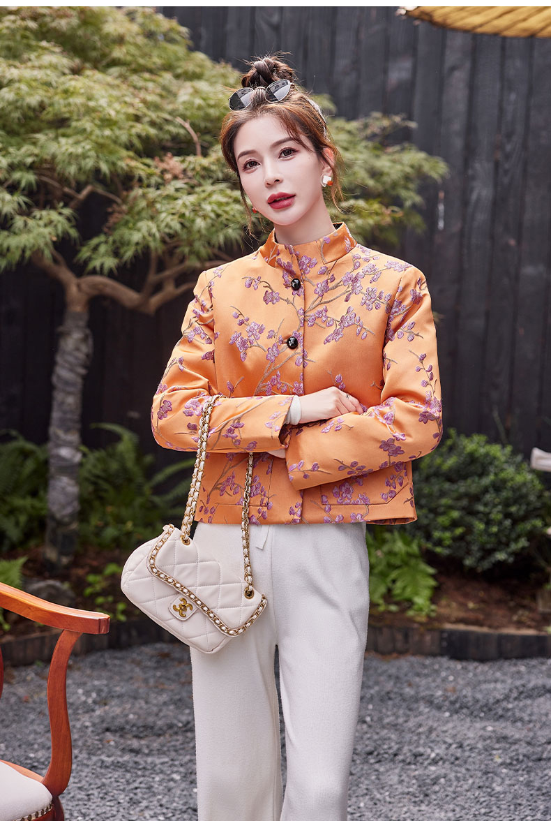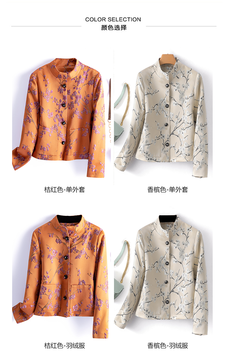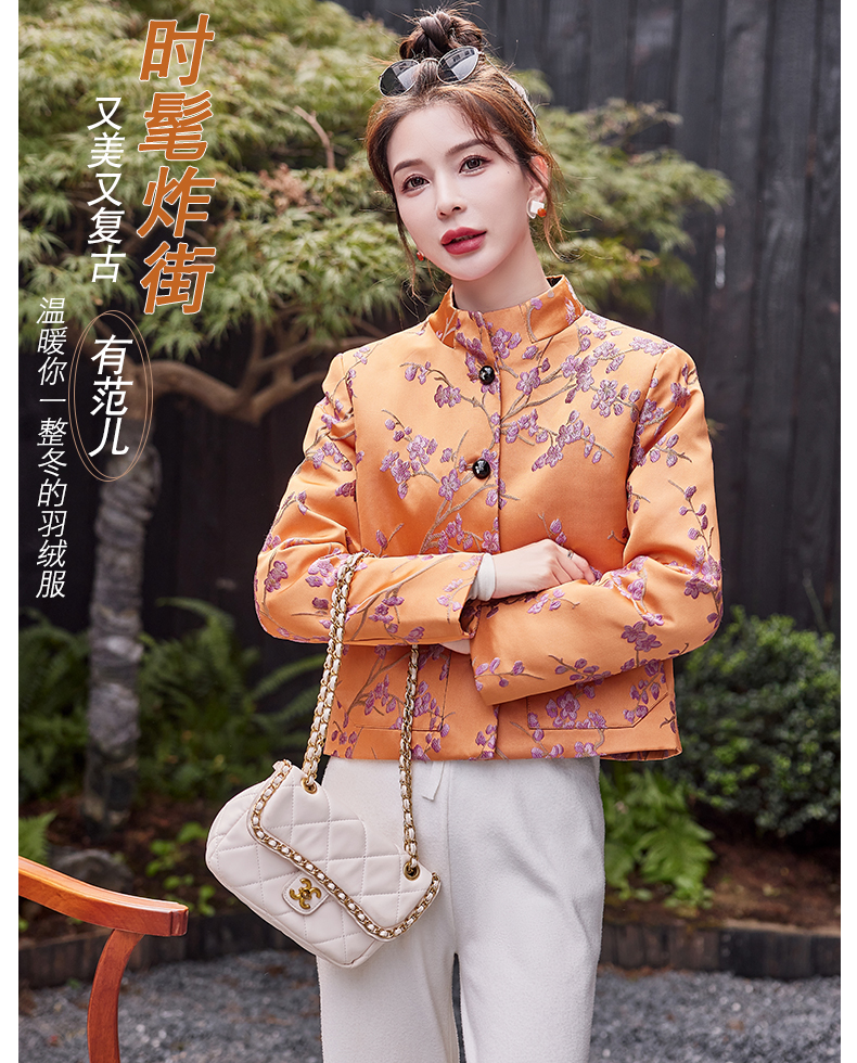 秋冬款新,中式提花料缎面小立领羽绒外套HR-SYY2378