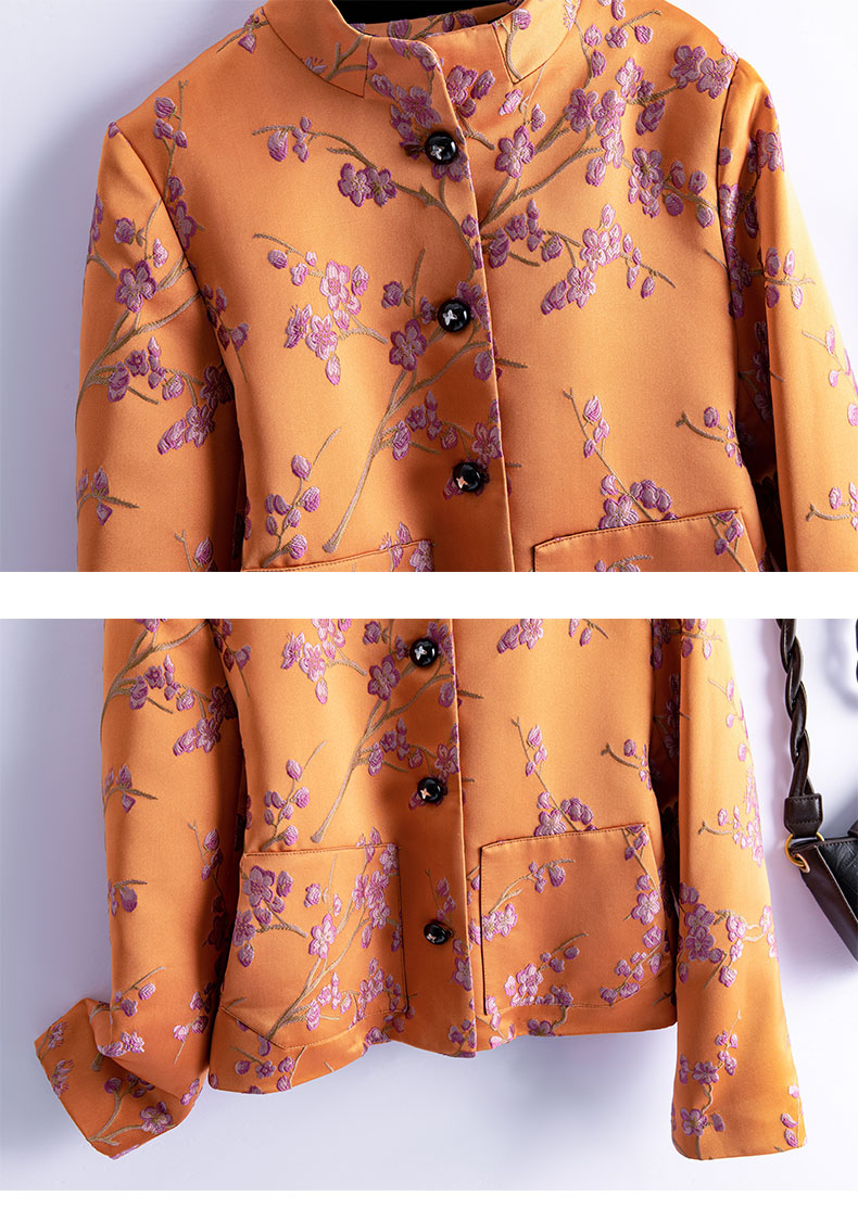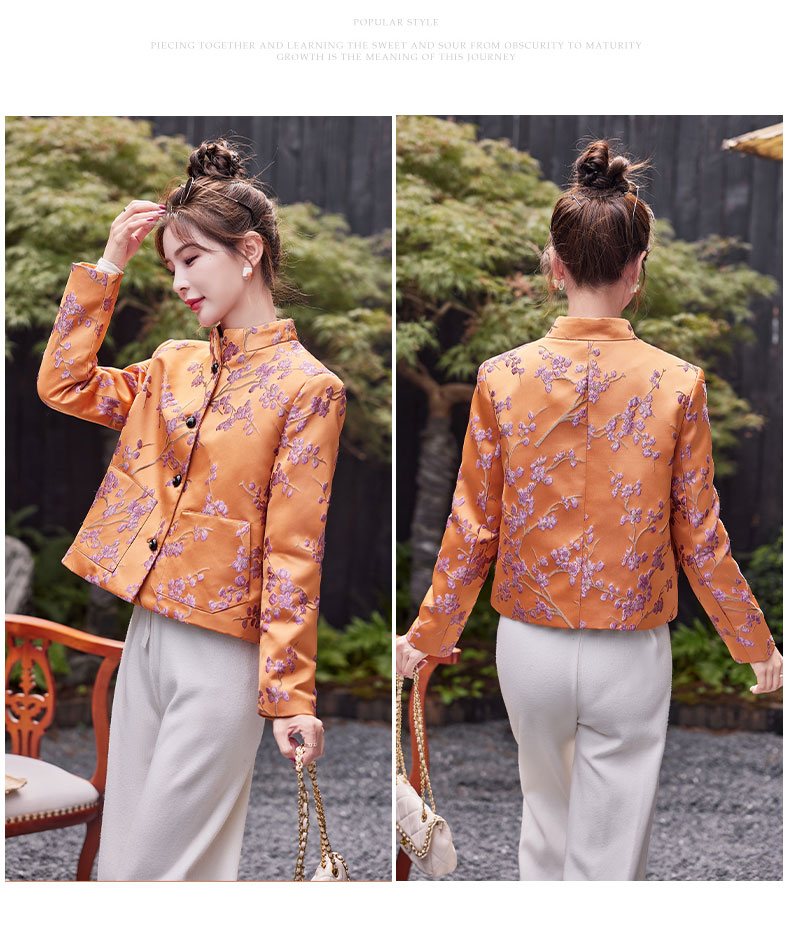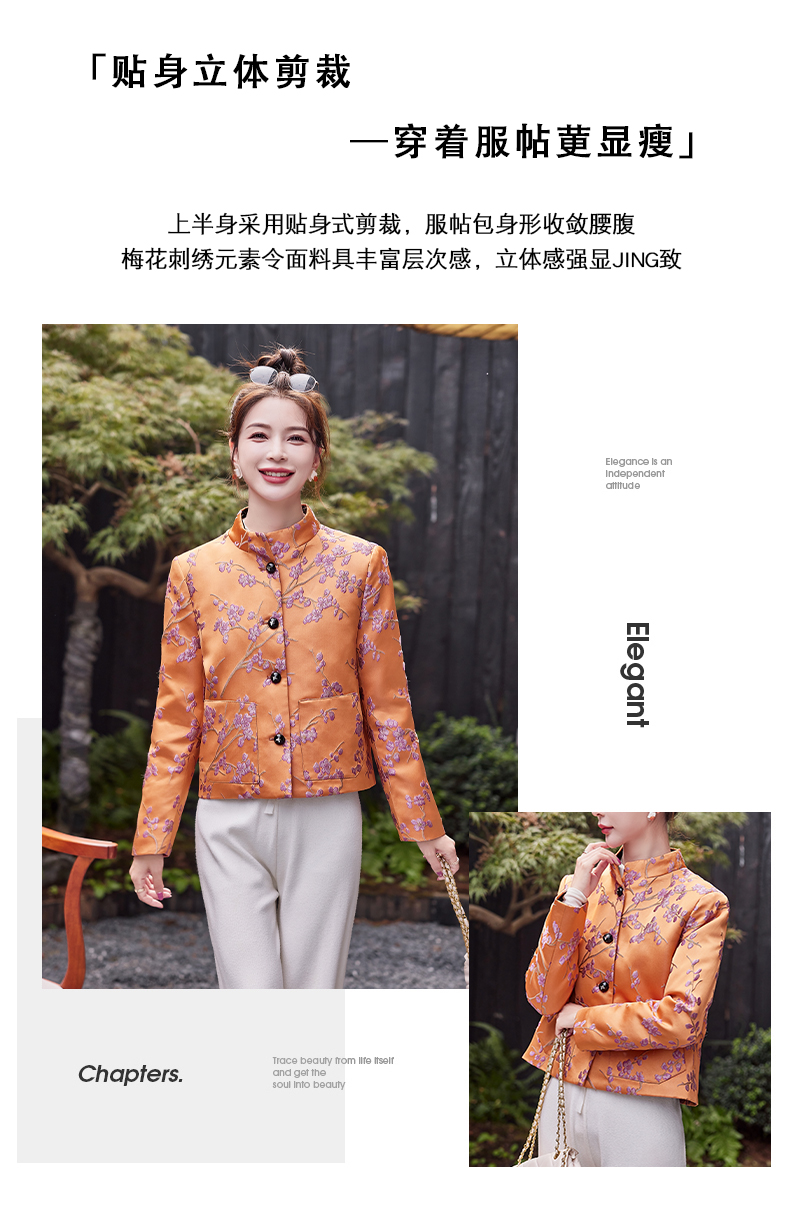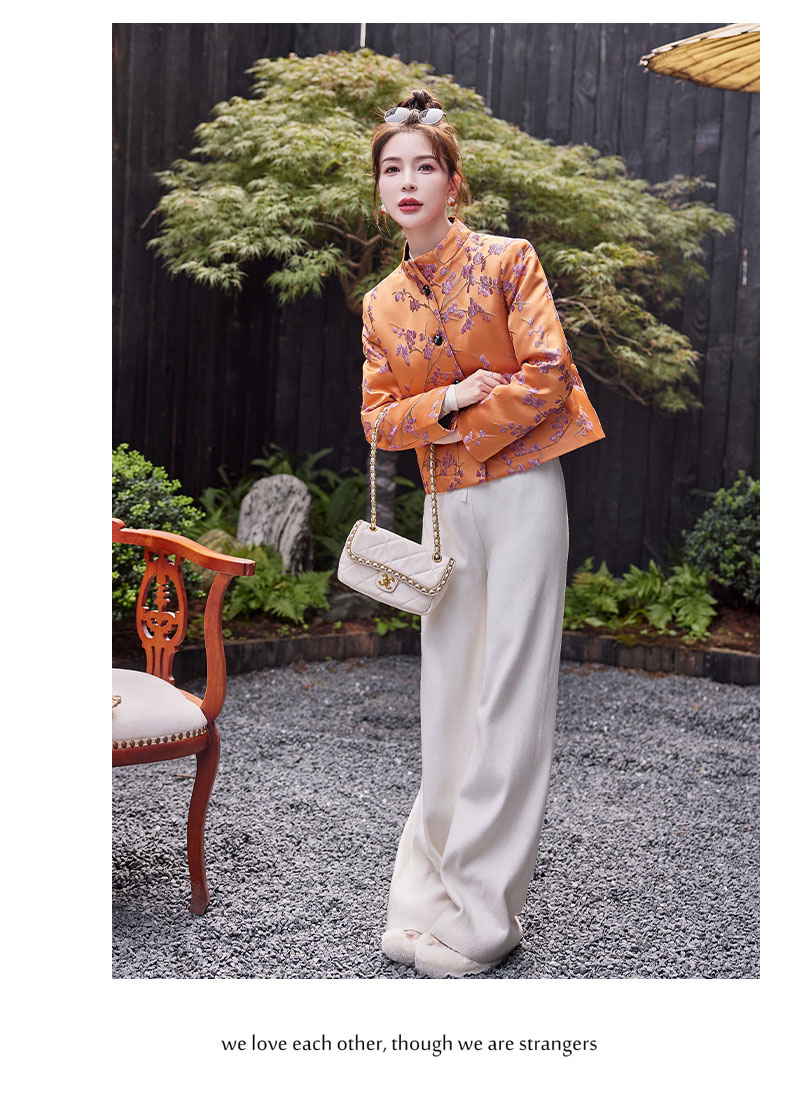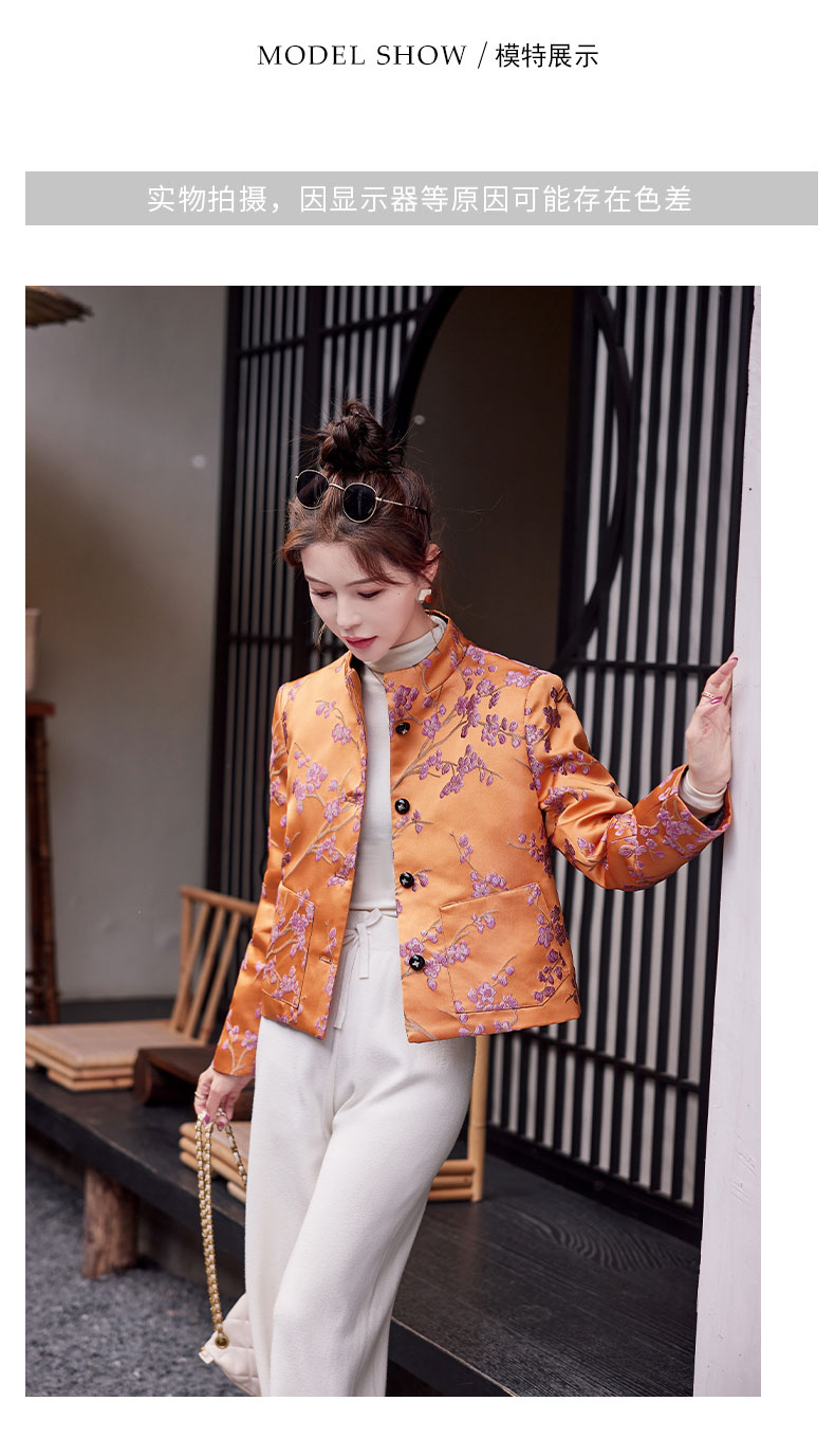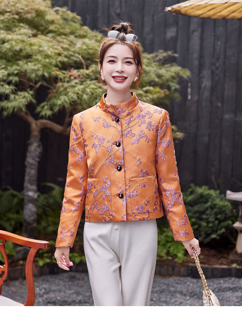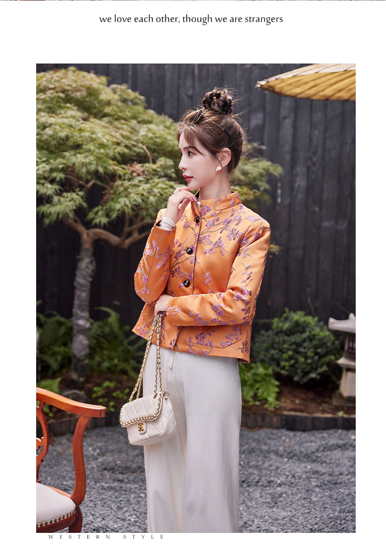 秋冬款新,中式提花料缎面小立领羽绒外套HR-SYY2378