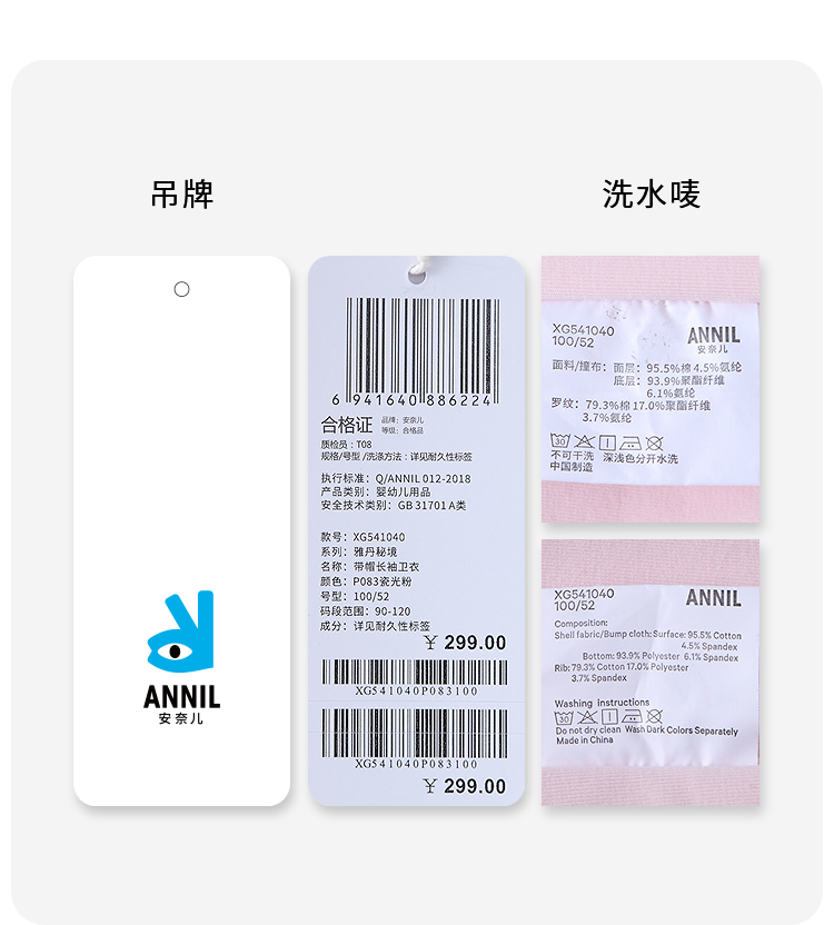 【实体店同款】女童带帽长袖卫衣冬季新款安奈儿童装XG541040