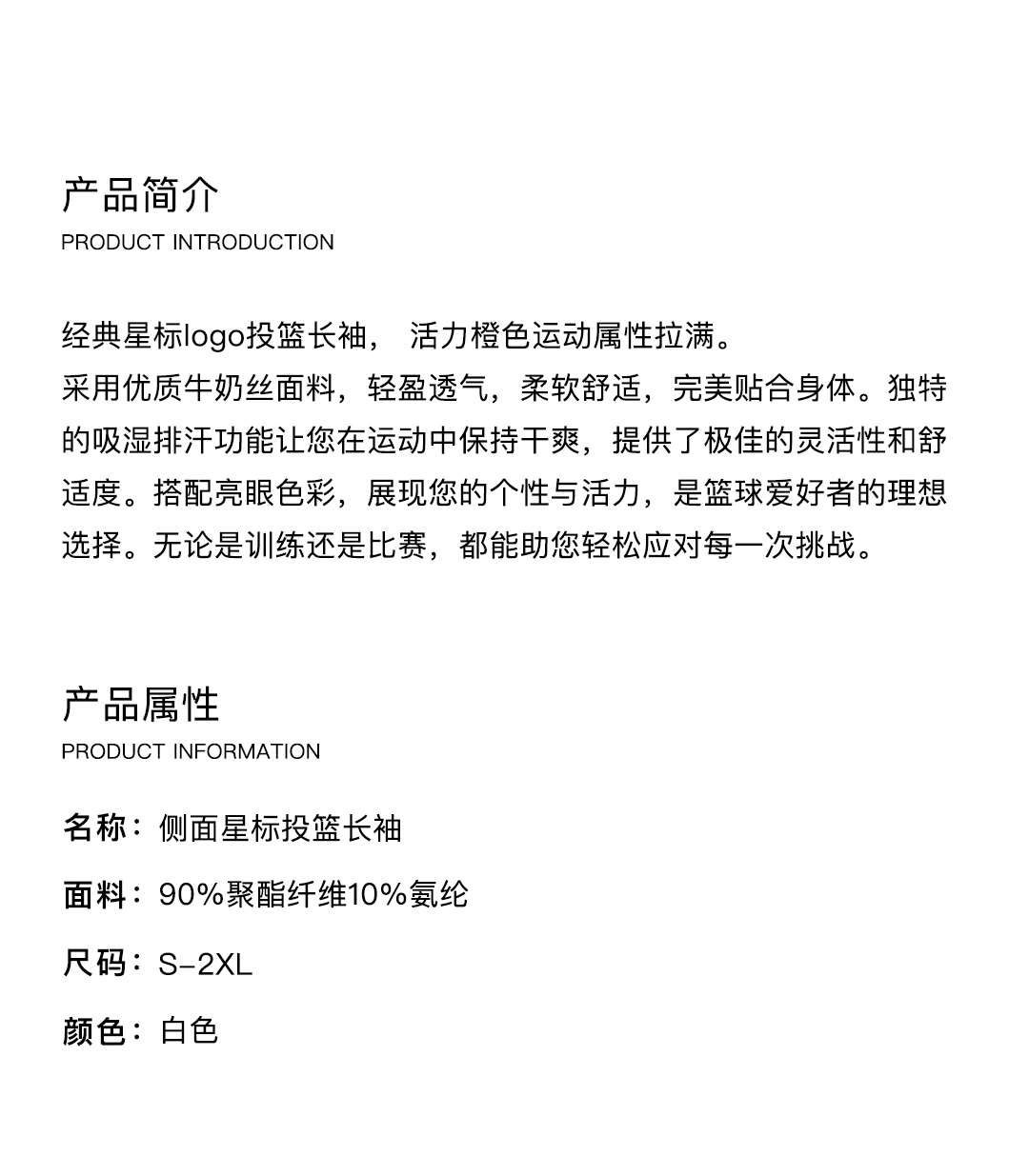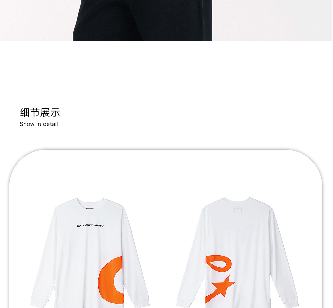 COURTMAN野球帝 侧面星标运动速干透气美式投篮T恤男士长袖上衣