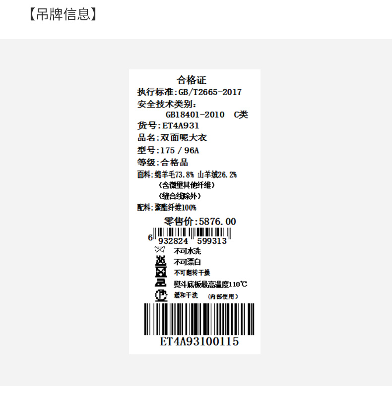 【羊绒】乔万尼羊毛羊绒大衣秋冬新款白色双面尼外套ET4A931