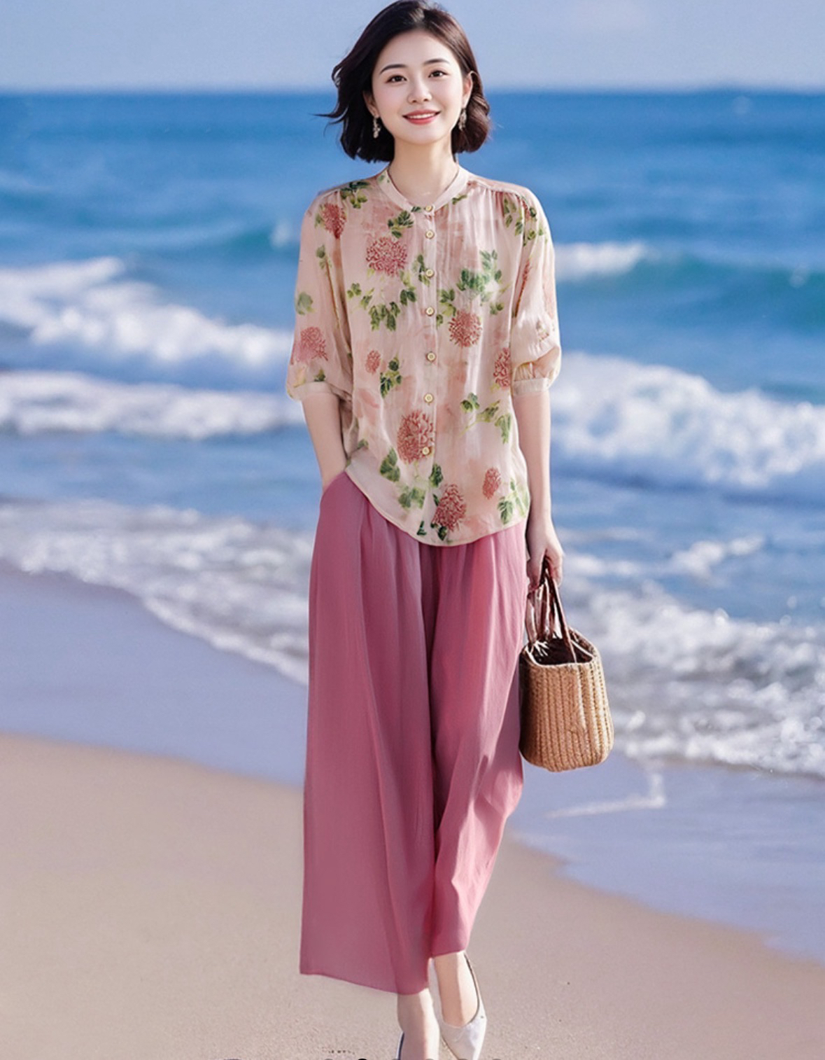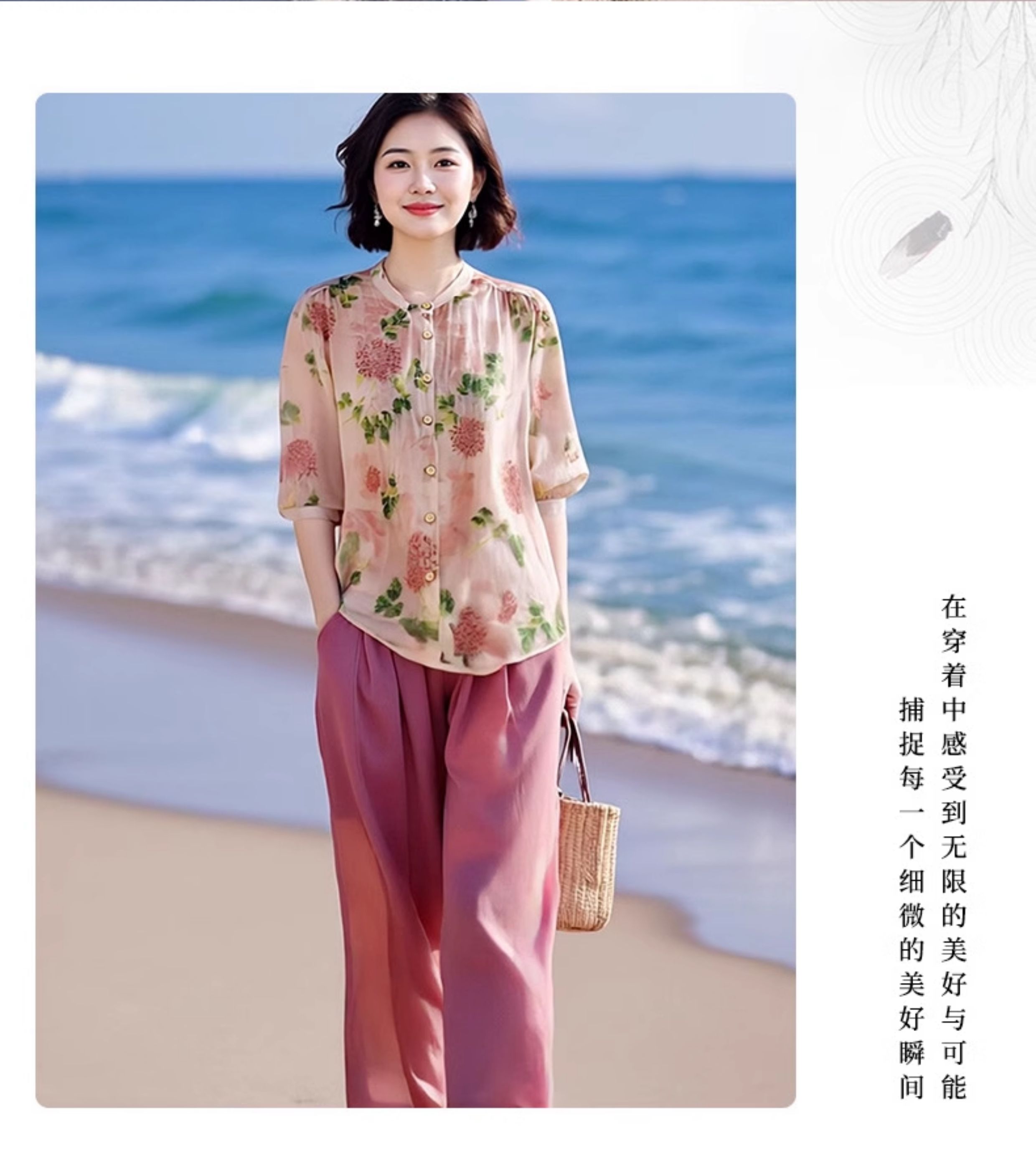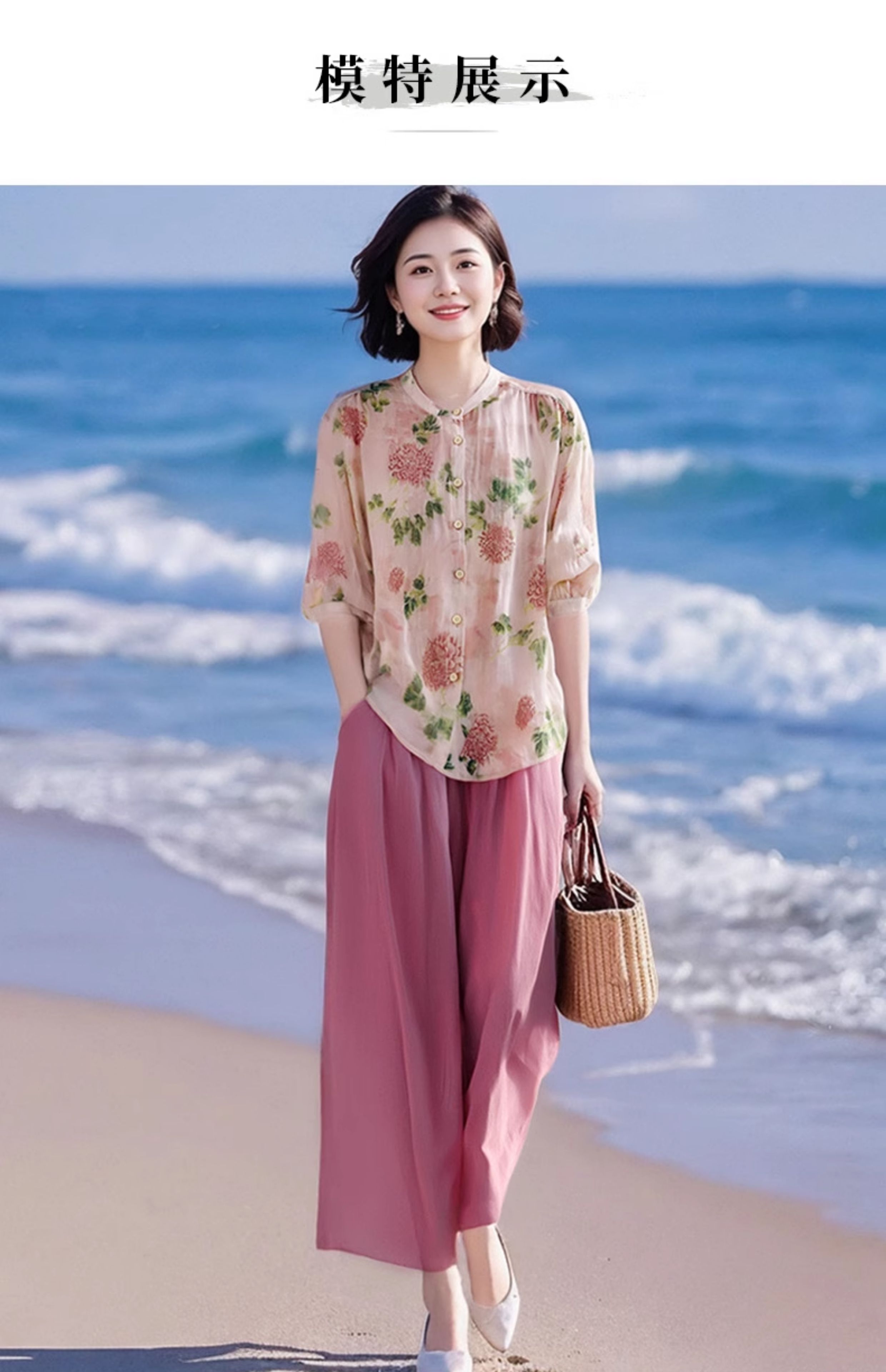 棉麻时尚气质百搭上衣,休闲阔腿裤两件套LJX-428