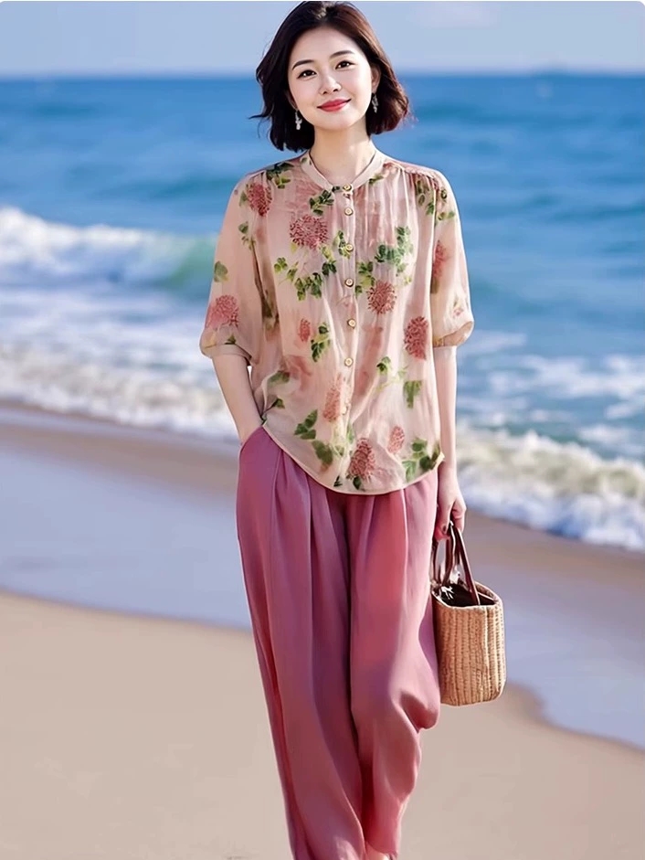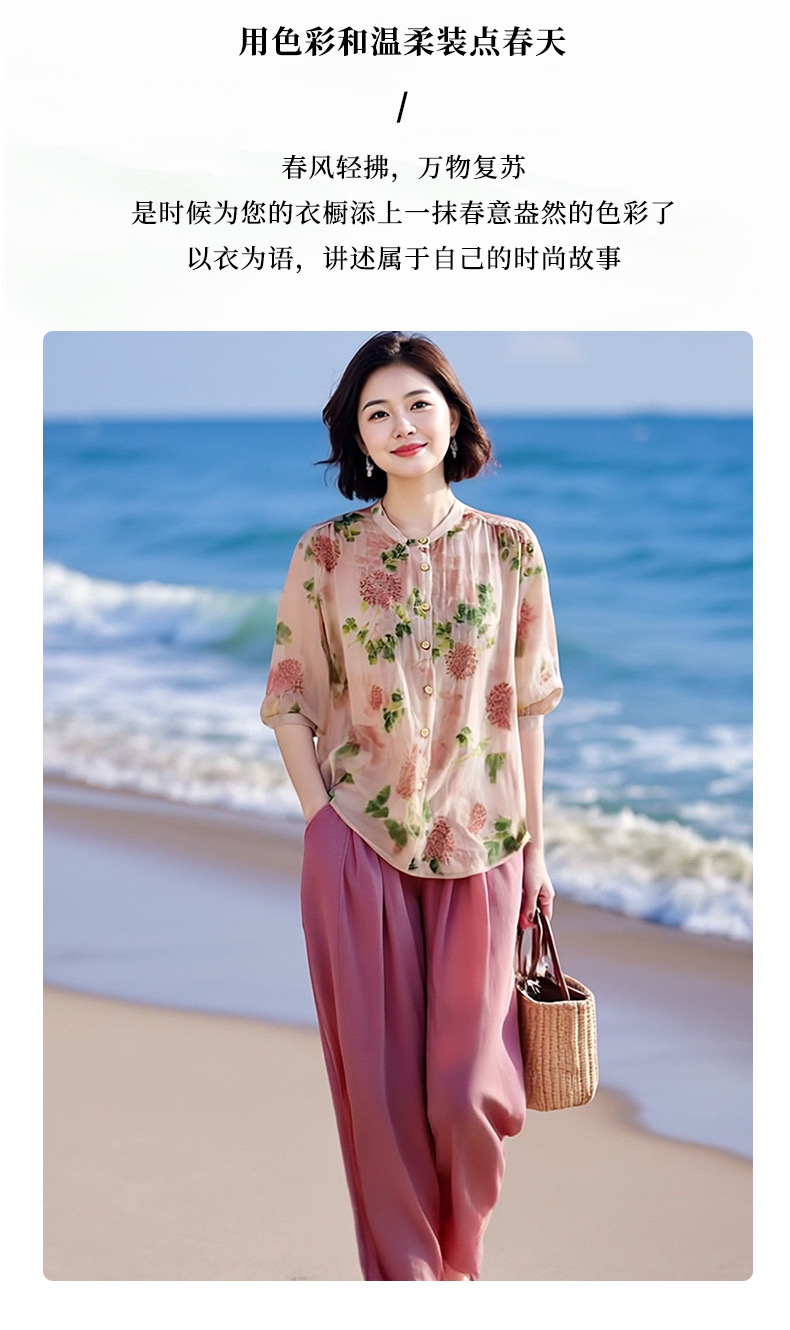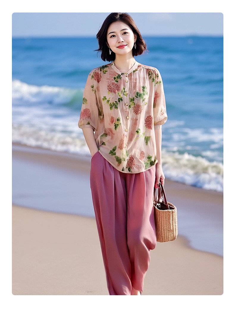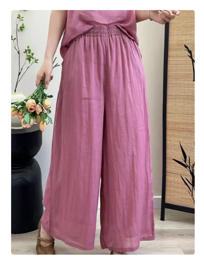 棉麻时尚气质百搭上衣,休闲阔腿裤两件套LJX-428