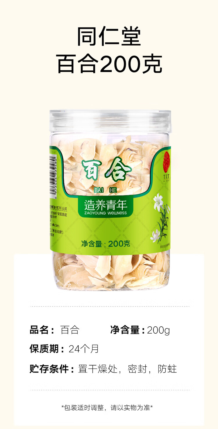 【正宗同仁堂品牌】北京同仁堂 百合200g 百合干 龙牙百合 瓣大肉厚 膳食滋补养生 百合银耳莲子羹原料SY