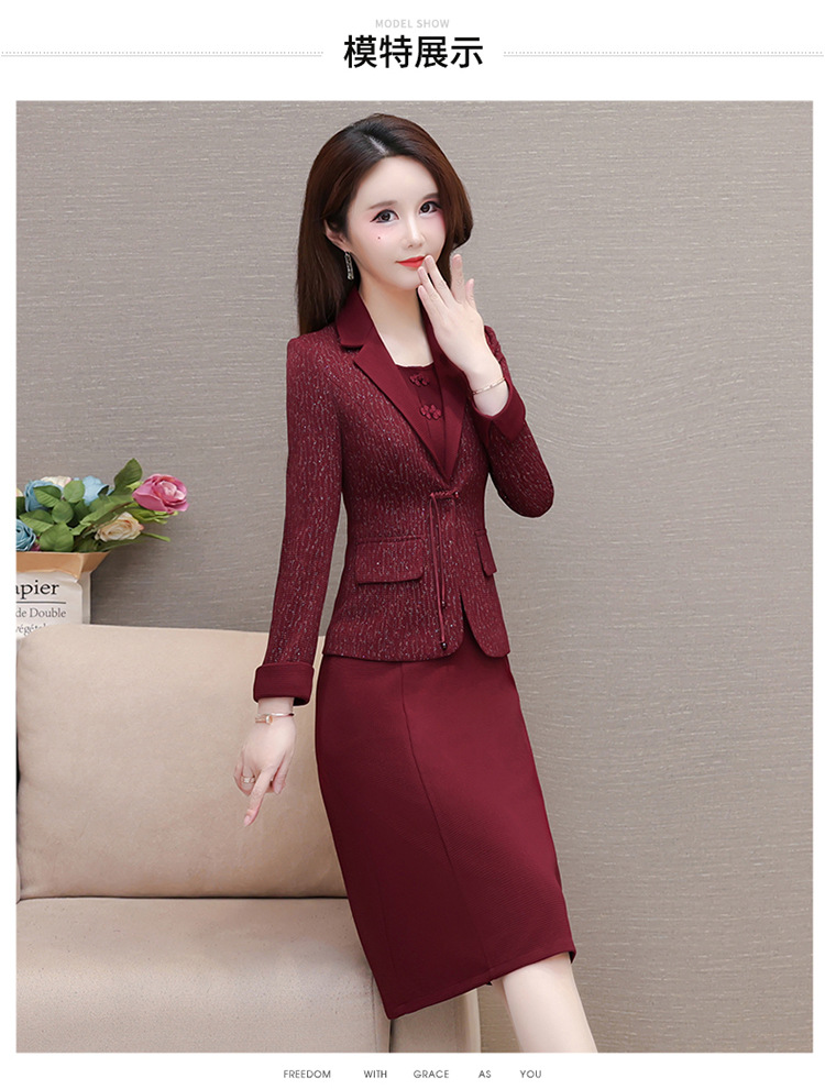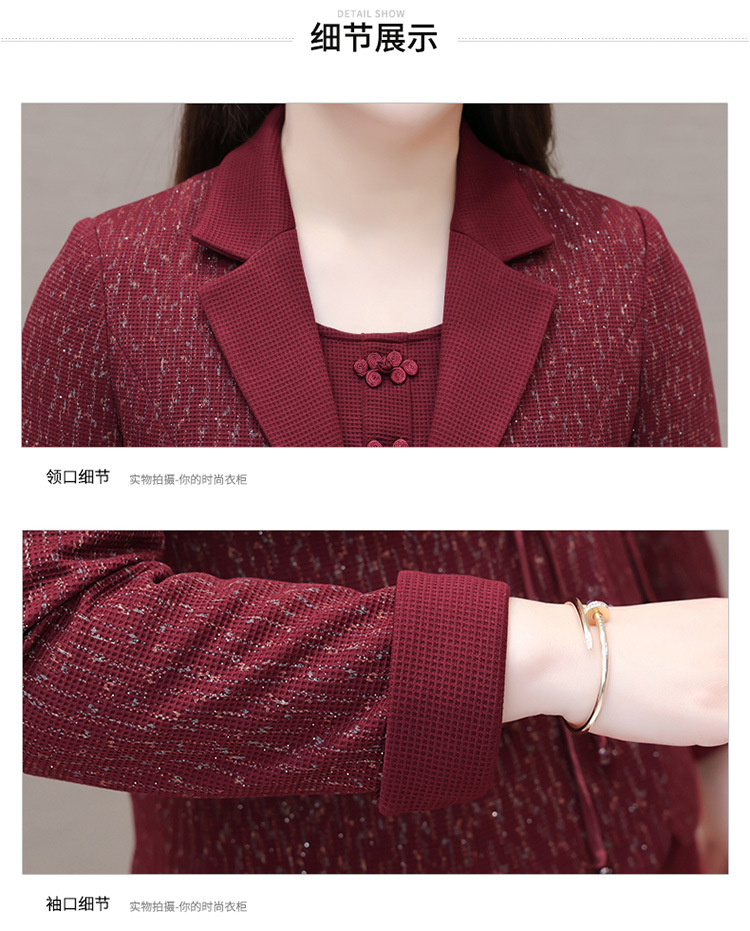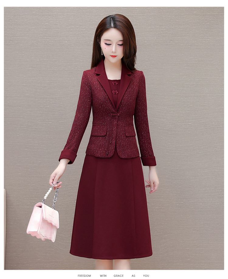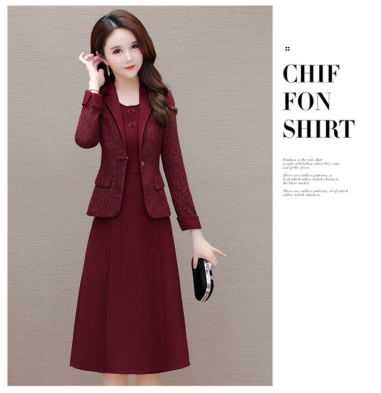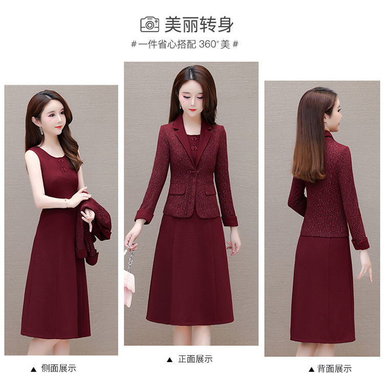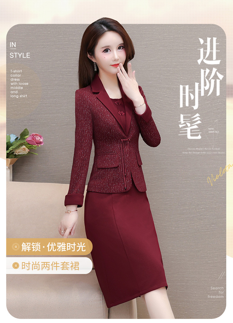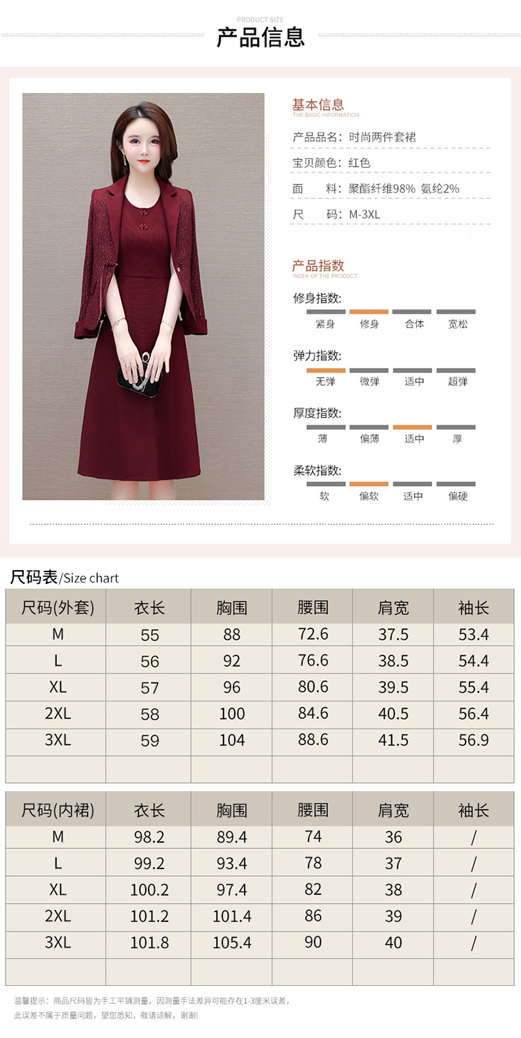 春款简约,中长款洋气内搭连衣裙短款通勤小香风外套两件套QYM-XYKL-4828-L