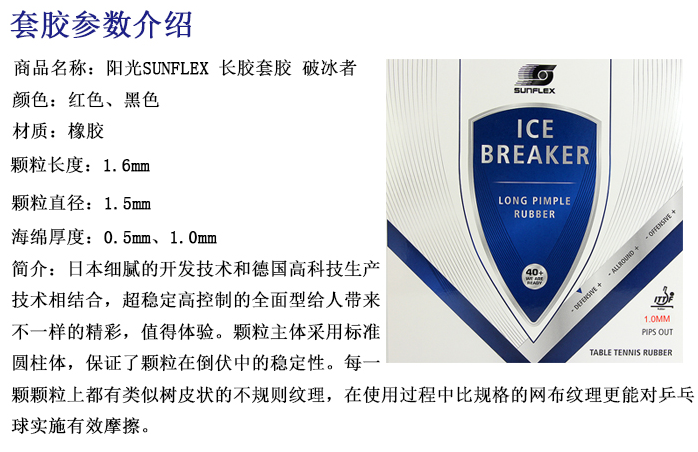 SUNFLEX阳光破冰者长胶套胶乒乓球长胶颗粒胶乒乓球套胶