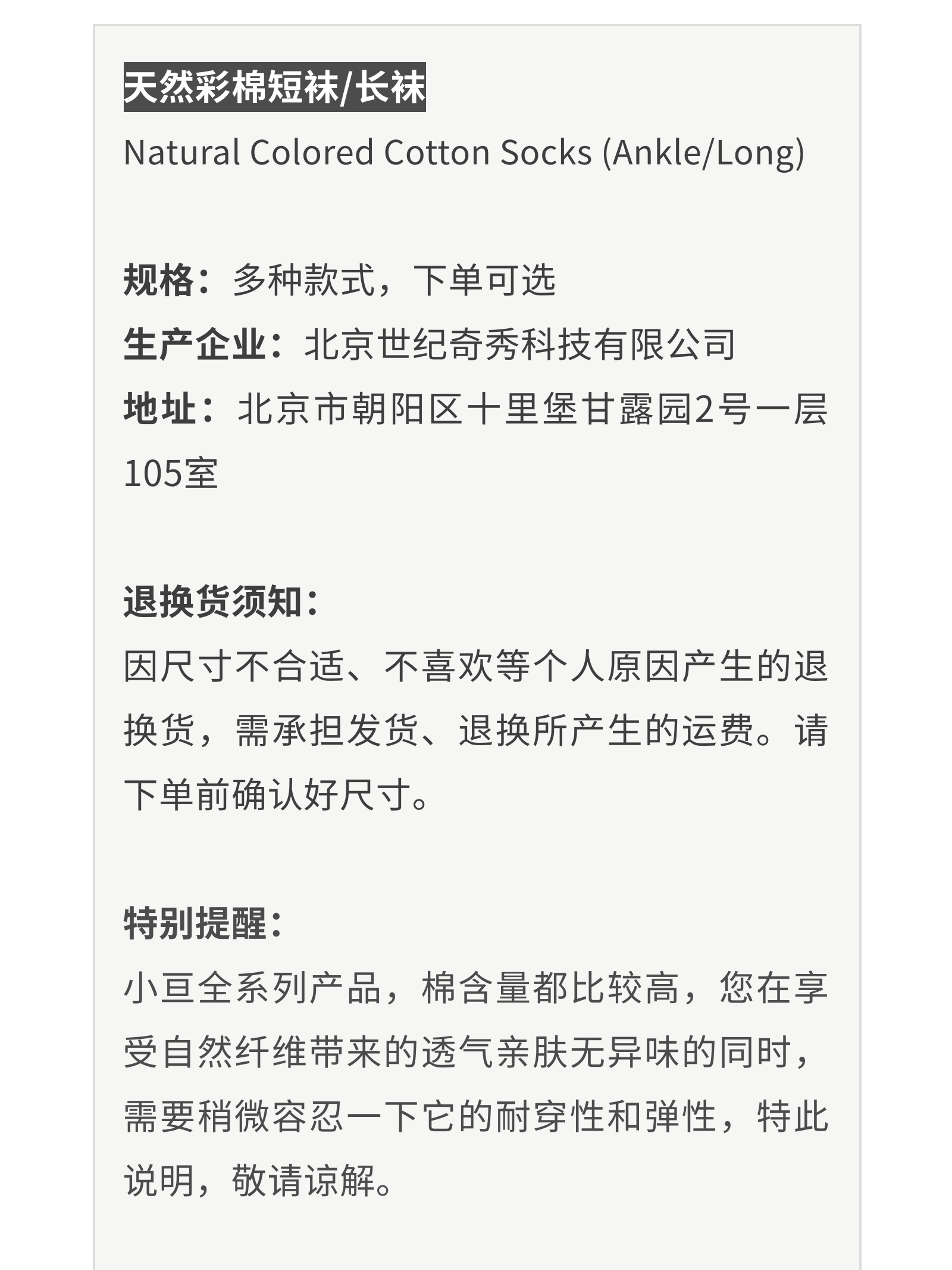 天然彩棉短袜/长袜(中通快递)|公平贸易*Natural Colored Cotton Socks (Ankle/Long)| Fair Trade Items