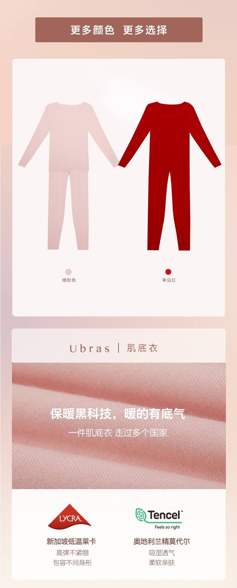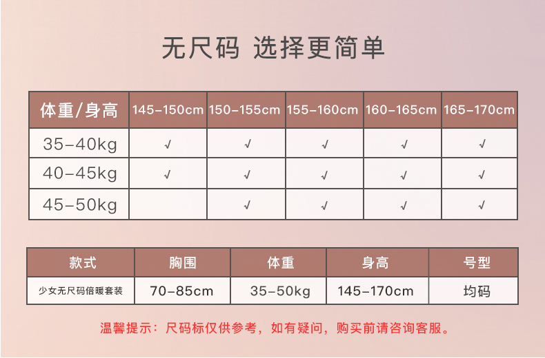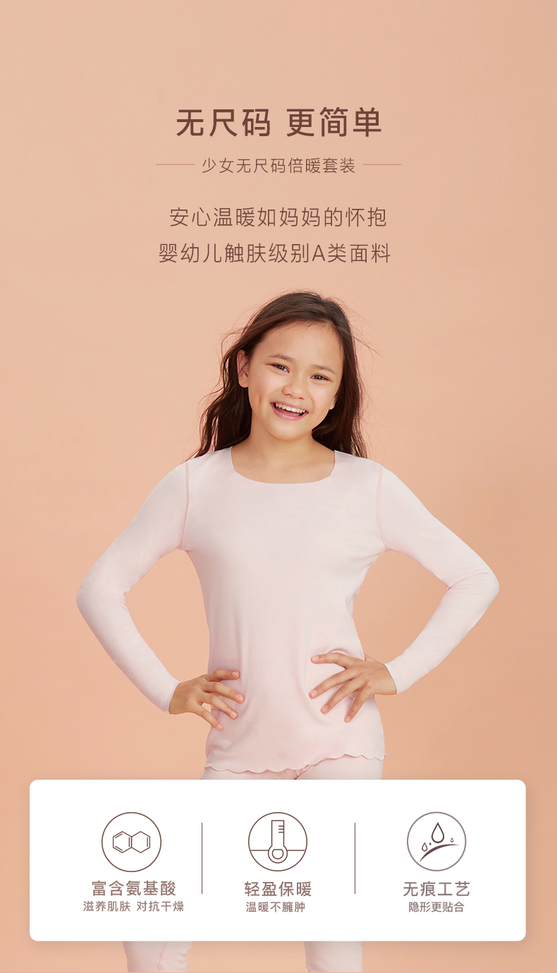 Ubras少女无尺码倍暖套装加厚发热保暖内衣秋衣秋裤学生celwarm