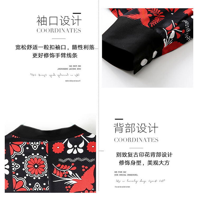 上海旗袍厂ASE-3308时髦新型单排扣复古印花真丝小衫