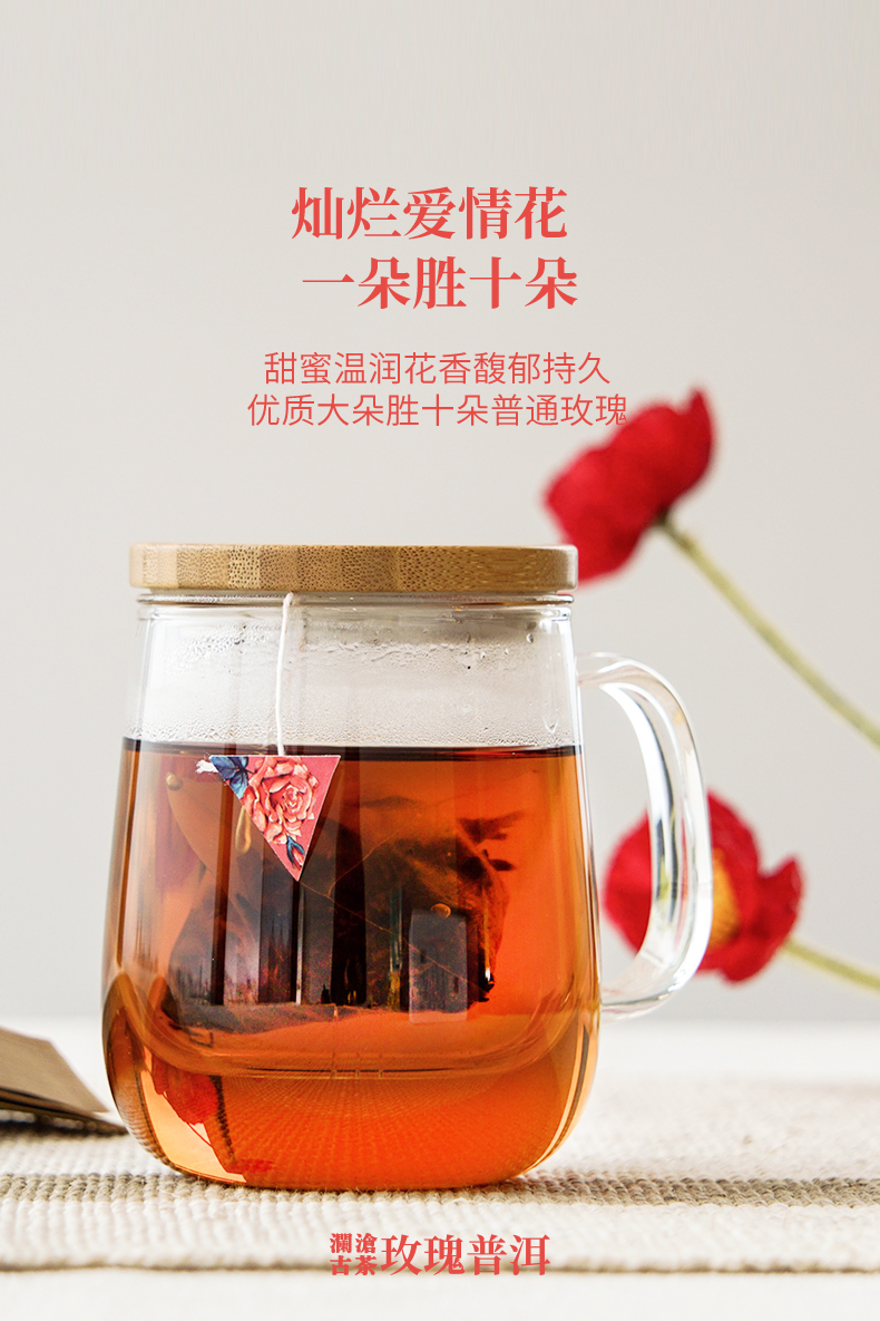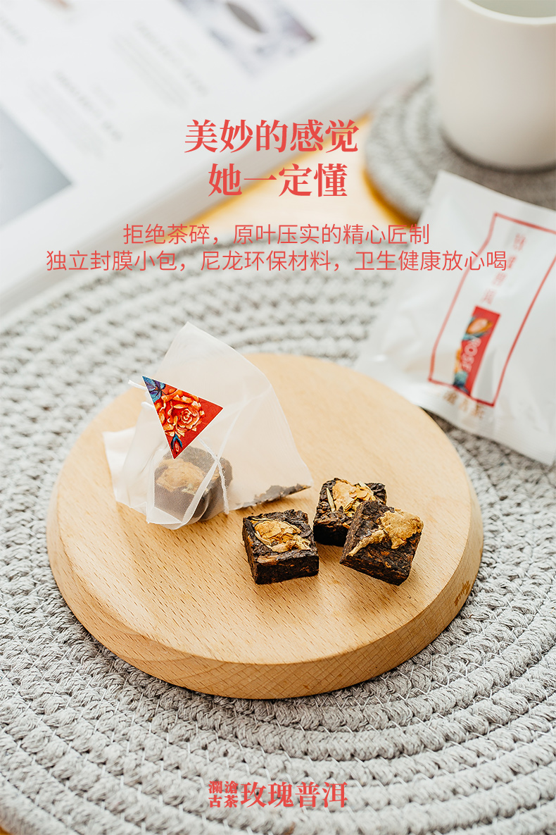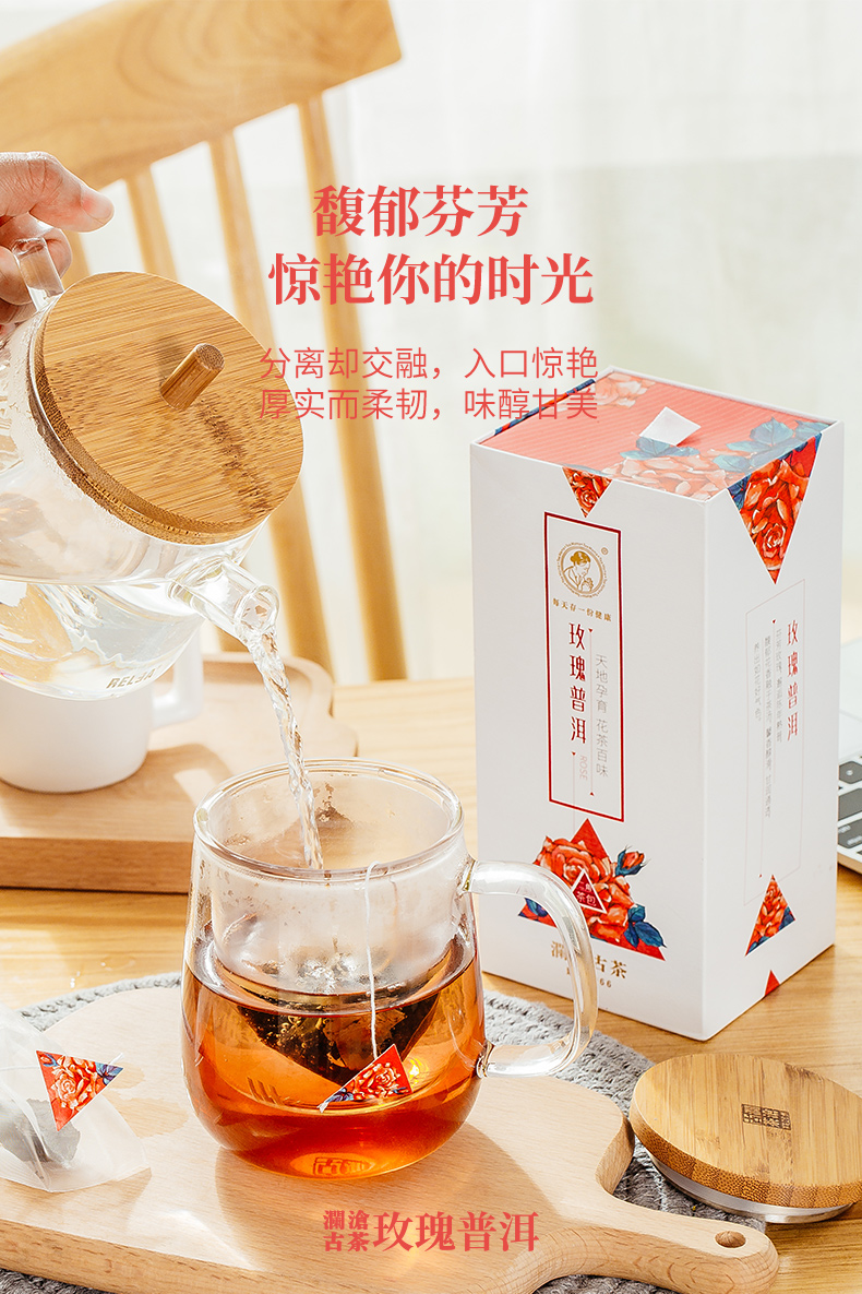 澜沧古茶 玫瑰普洱袋泡茶4*20袋/盒,精选陈年普洱熟茶+大朵玫瑰