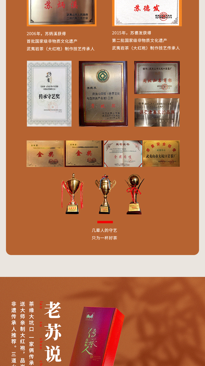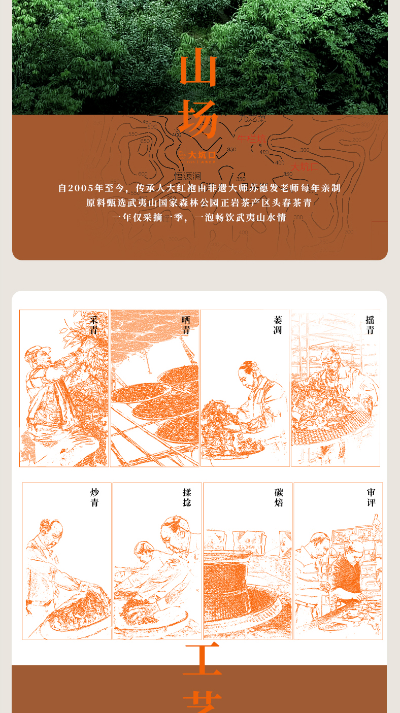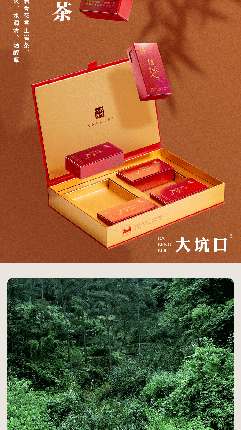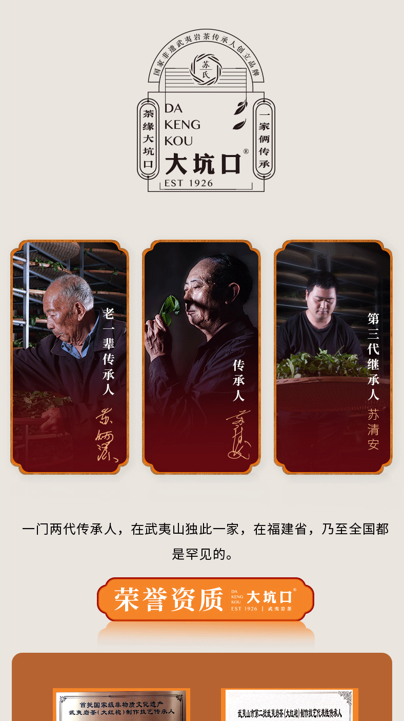 大坑口岩茶有限公司,位于武夷山市-天心村,茶山分布于正岩产区的“三坑、两涧”,由首批非物质文化遗产武夷岩茶制作技艺传承人:苏炳溪和第二批传承人:苏德发先生的精心手工制作,造就了大坑口岩茶的独特品质